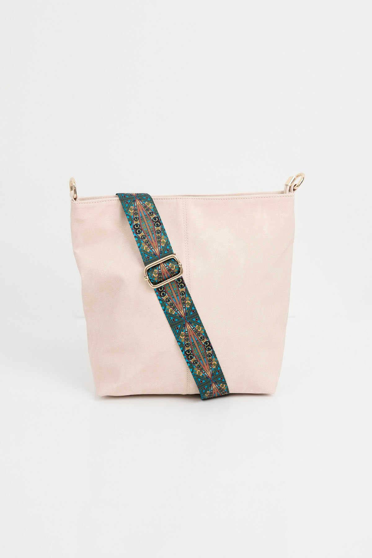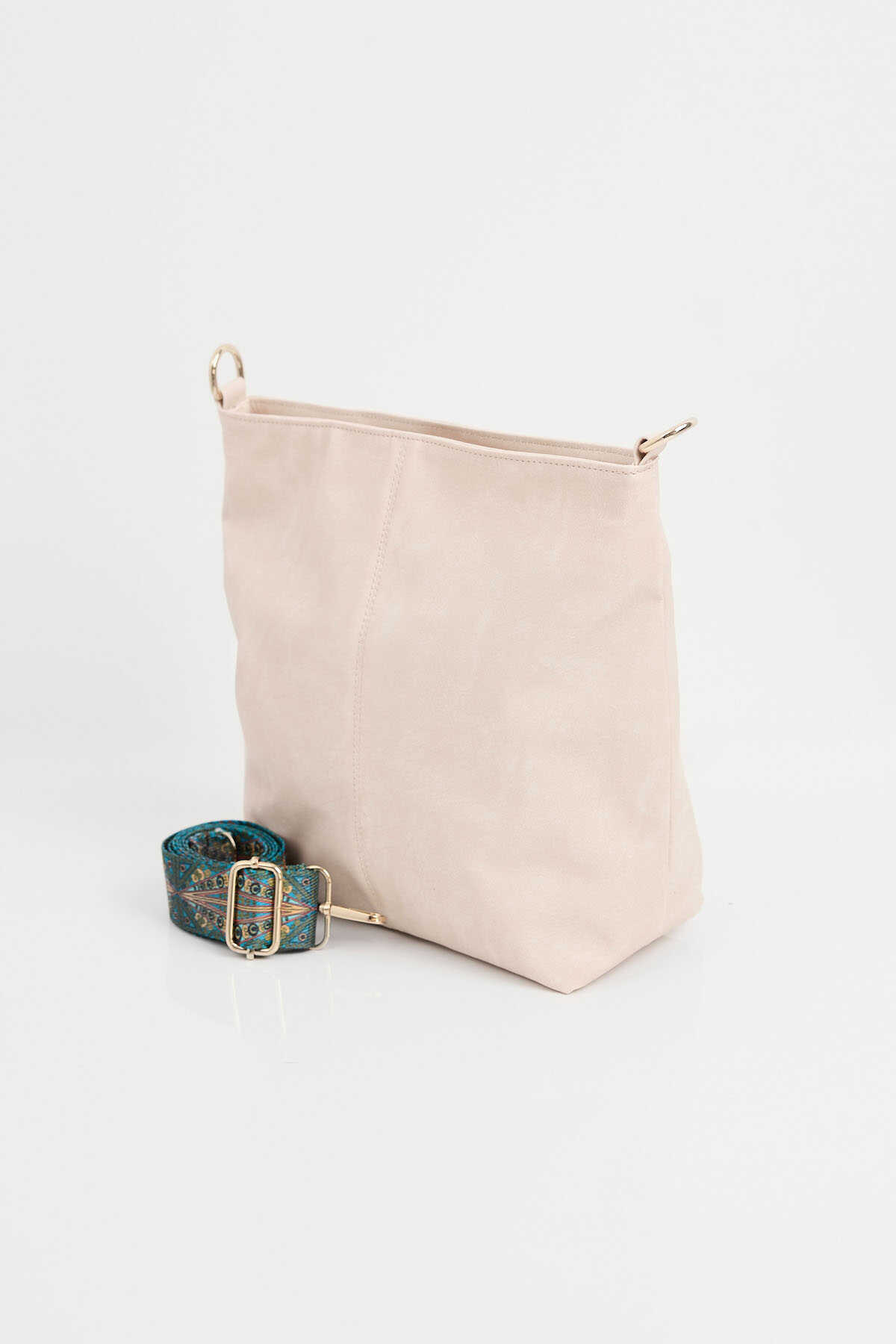 010173 Suni Deri Omuz Çantası - Krem - Kombin