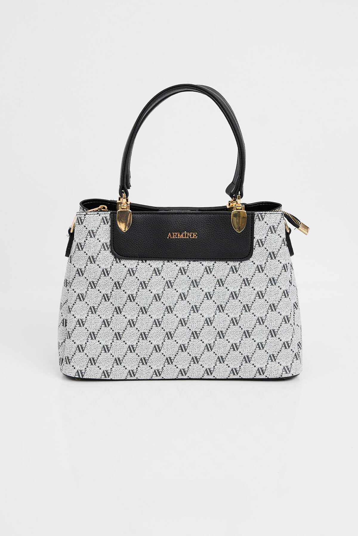 010176 Armine Baskılı Çanta - Gri - Kombin