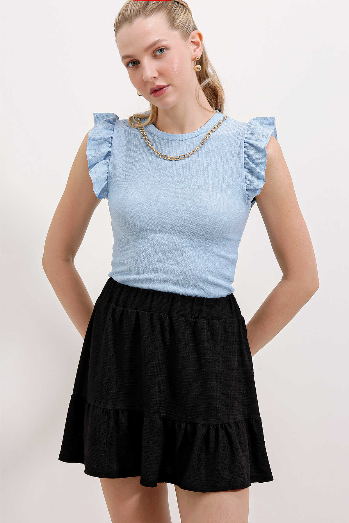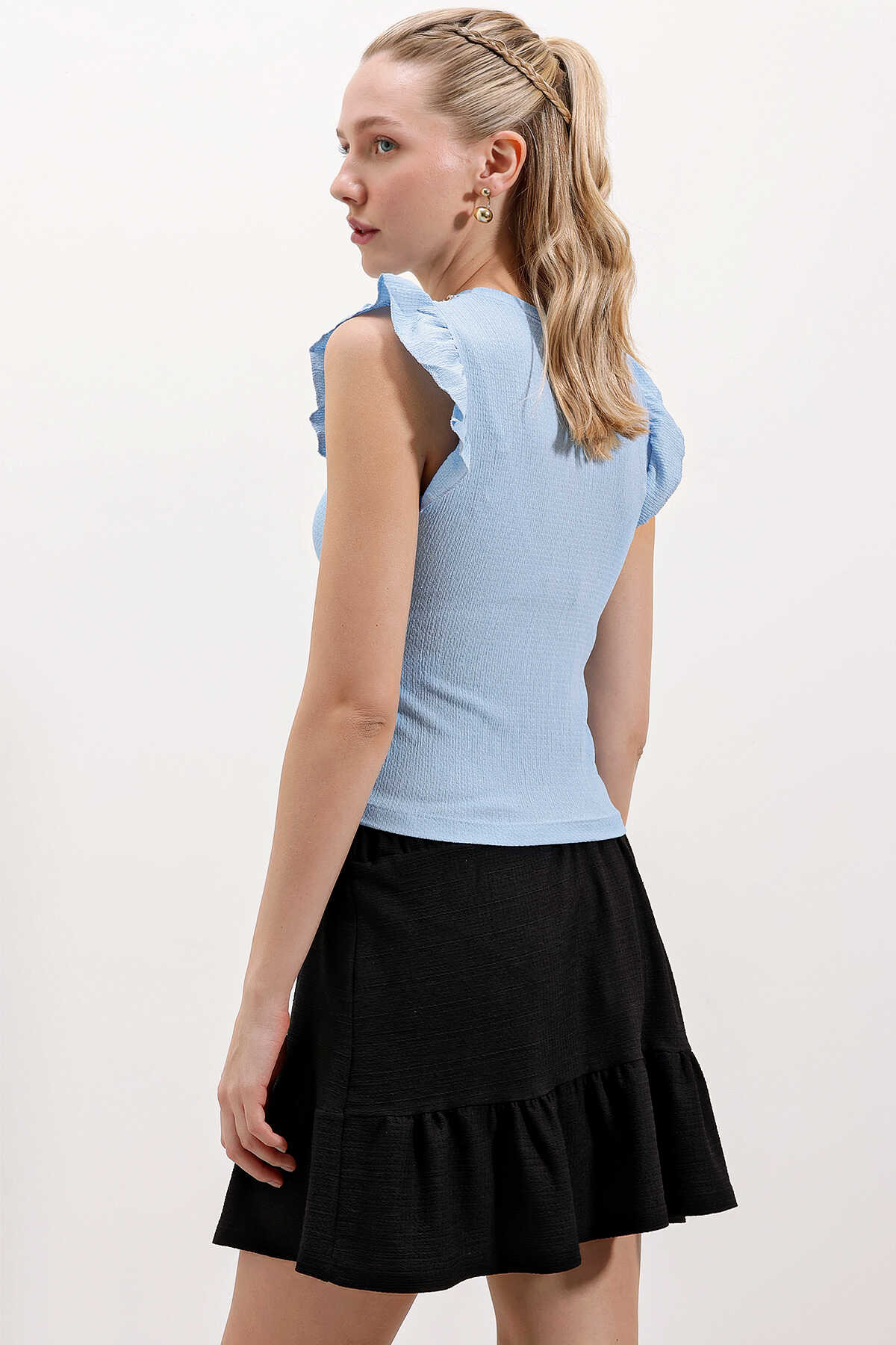 Kolu Firfirli Örme Bluz