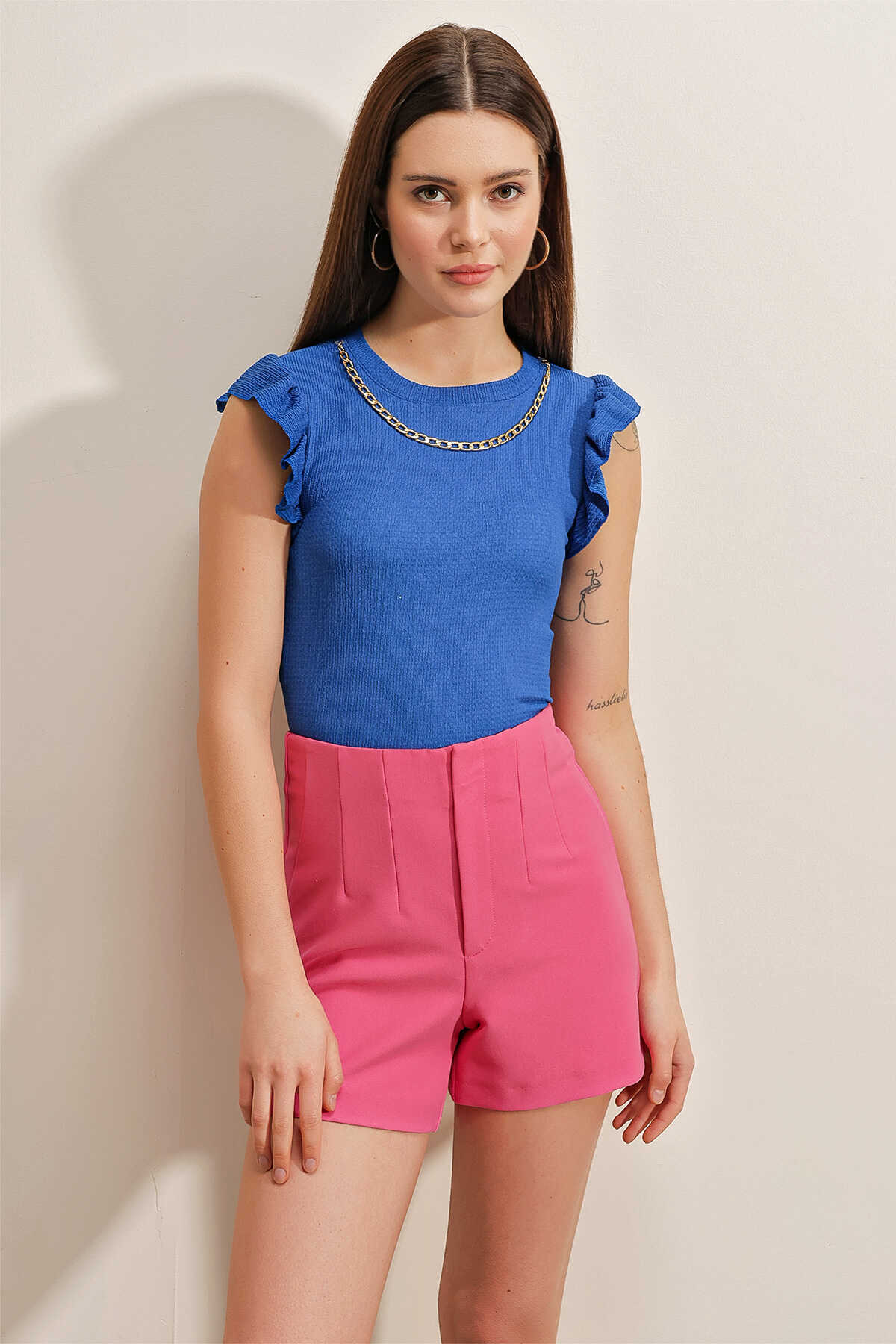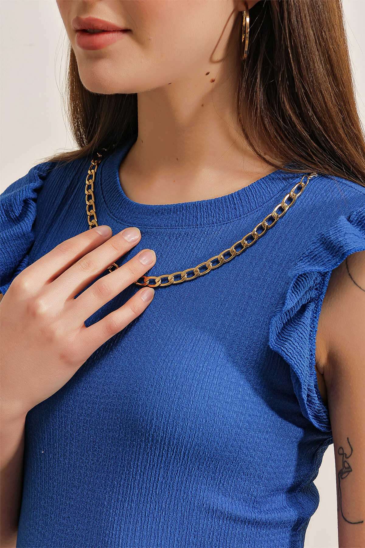 Kolu Firfirli Örme Bluz