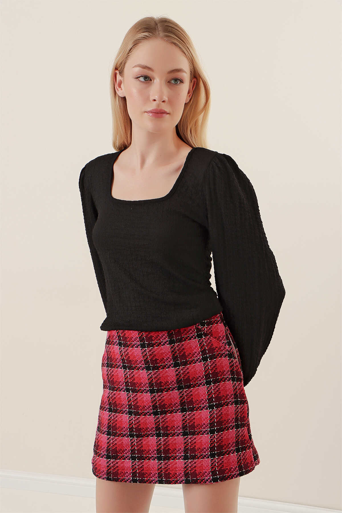 0442 Uzun Kollu Bluz - Siyah - Kombin