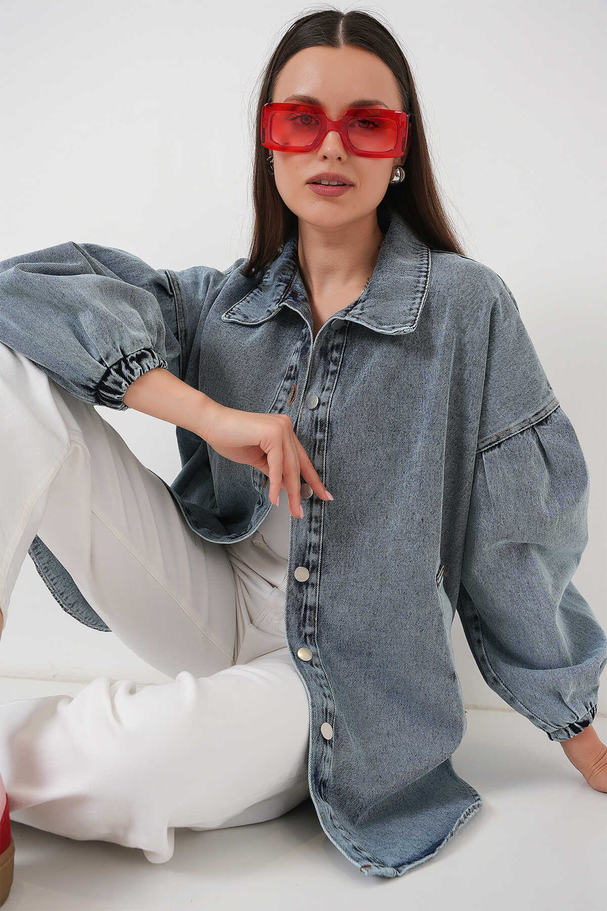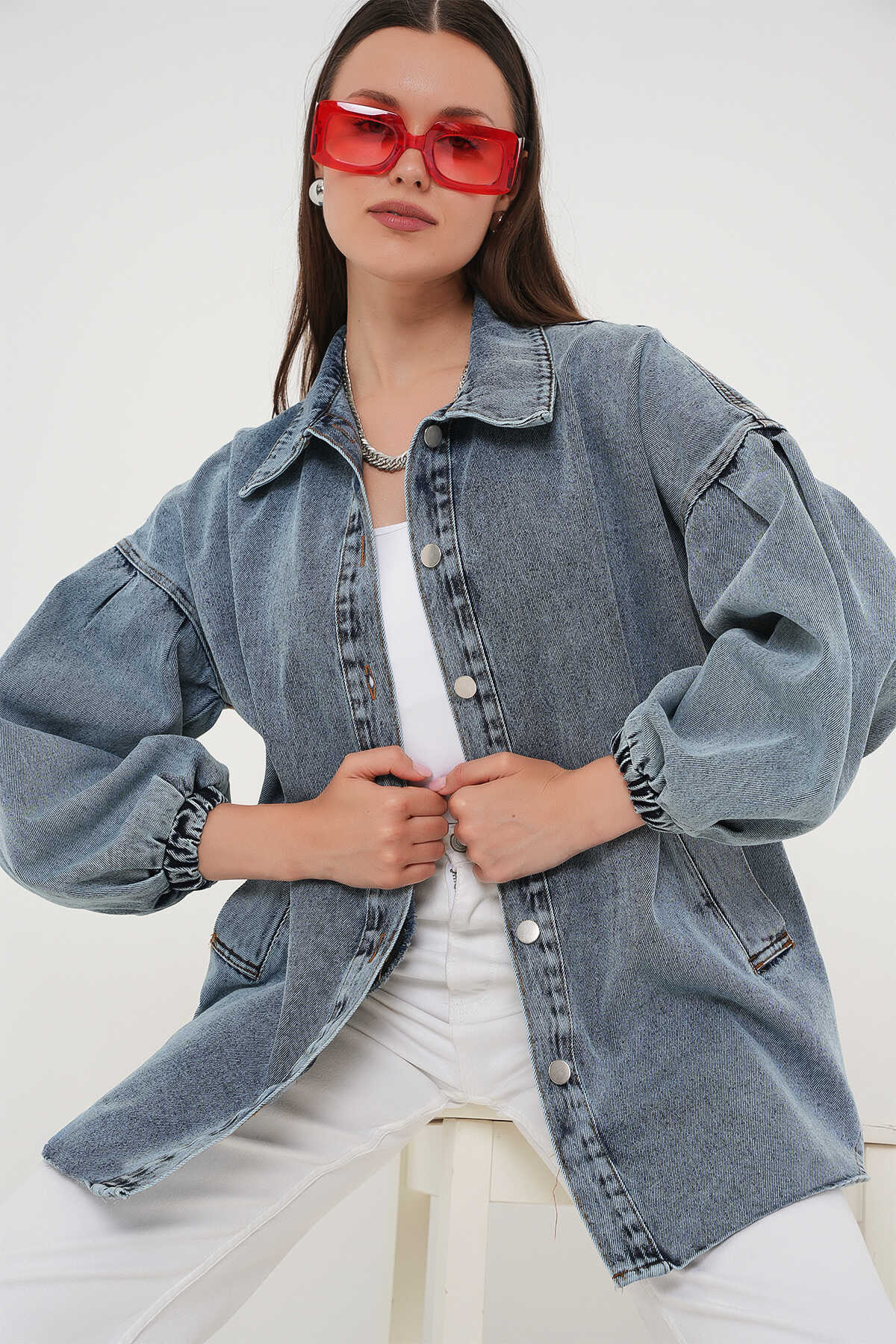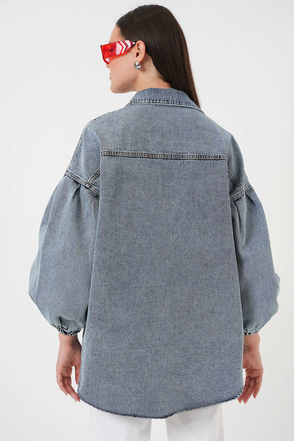 Denim Balon Kollu Ceket, Astarsiz Dügmeli Ceket