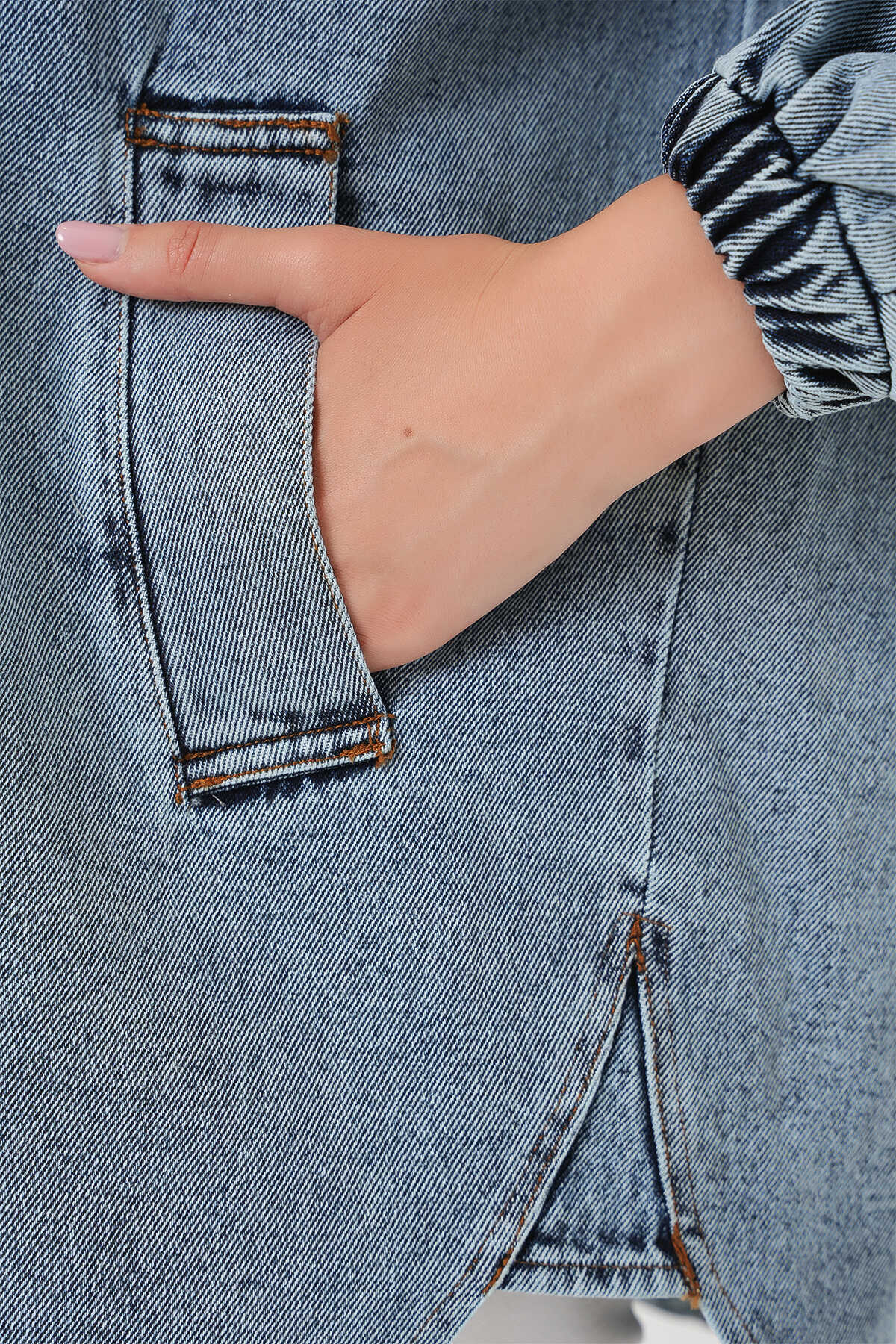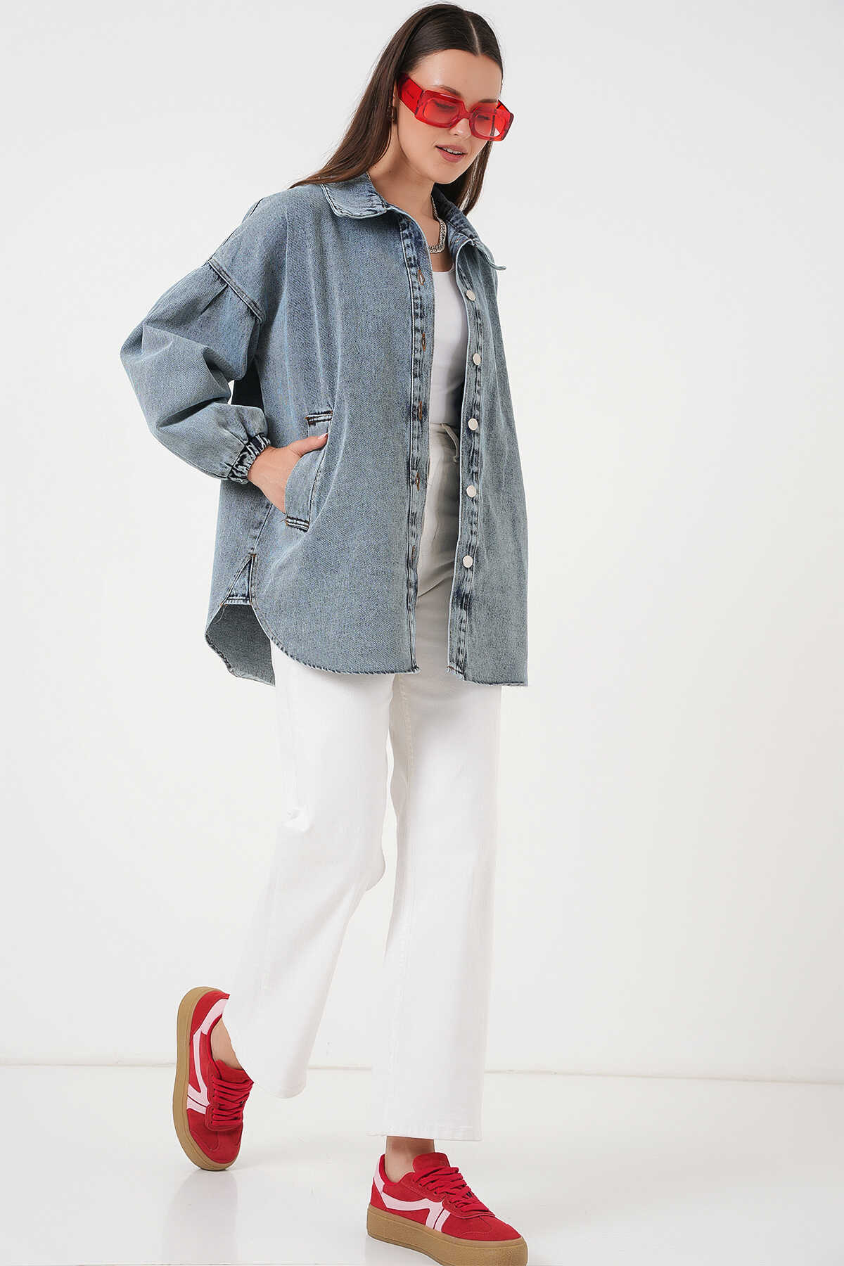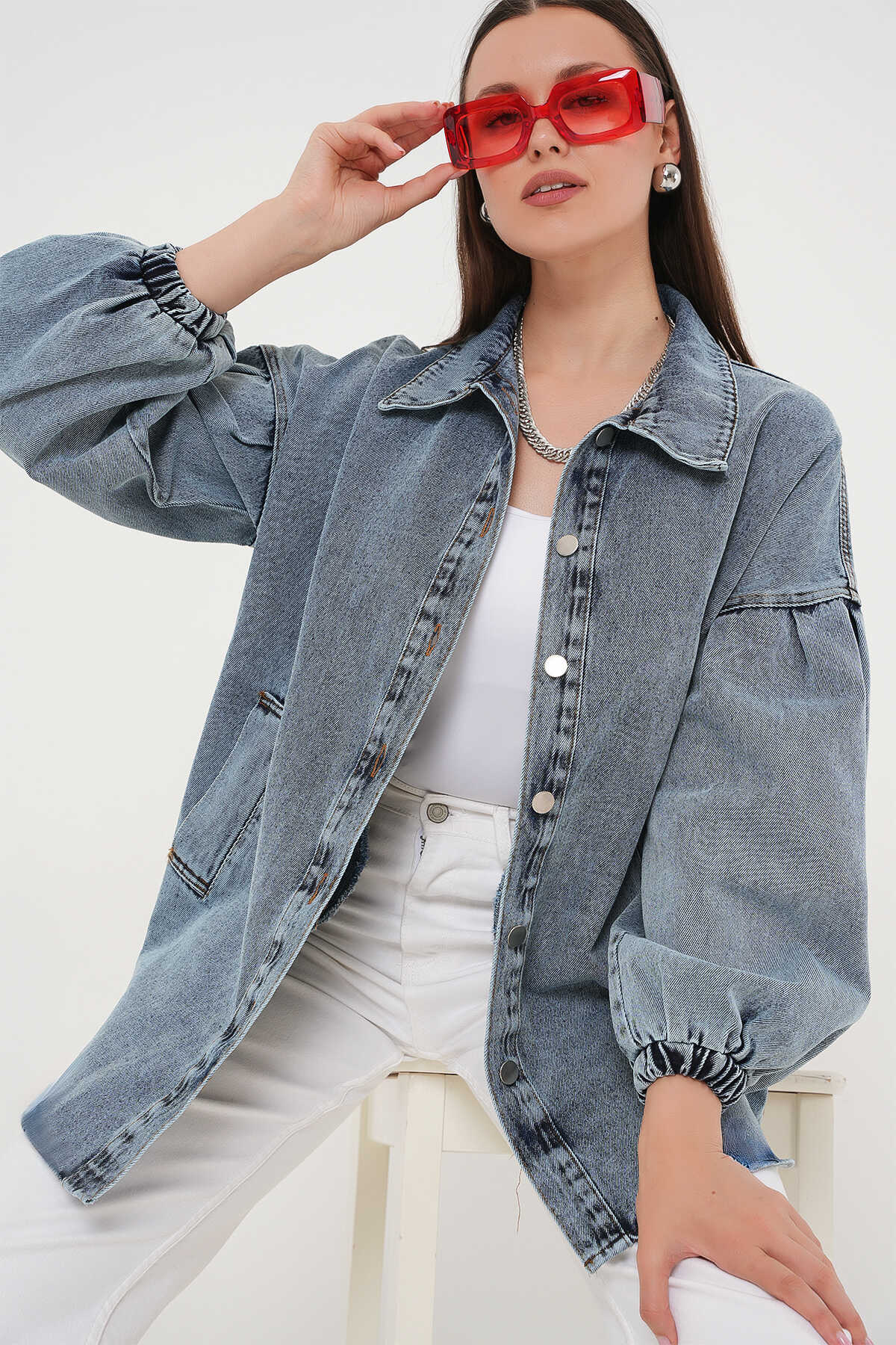Denim Balon Kollu Ceket, Astarsiz Dügmeli Ceket