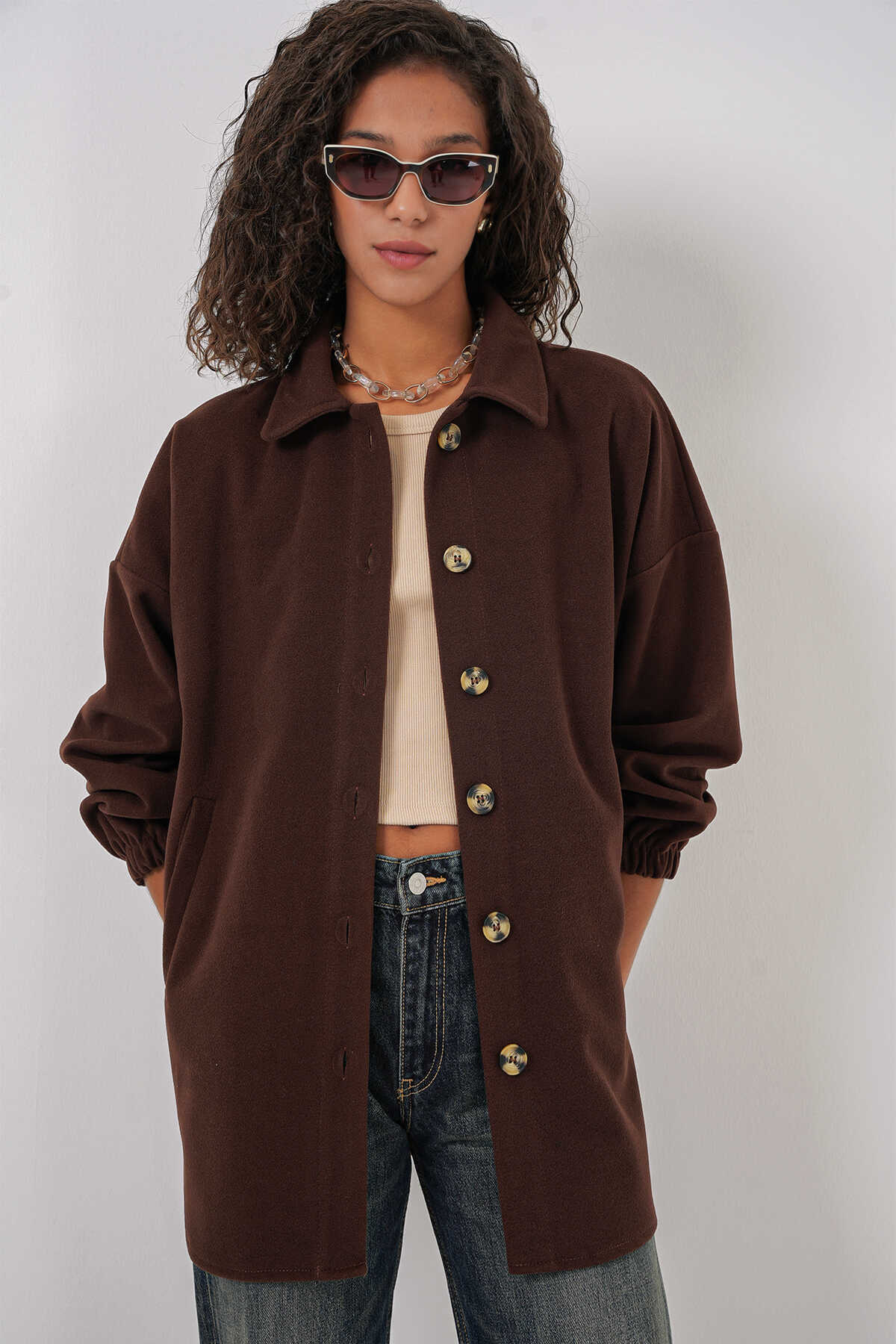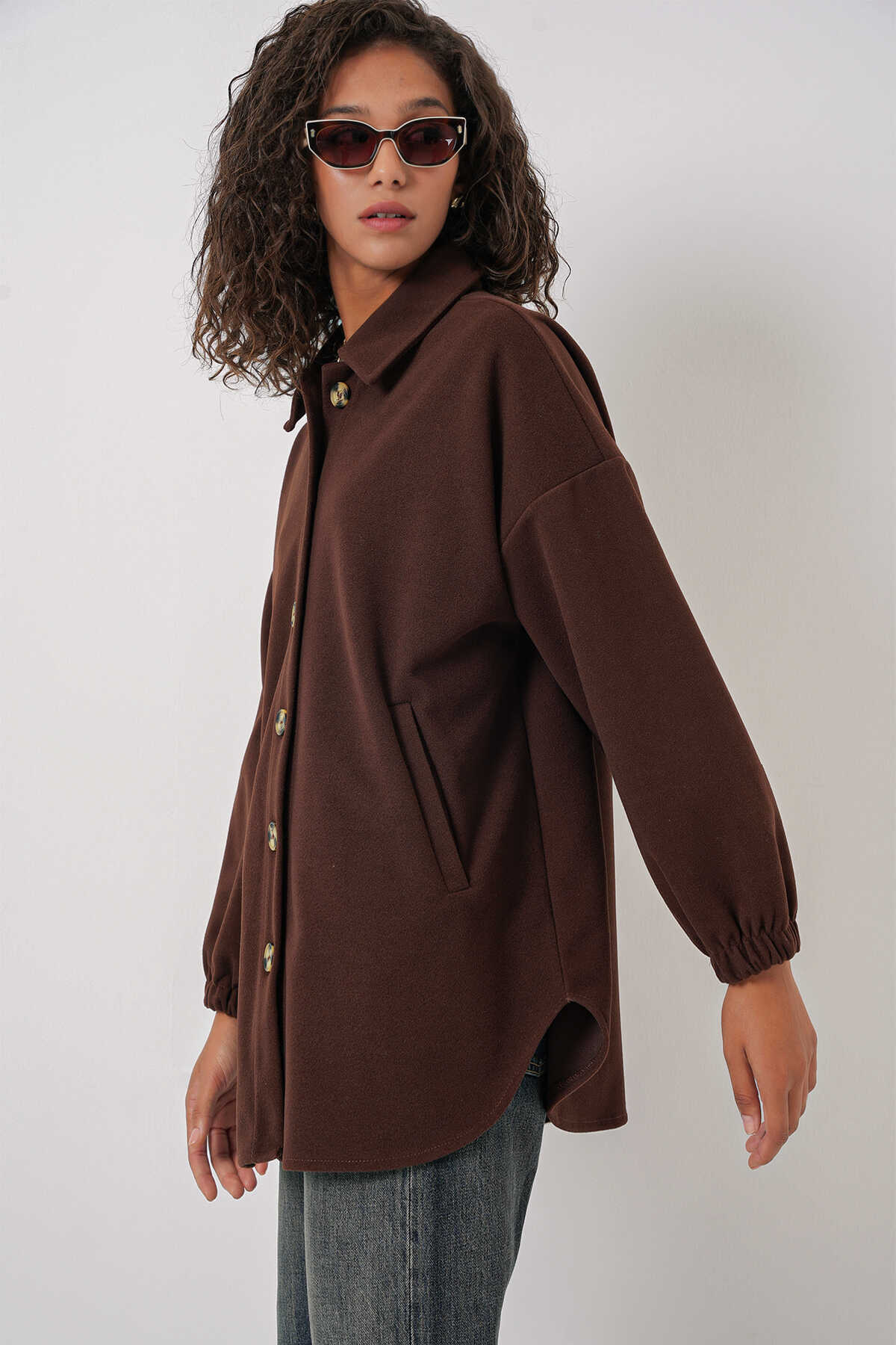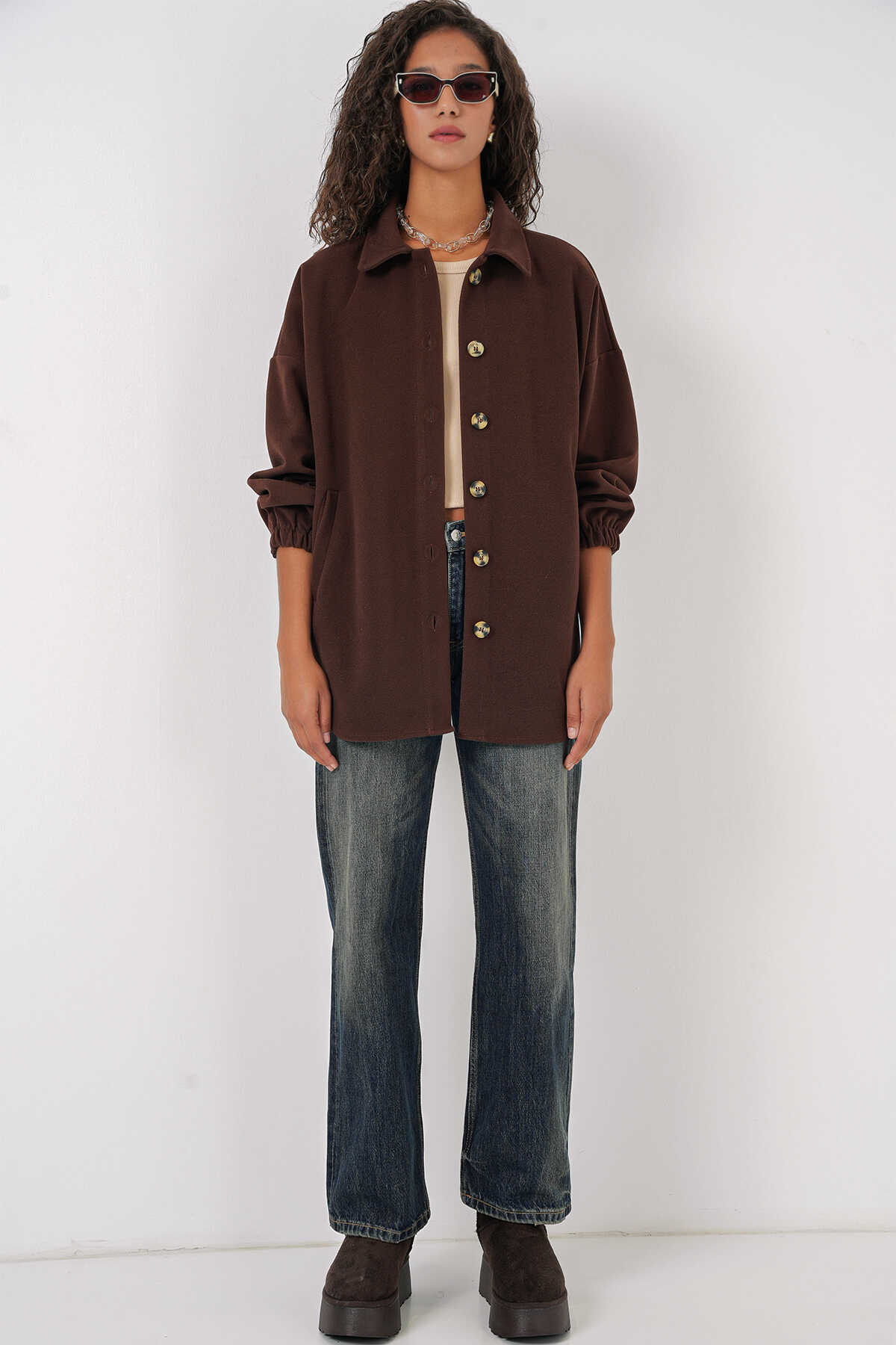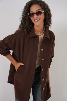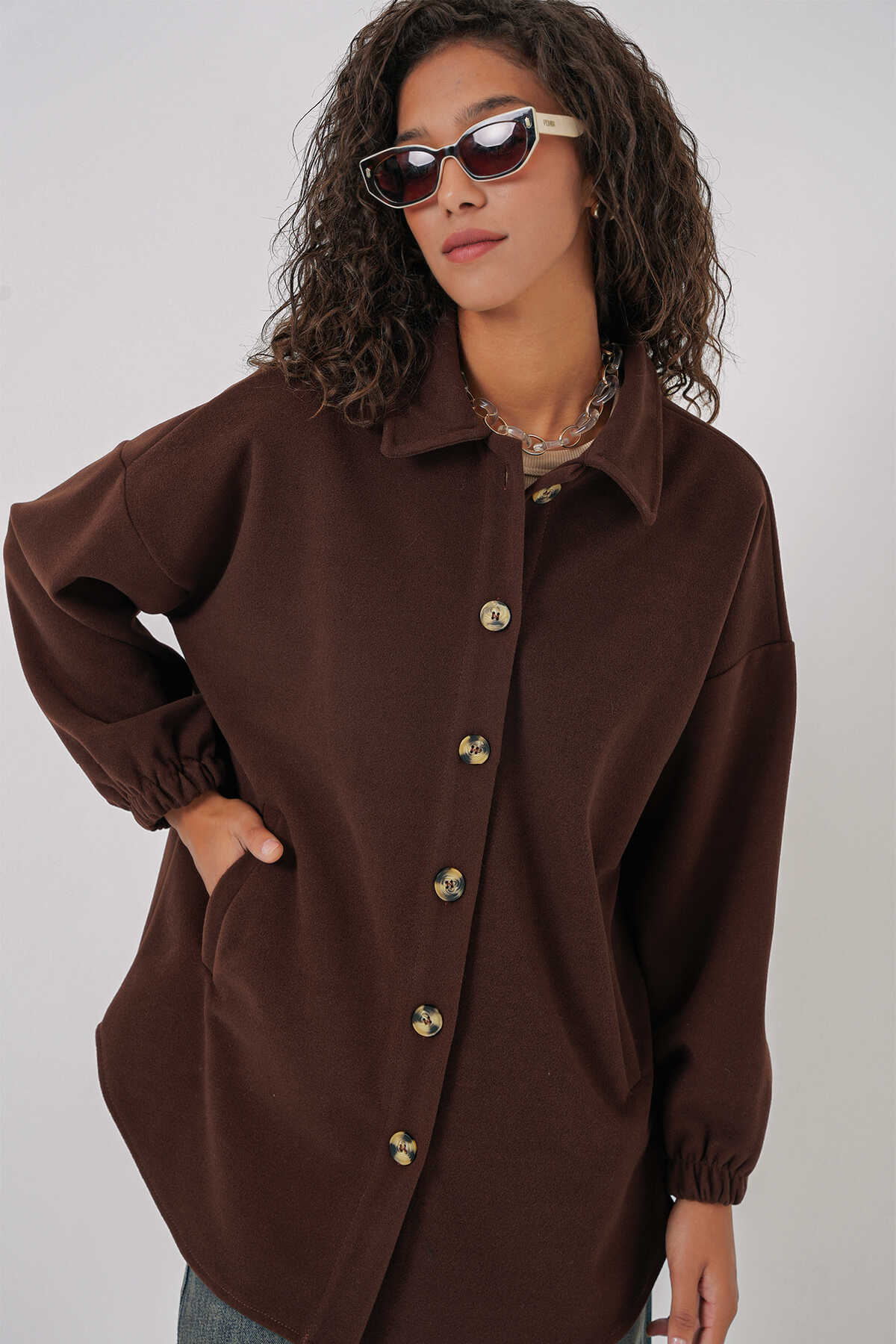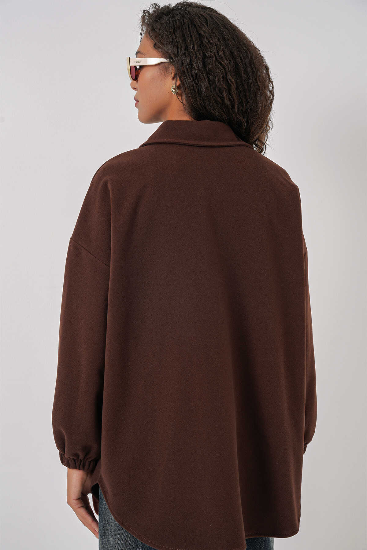 0674 Cepli Oversize Gömlek - C. Kahverengi