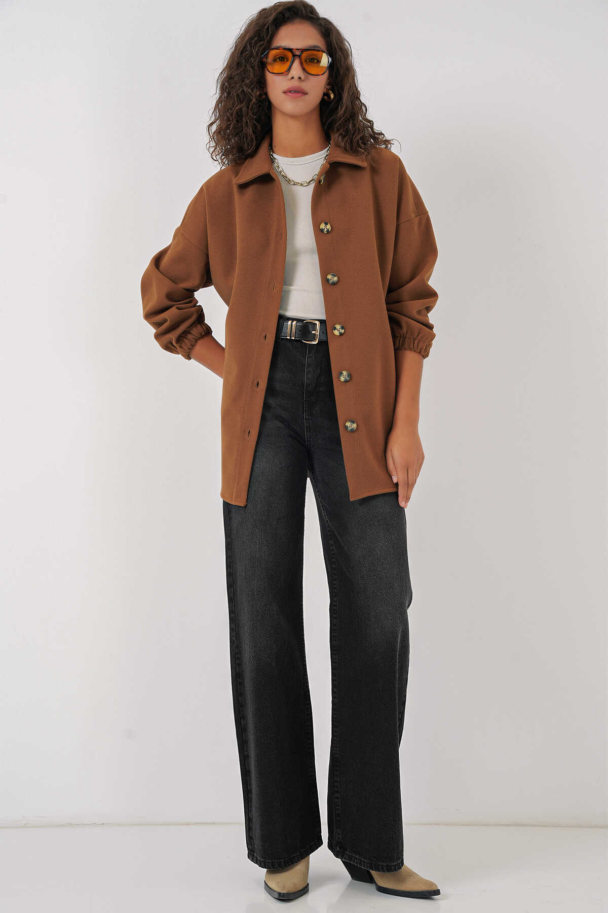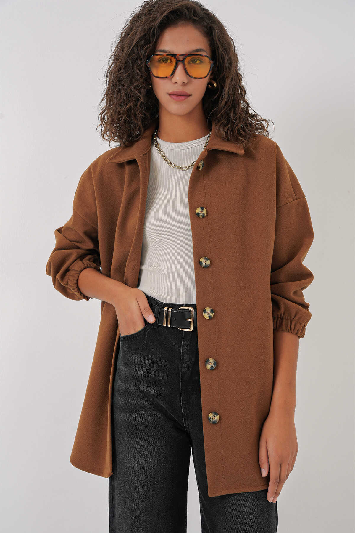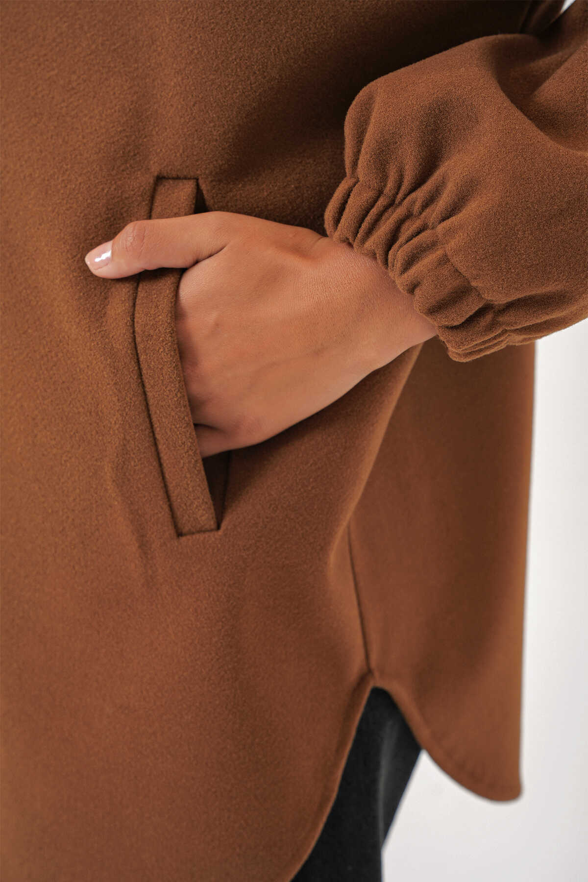 Cepli Oversize Yünlü Ceket