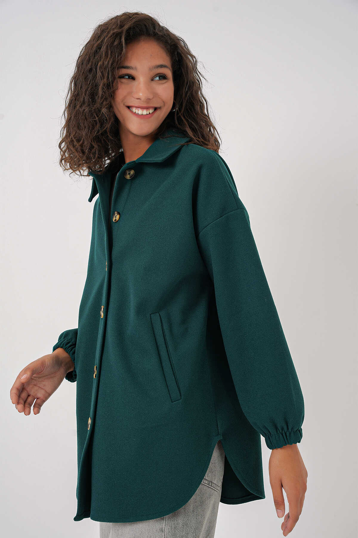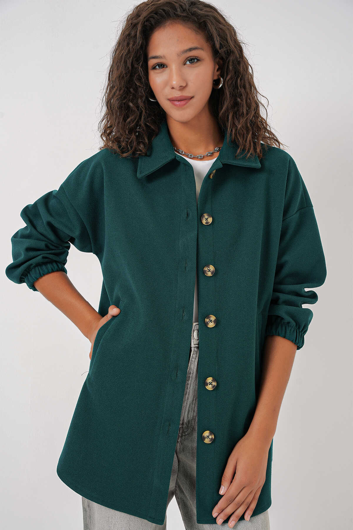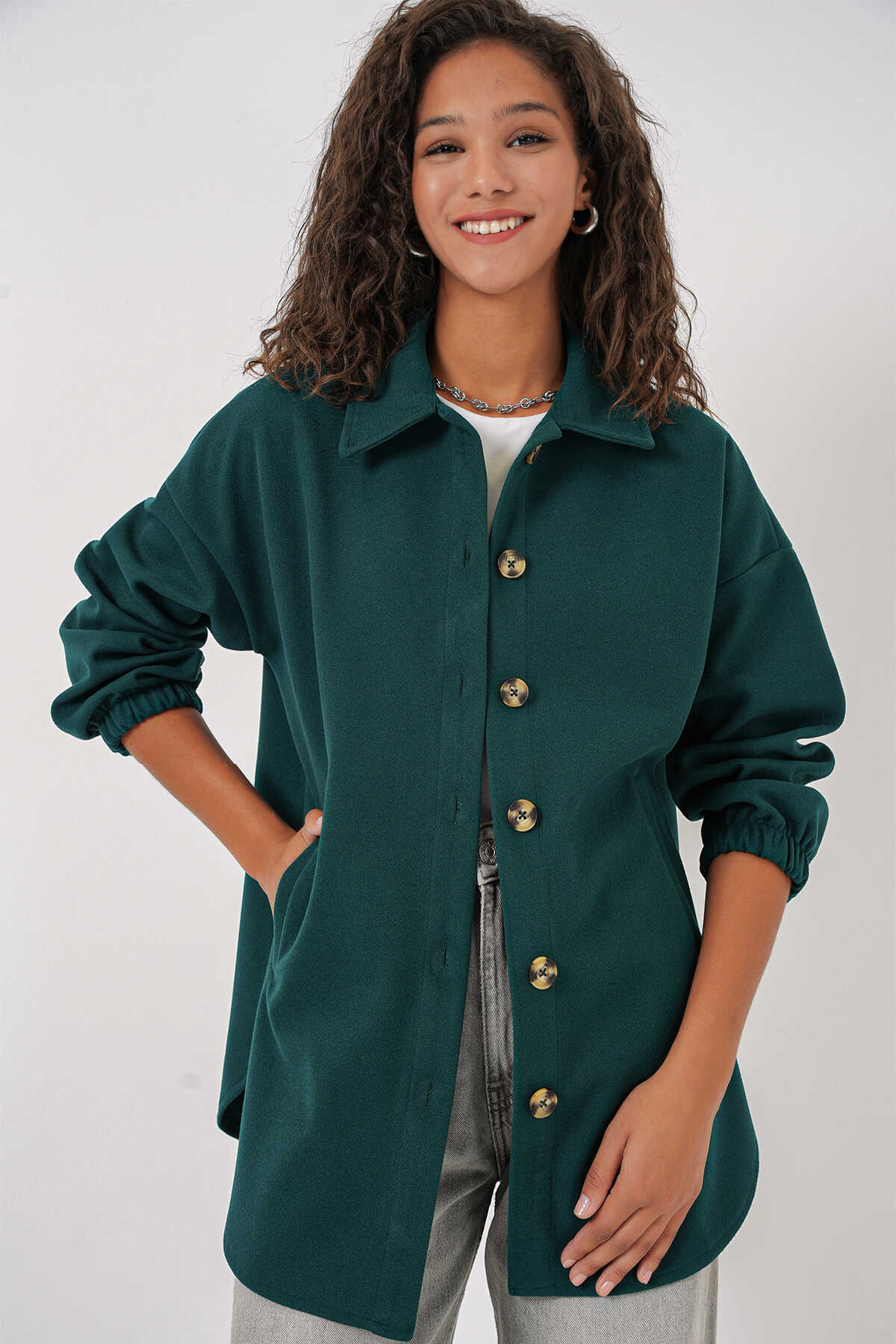 0674 Cepli Oversize Gömlek - Y.Zümrüt