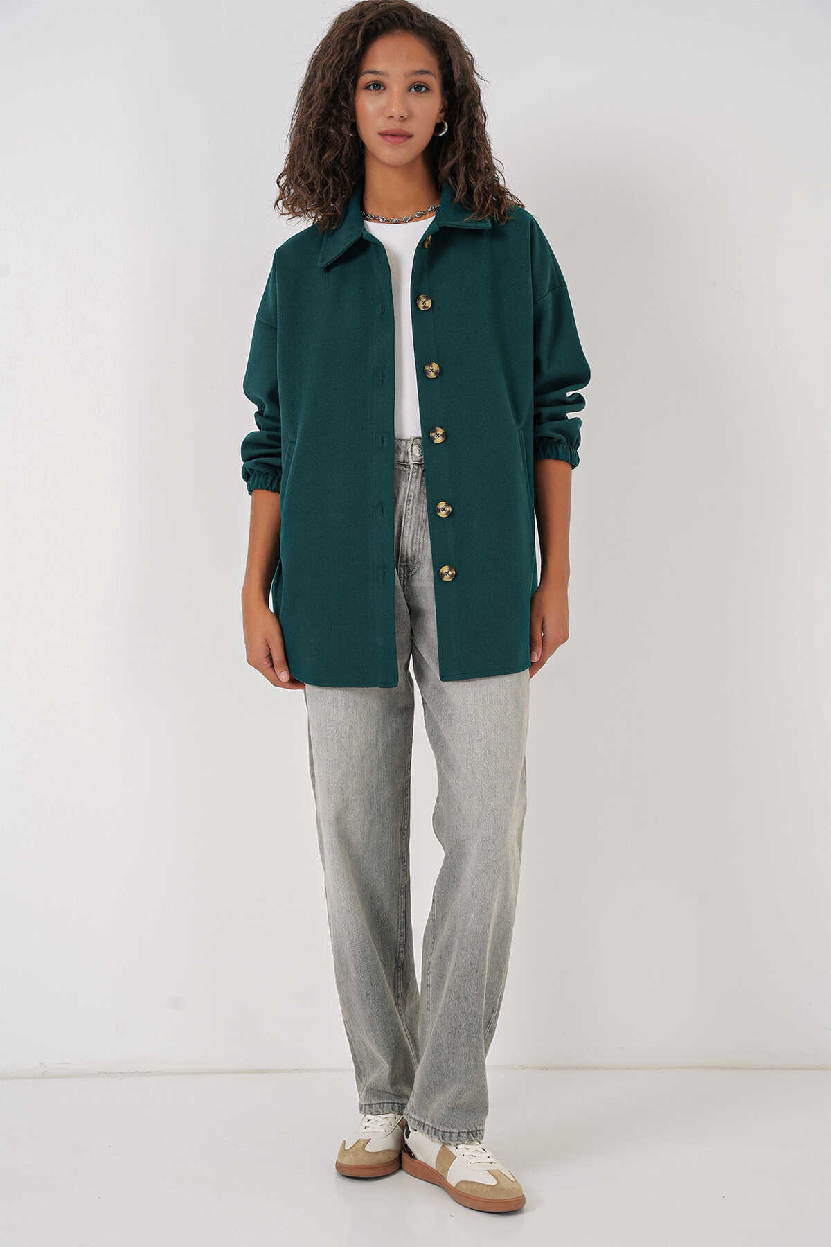 0674 Cepli Oversize Gömlek - Y.Zümrüt - Kombin