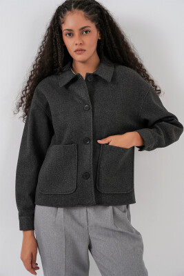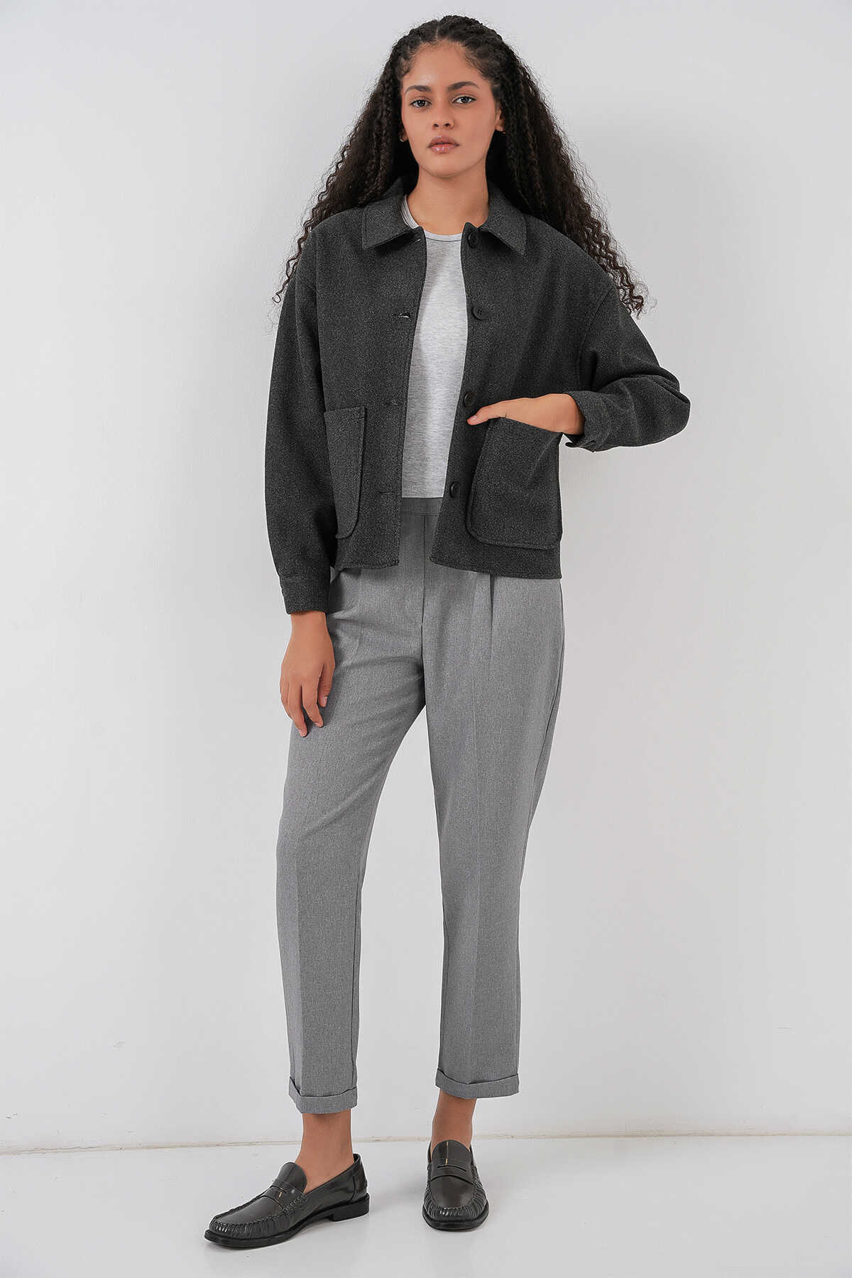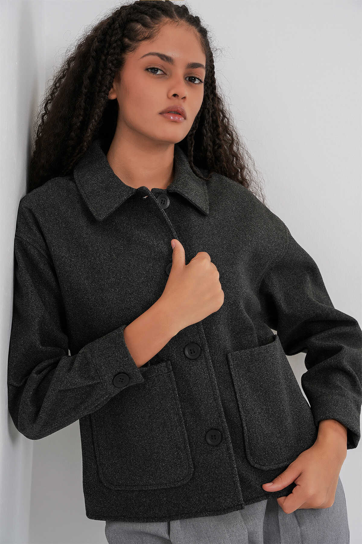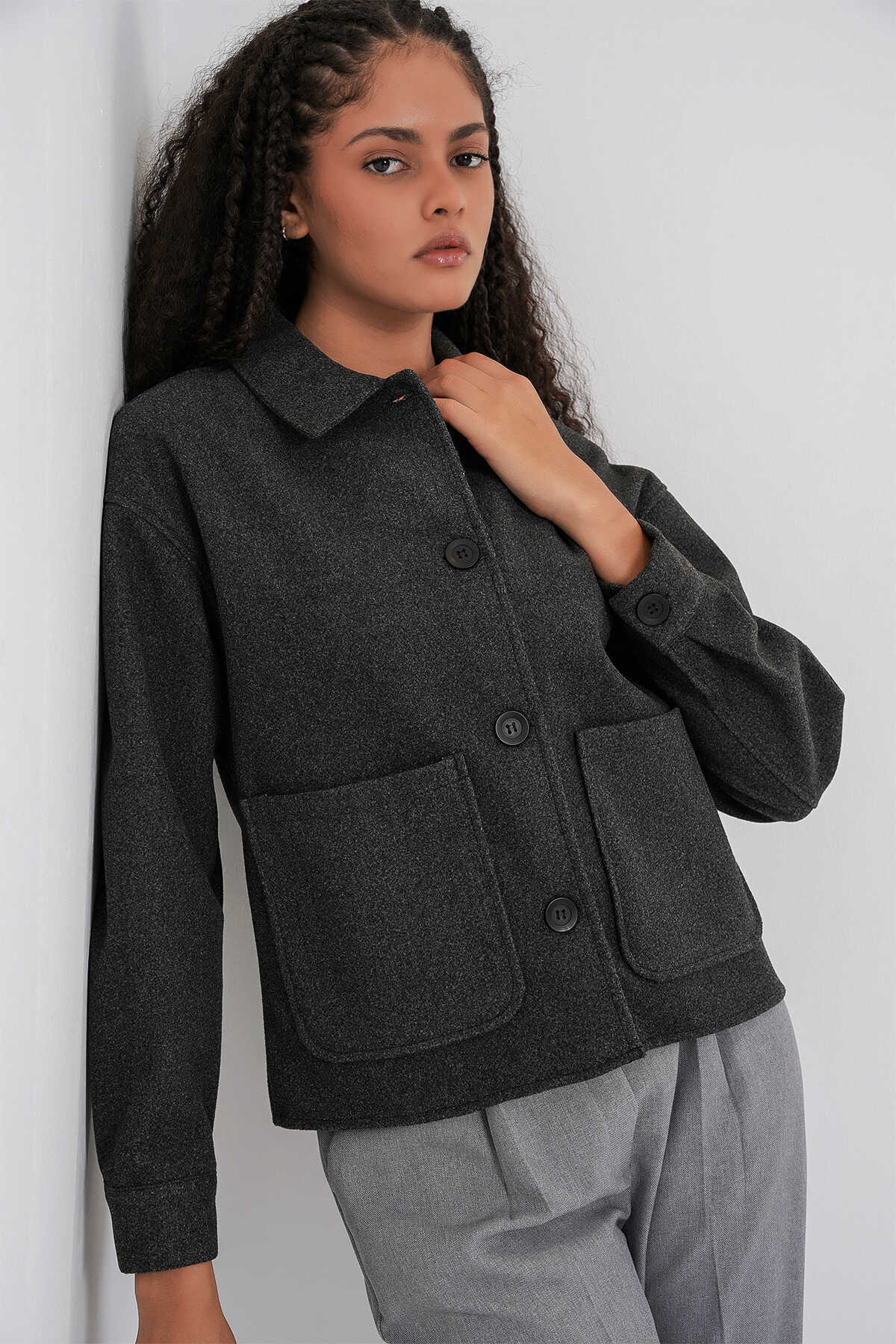 0713 Kadın Kaşe Ceket - Antrasit - Kombin