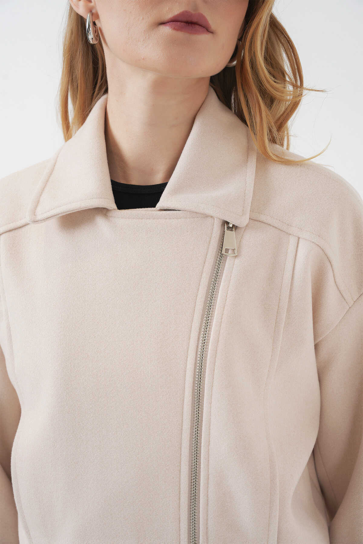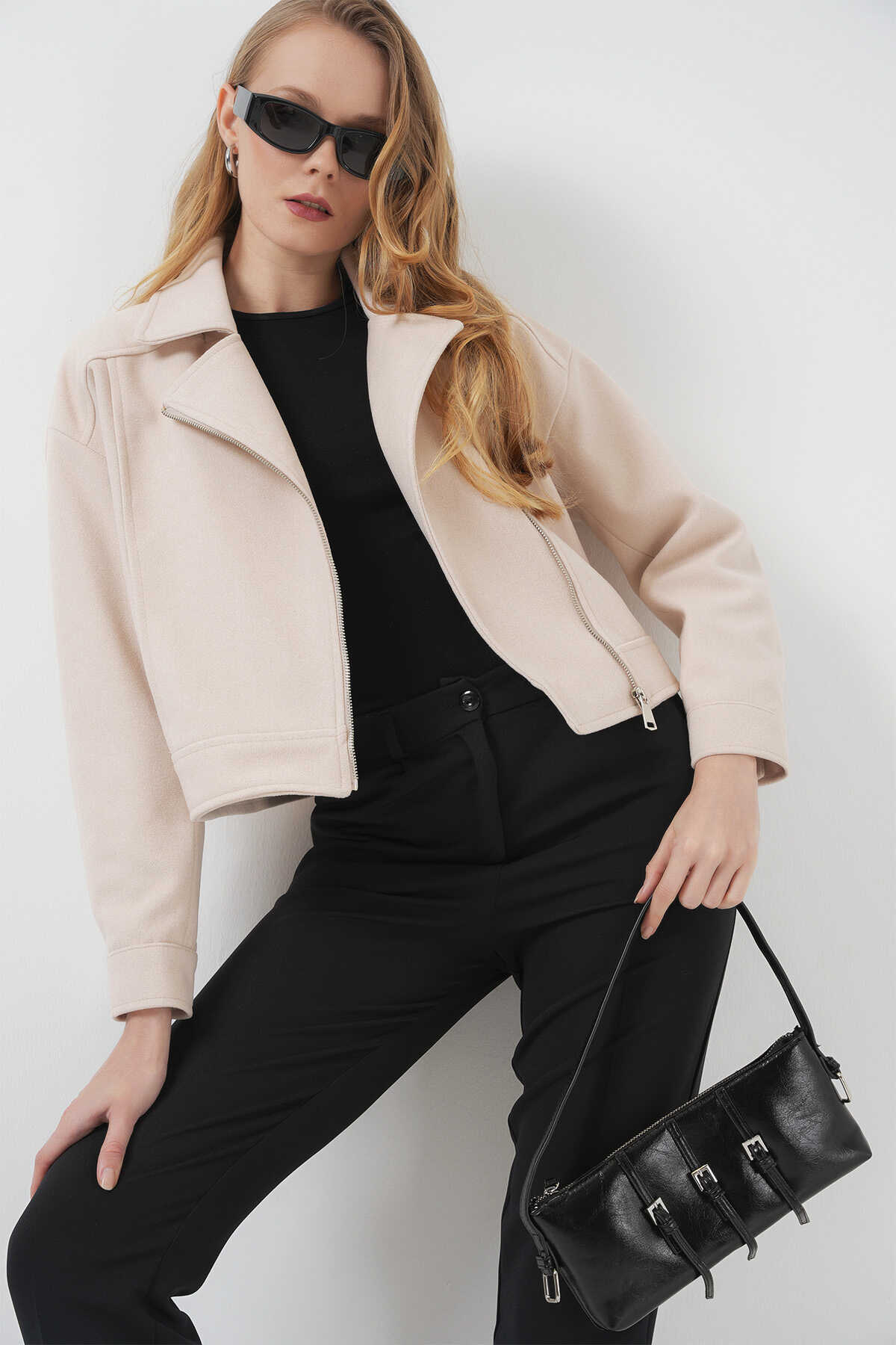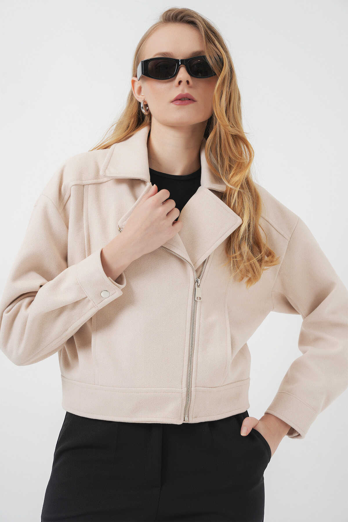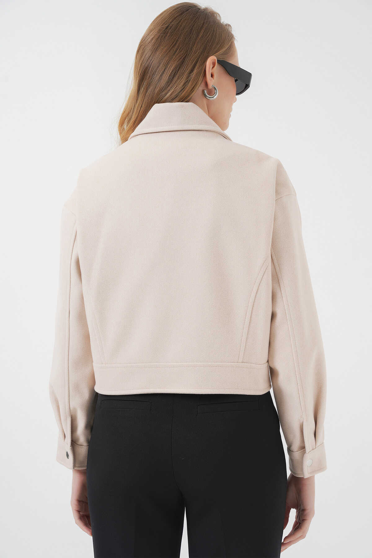 0717 Kadın Kısa Kaşe Ceket - Bej - Kombin