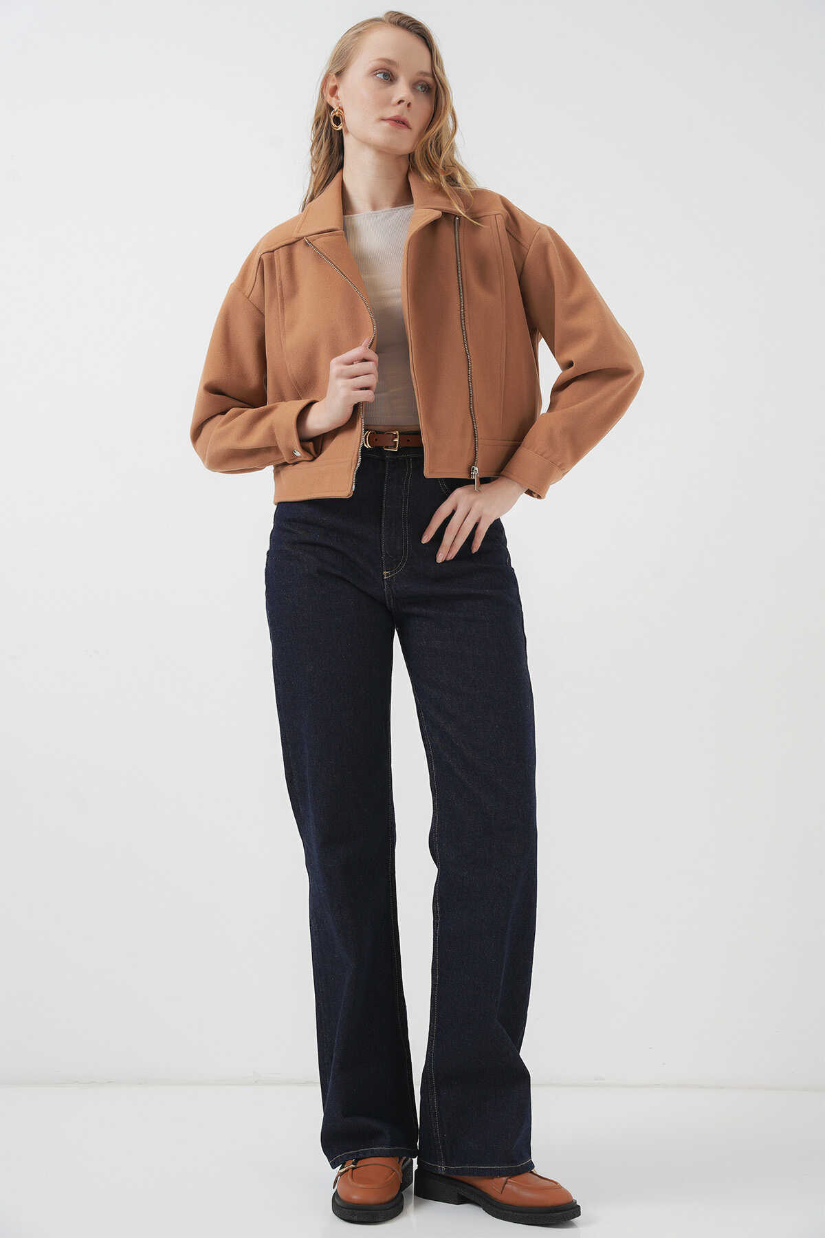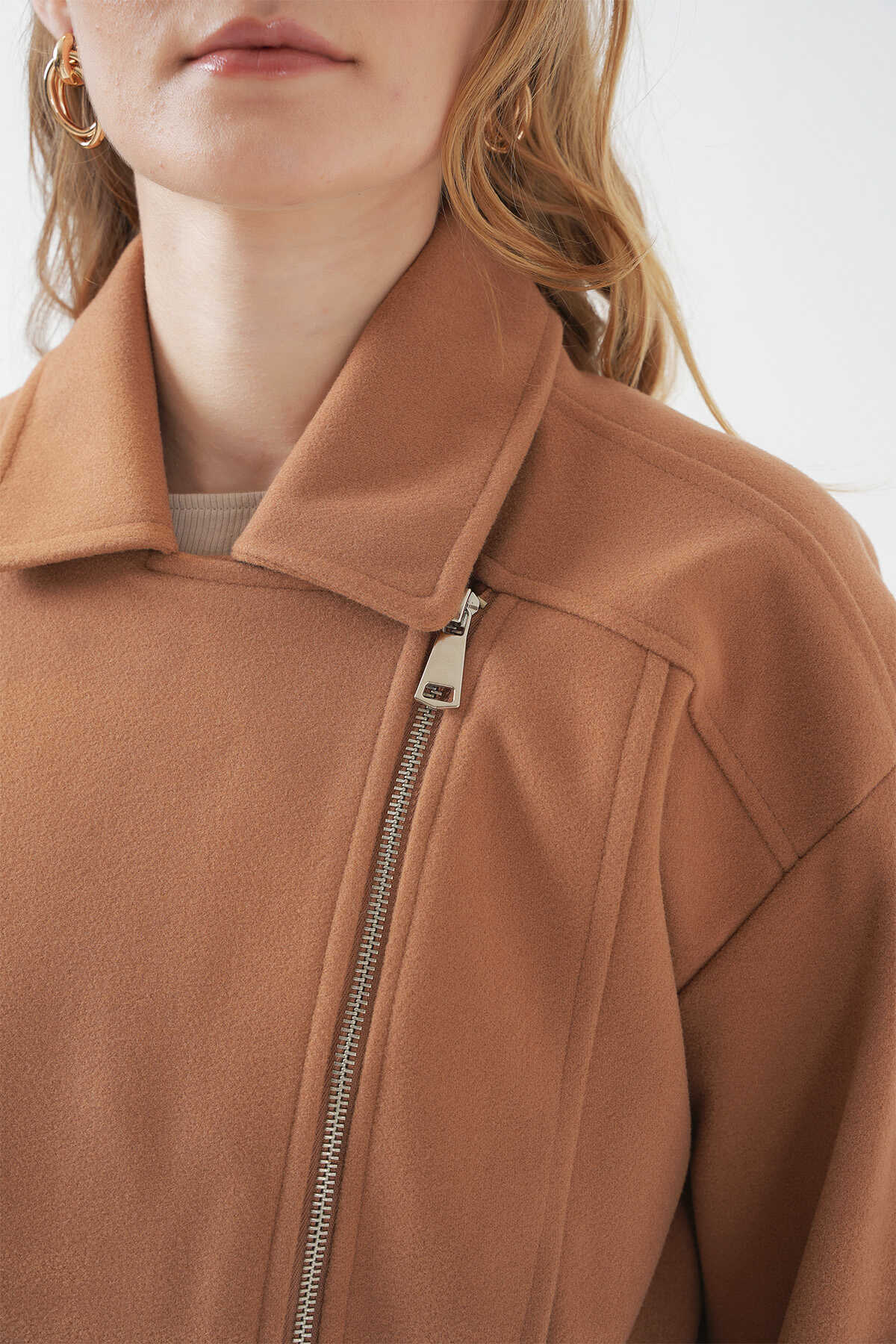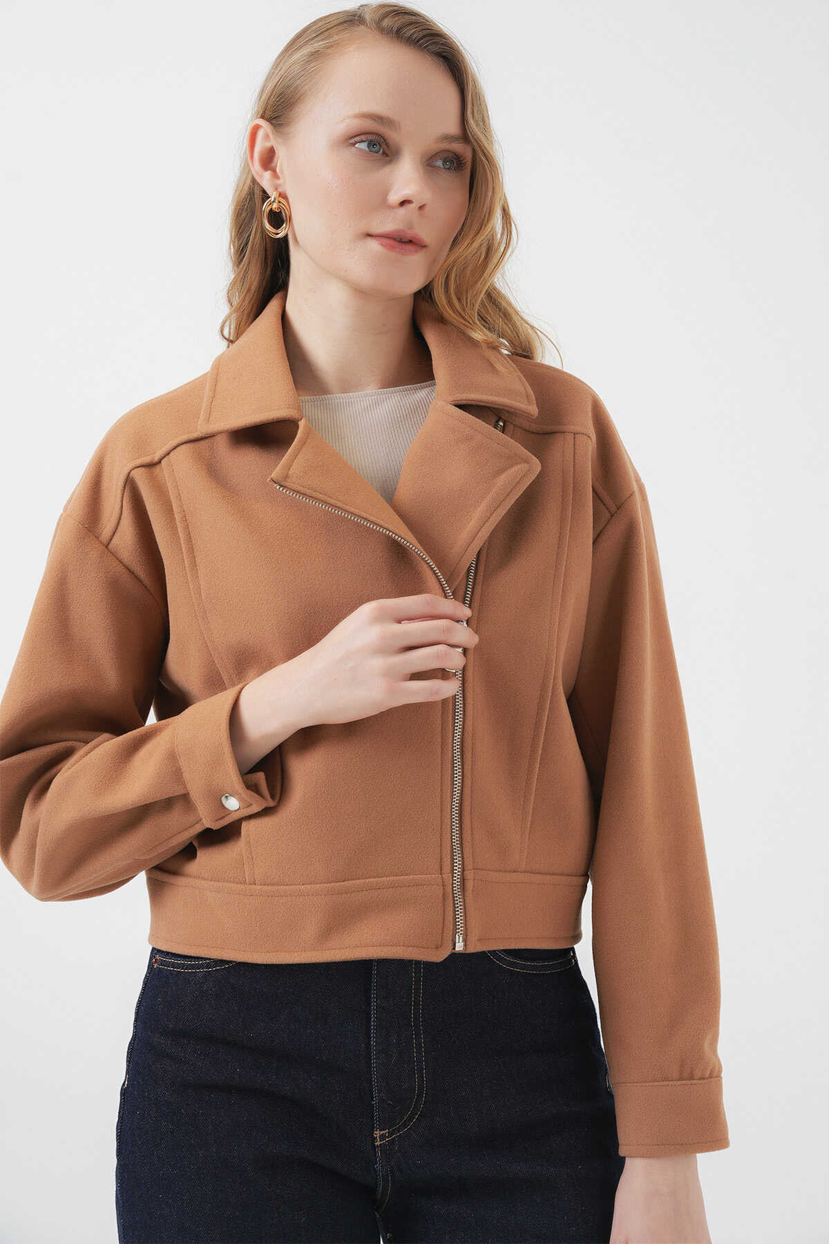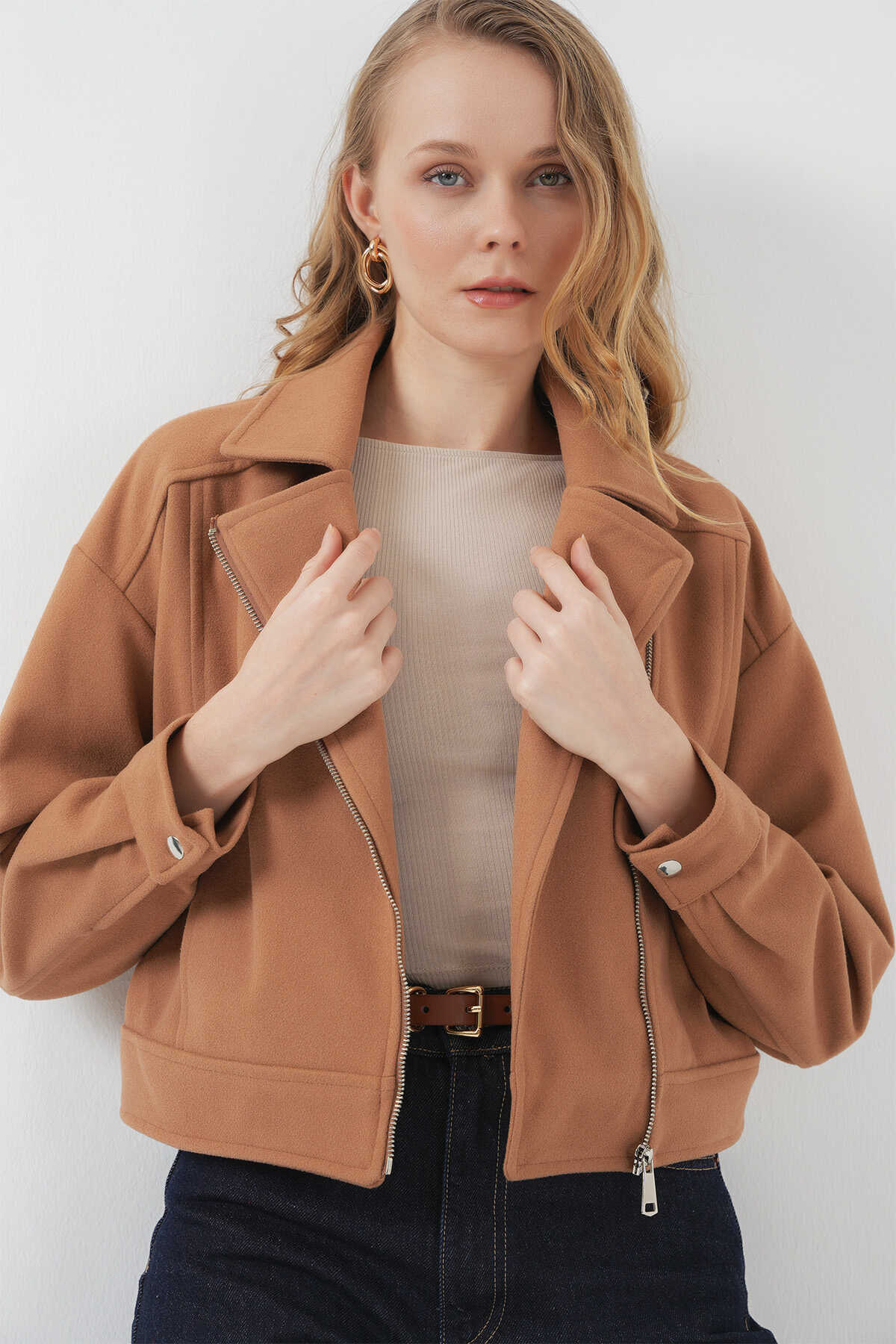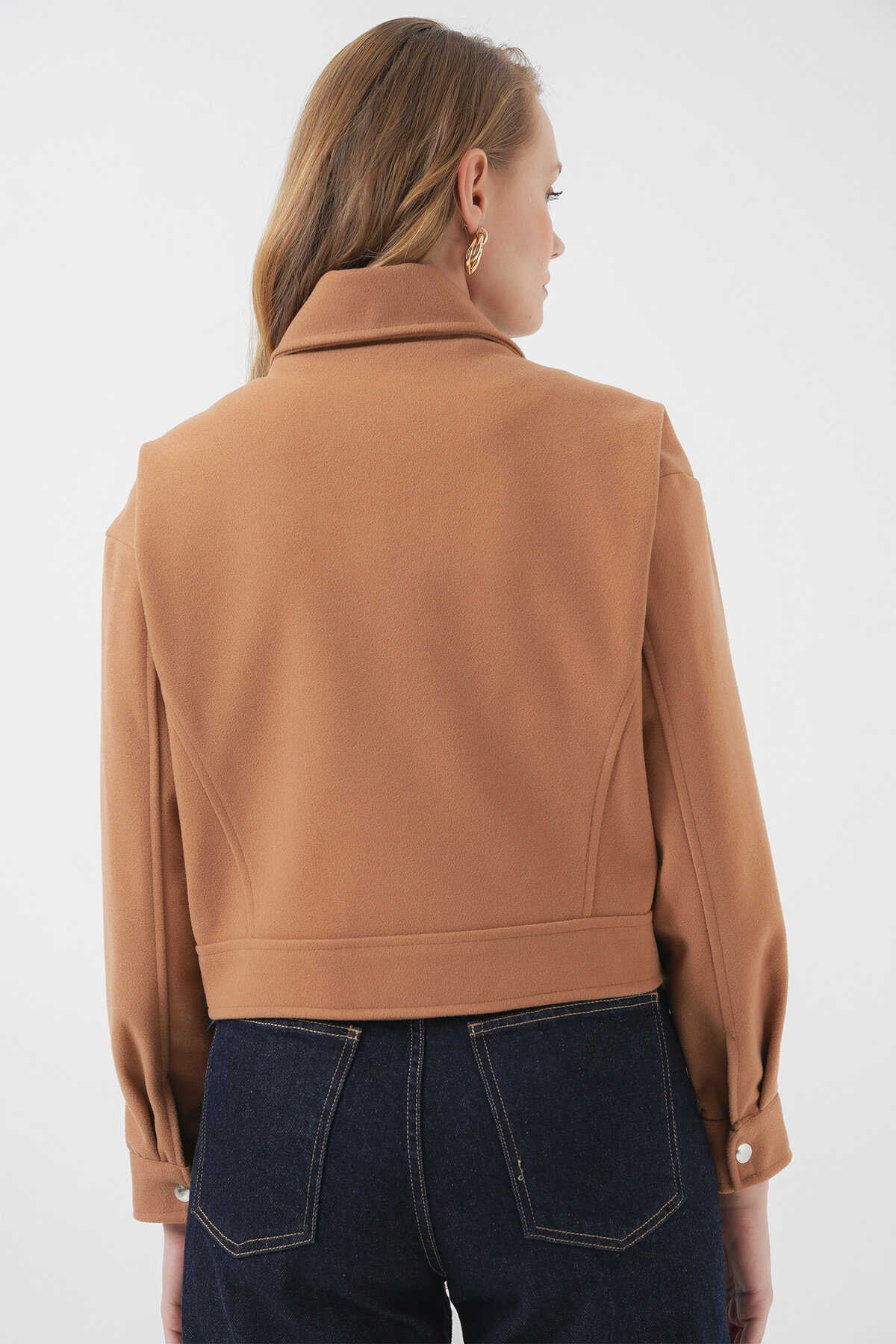 0717 Kadın Kısa Kaşe Ceket - Camel - Kombin