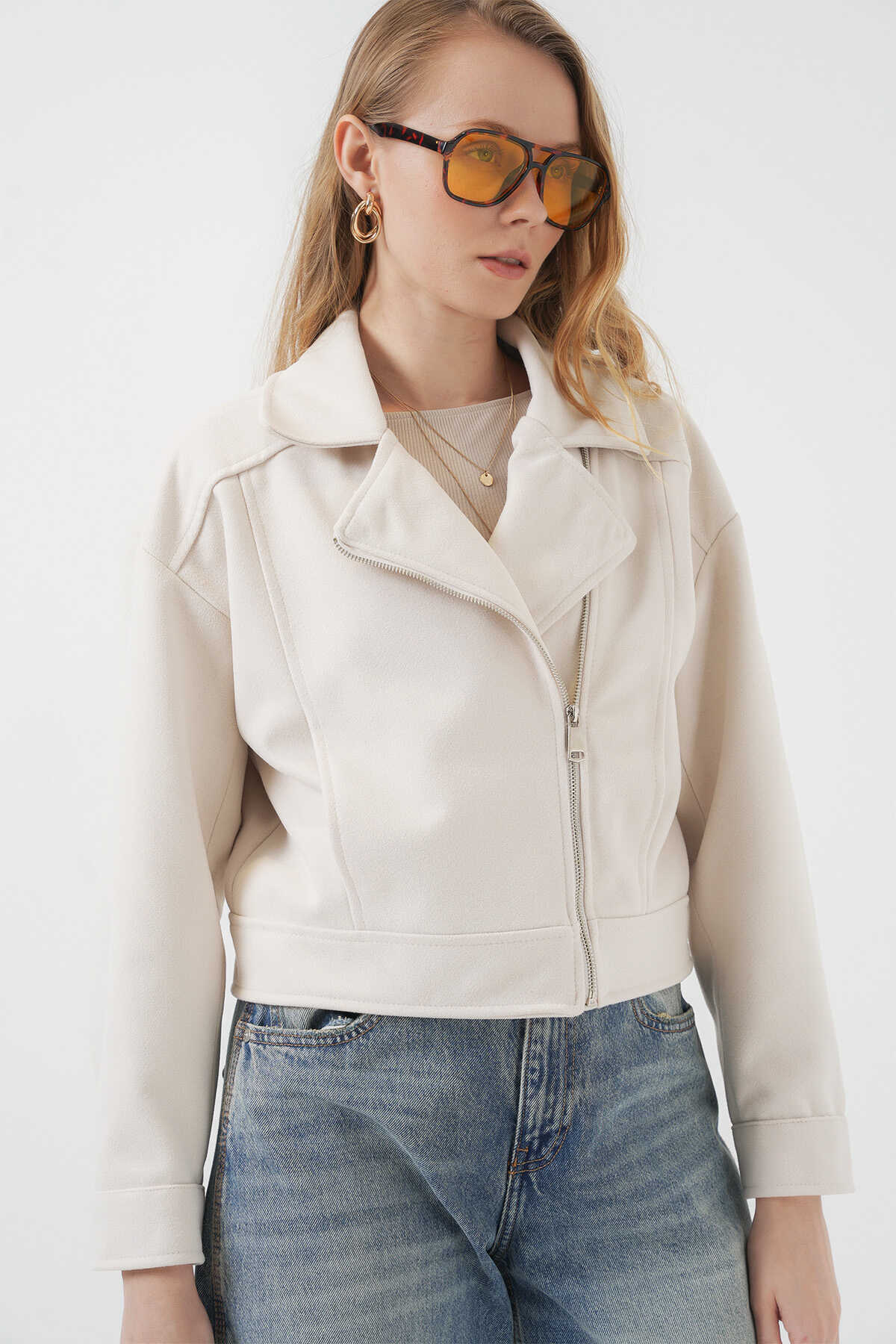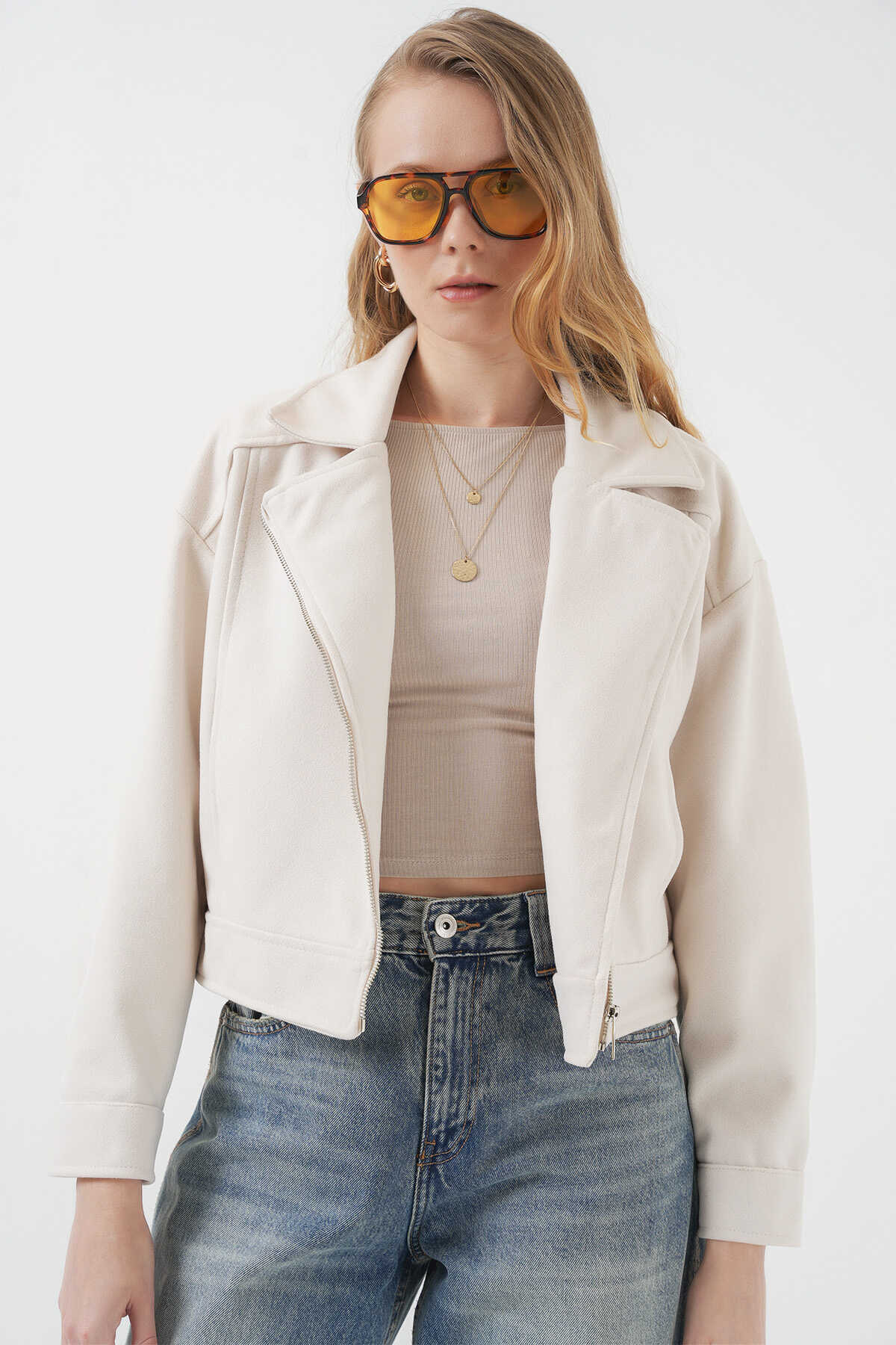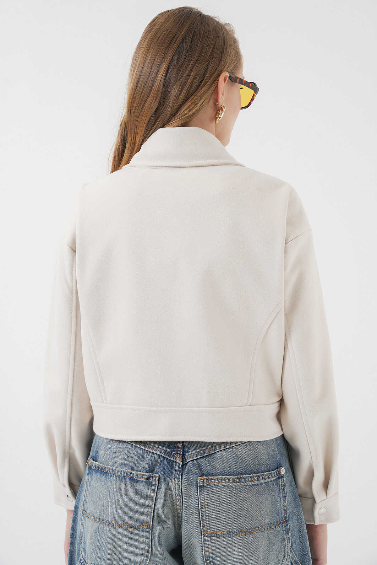 0717 Kadın Kısa Kaşe Ceket - Ekru - Kombin