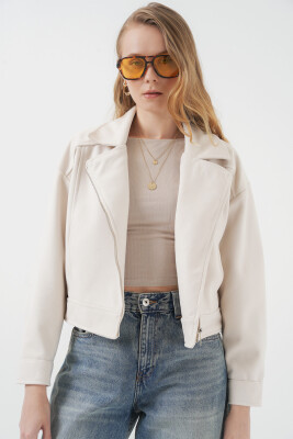 0717 Kadın Kısa Kaşe Ceket - Ekru