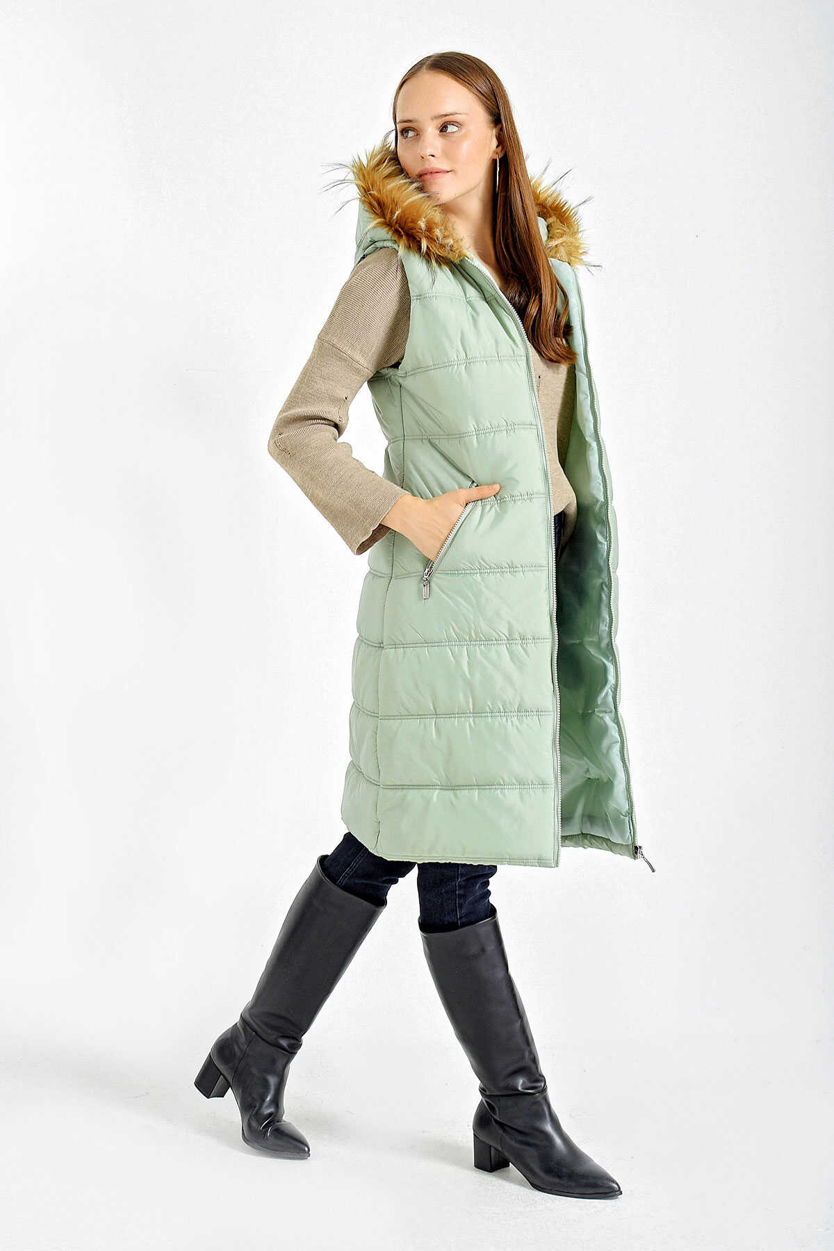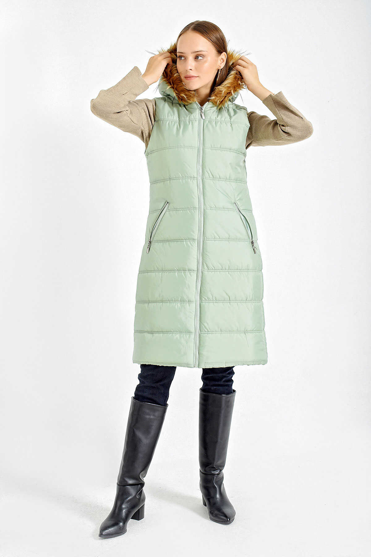 KAPSONU KÜRKLÜ SISME YELEK