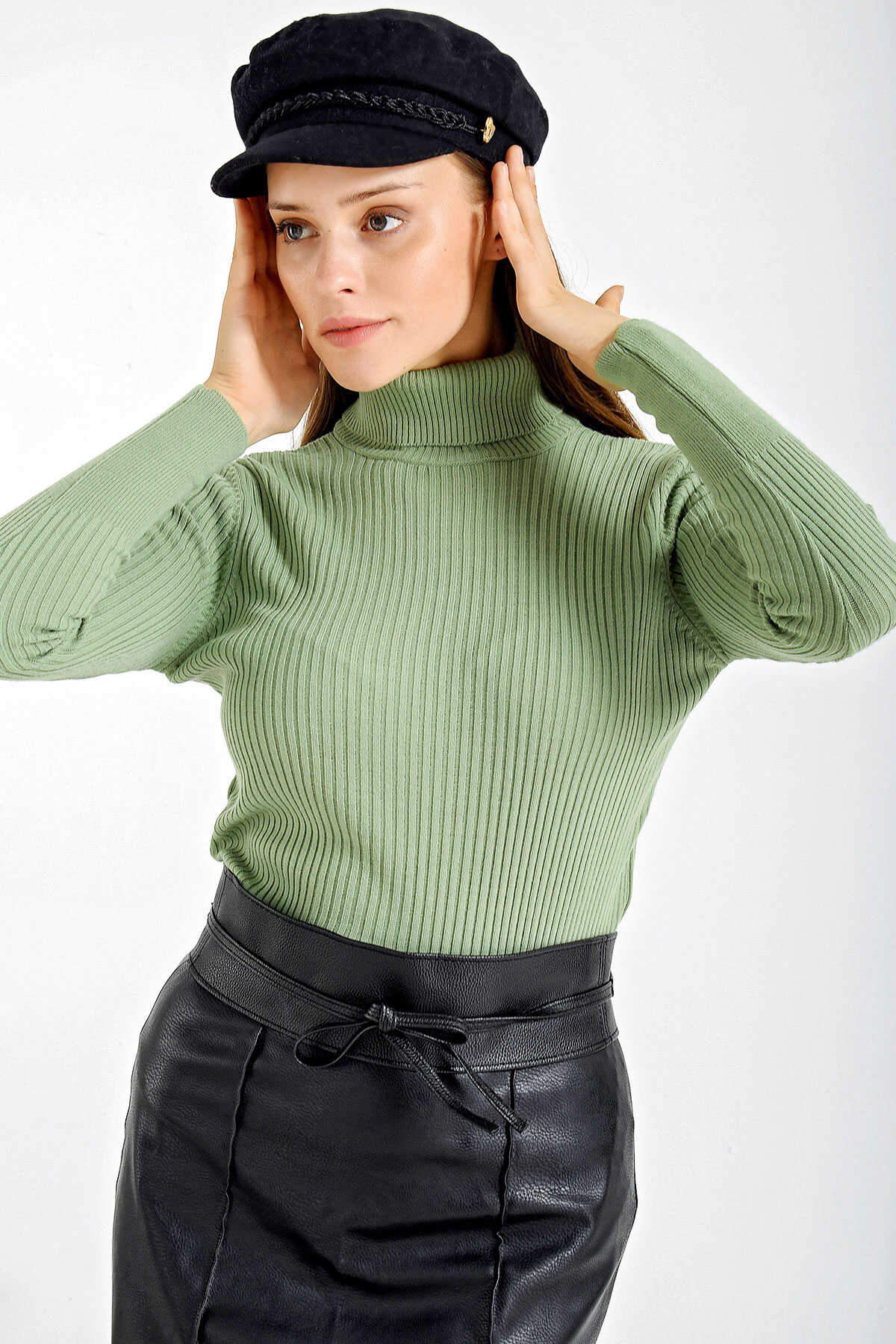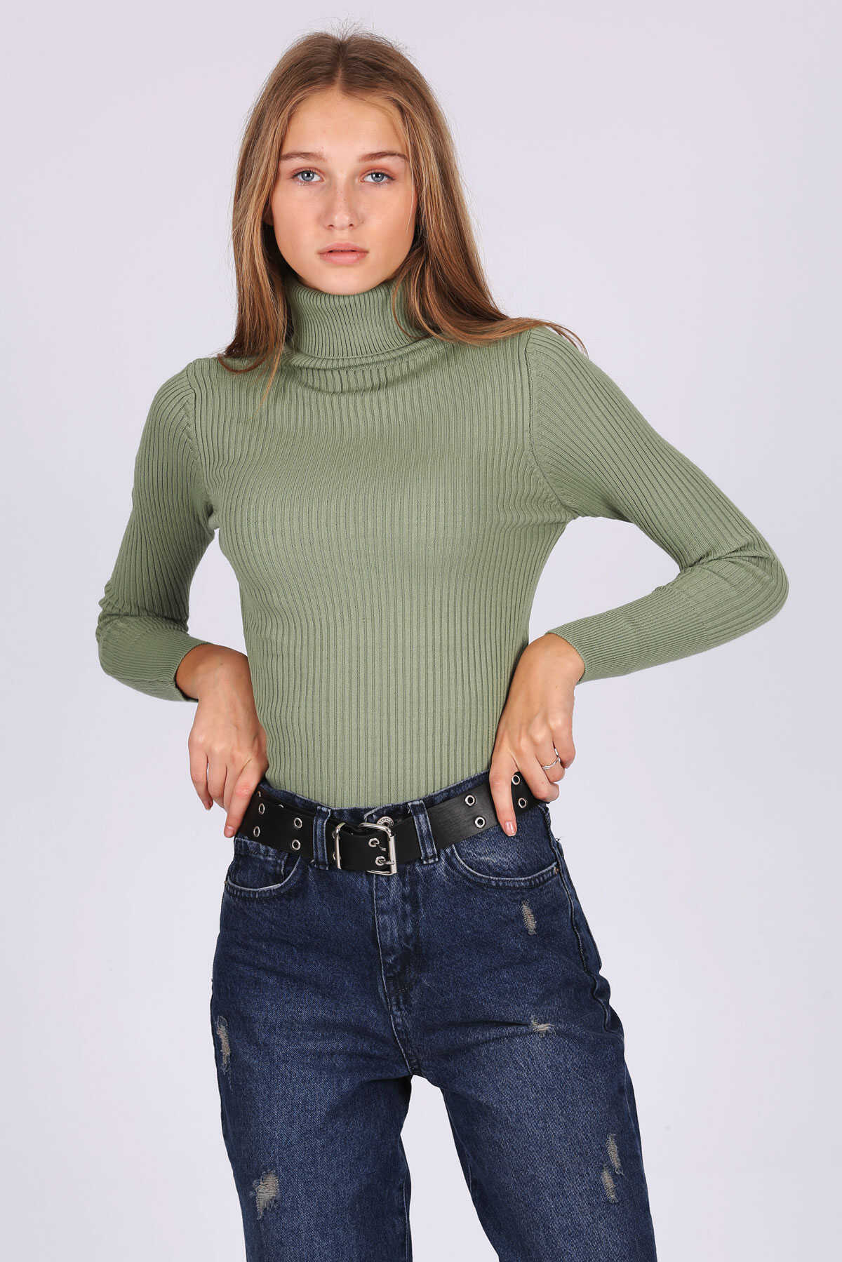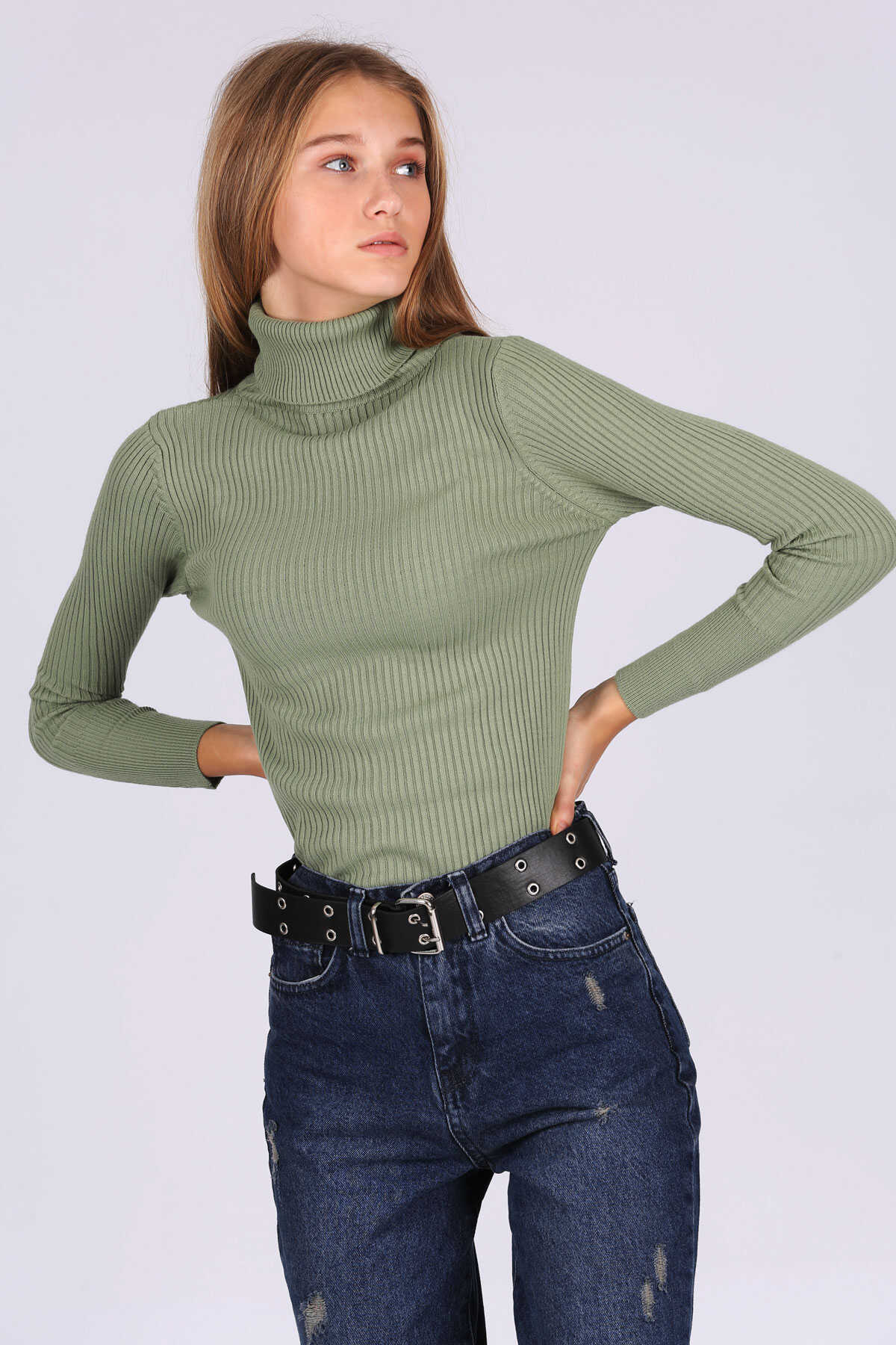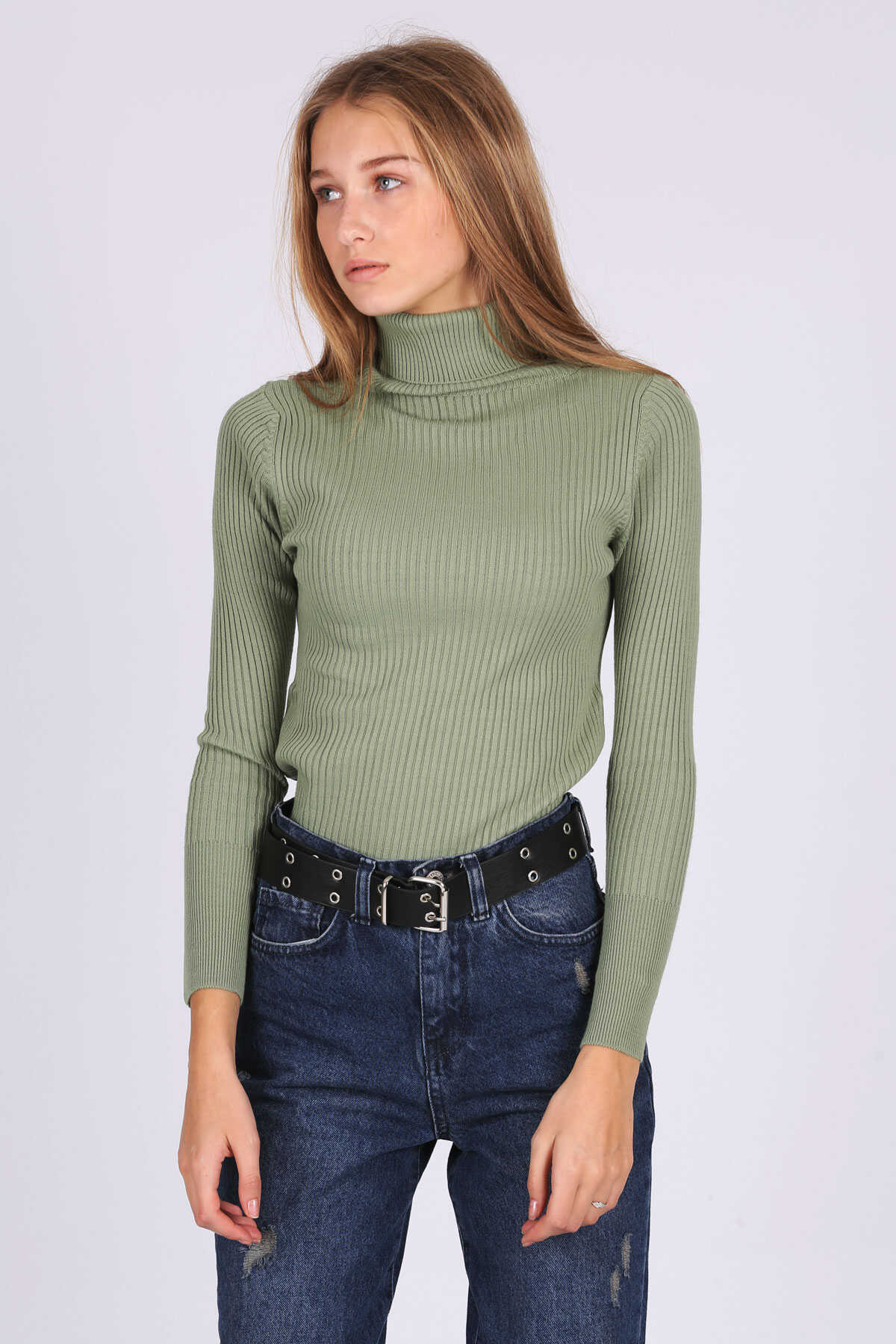10311 Balıkçı Yaka Triko Kazak - Çağla - Kombin