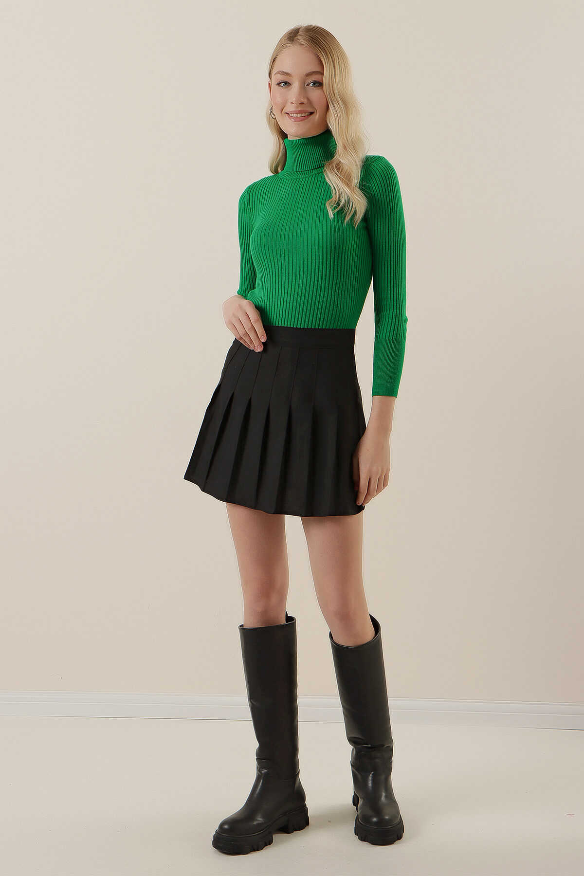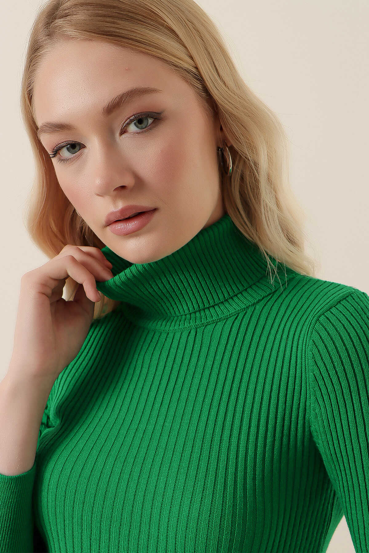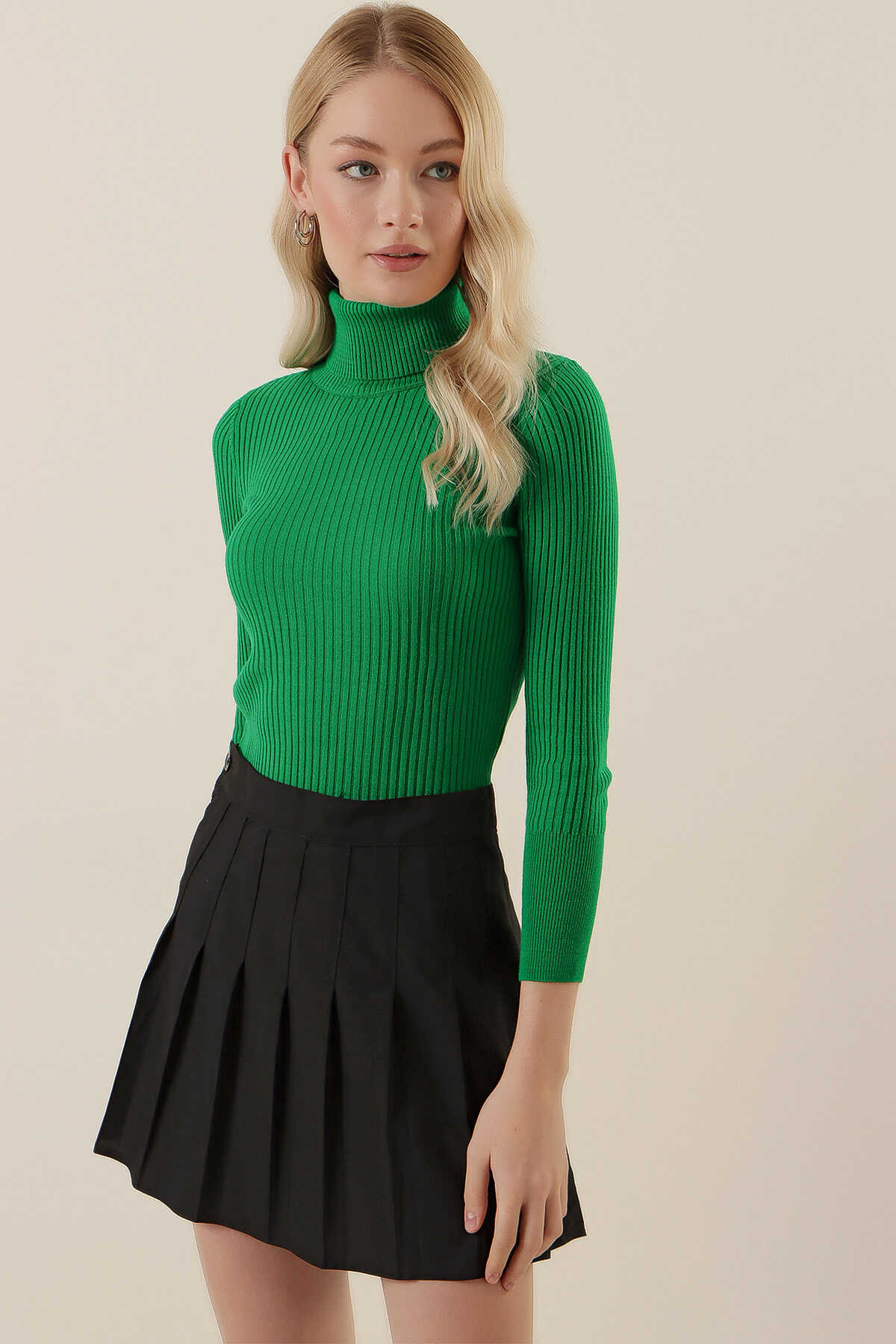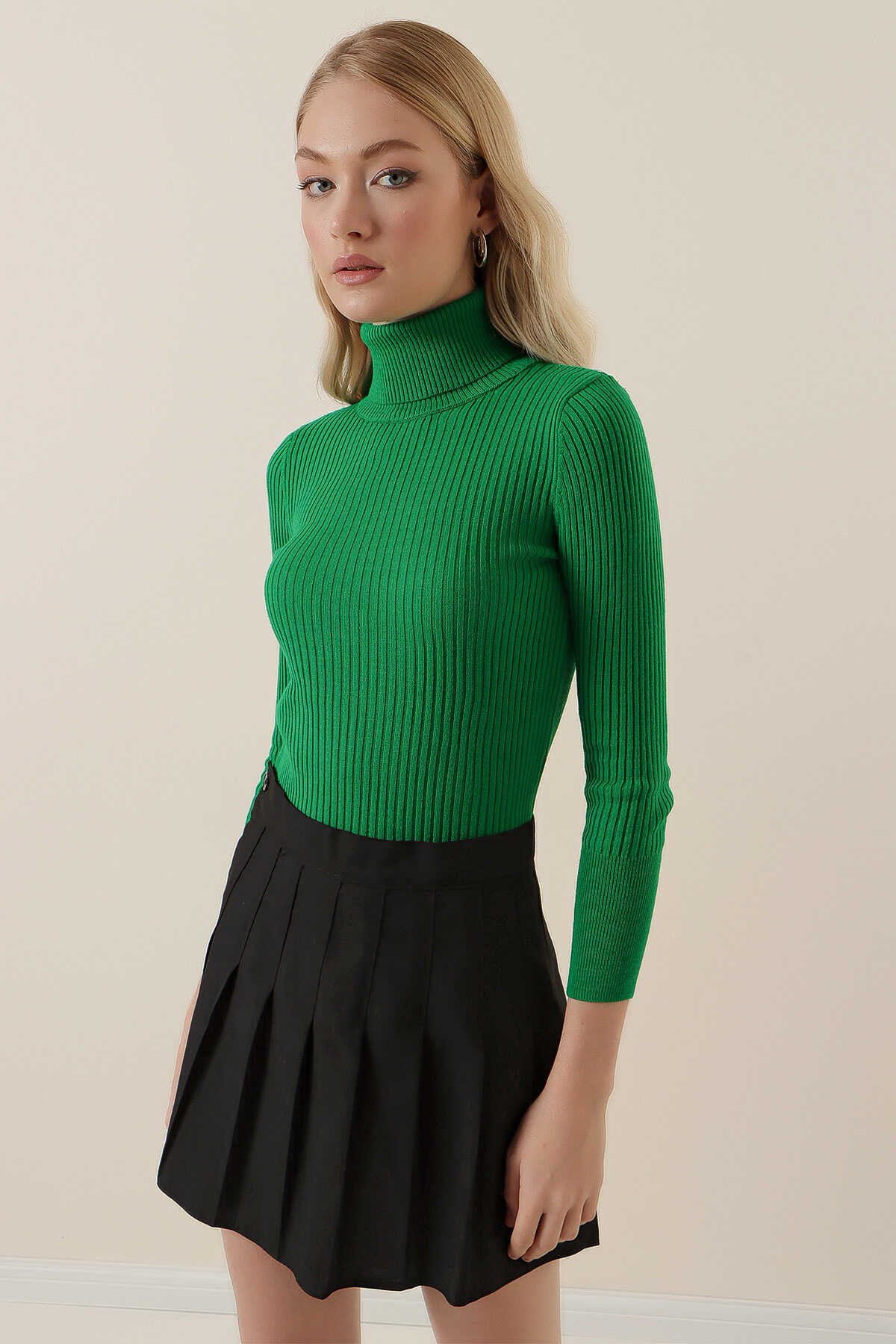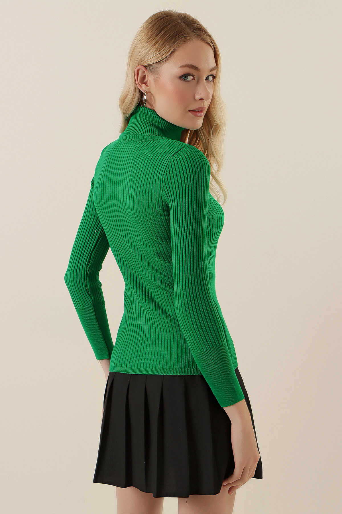 10311 Balıkçı Yaka Triko Kazak - D.Yeşil - Kombin