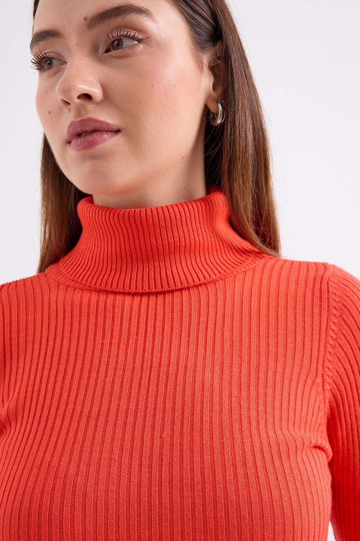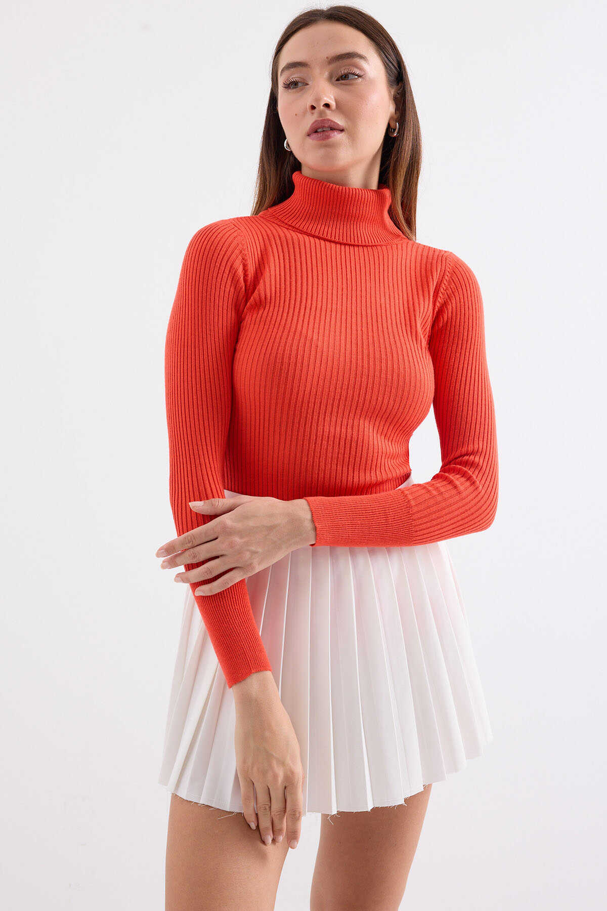 10311 Balıkçı Yaka Triko Kazak - Turuncu