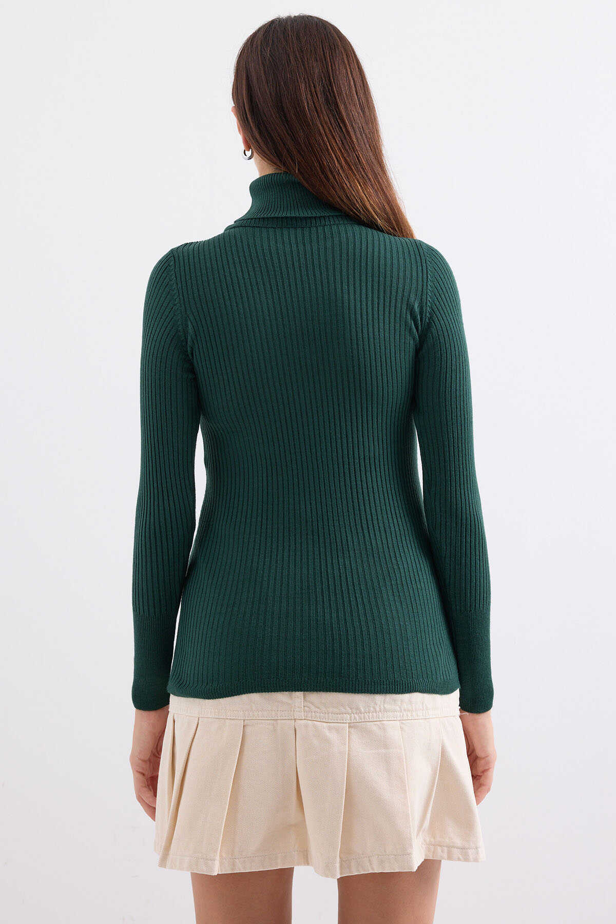 10311 Balıkçı Yaka Triko Kazak - Zümrüt Yeşili