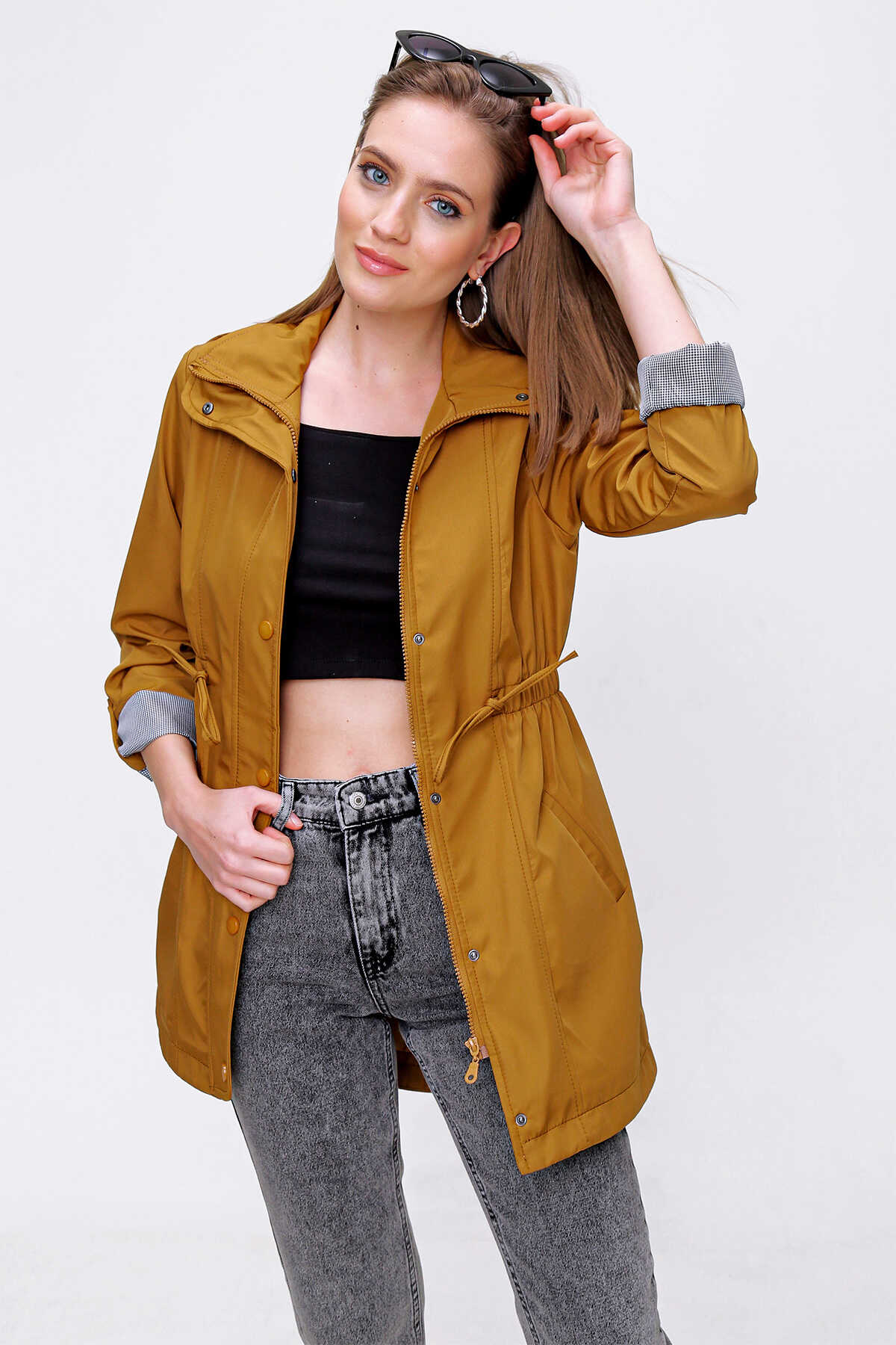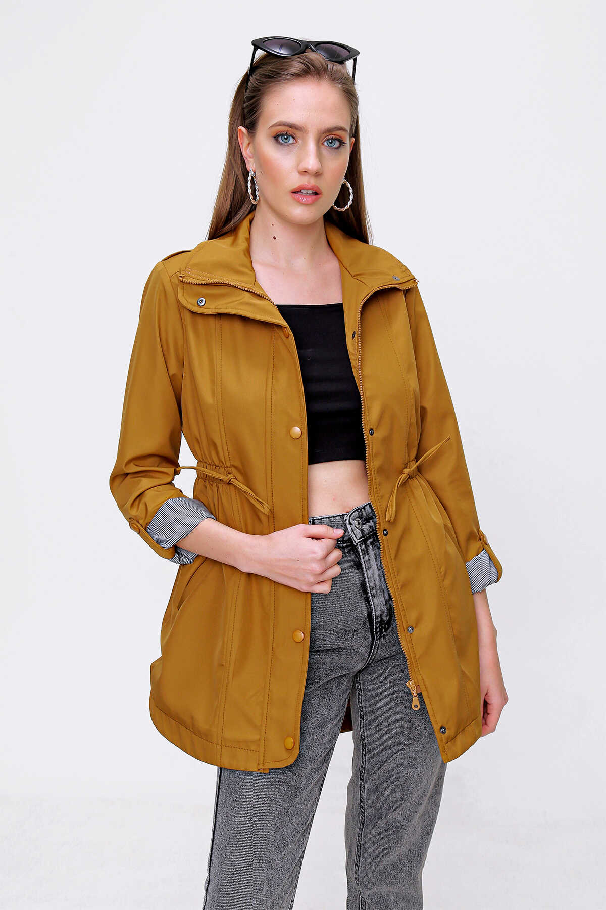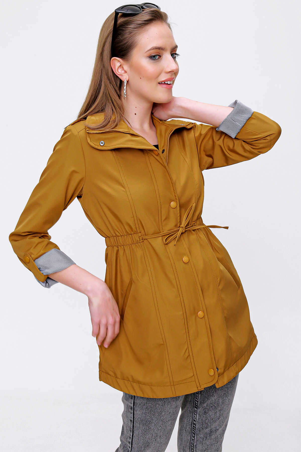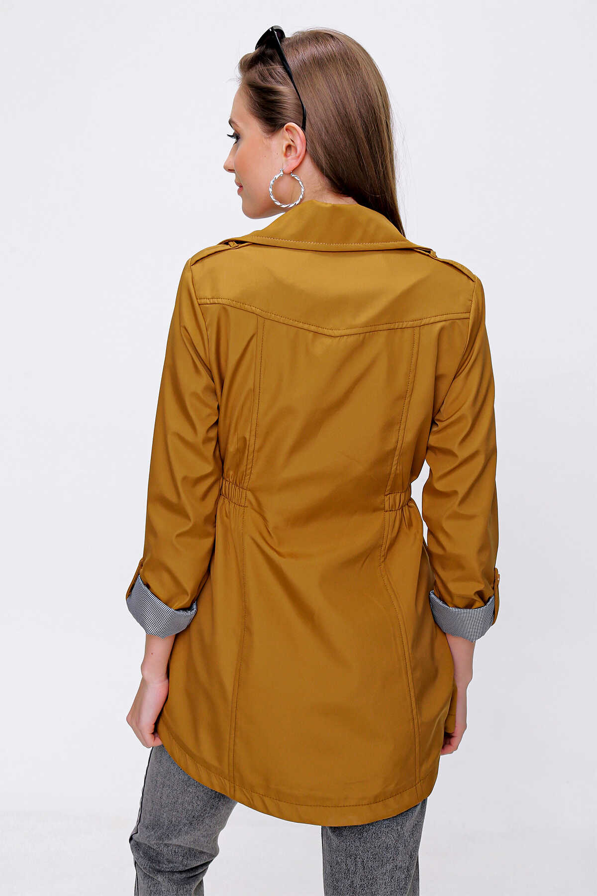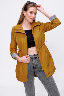 10322 Beli Büzgülü Trençkot - Taba - Kombin