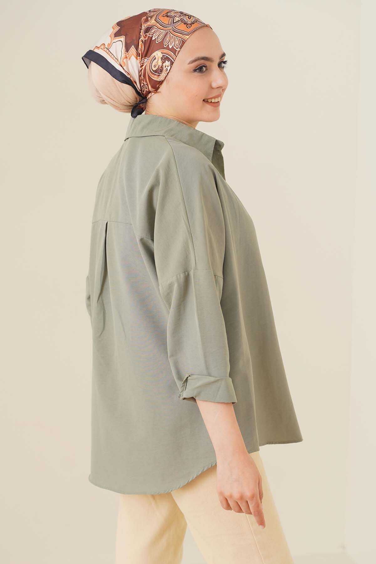 103901 Oversize Basic Tesettür Gömlek - Haki