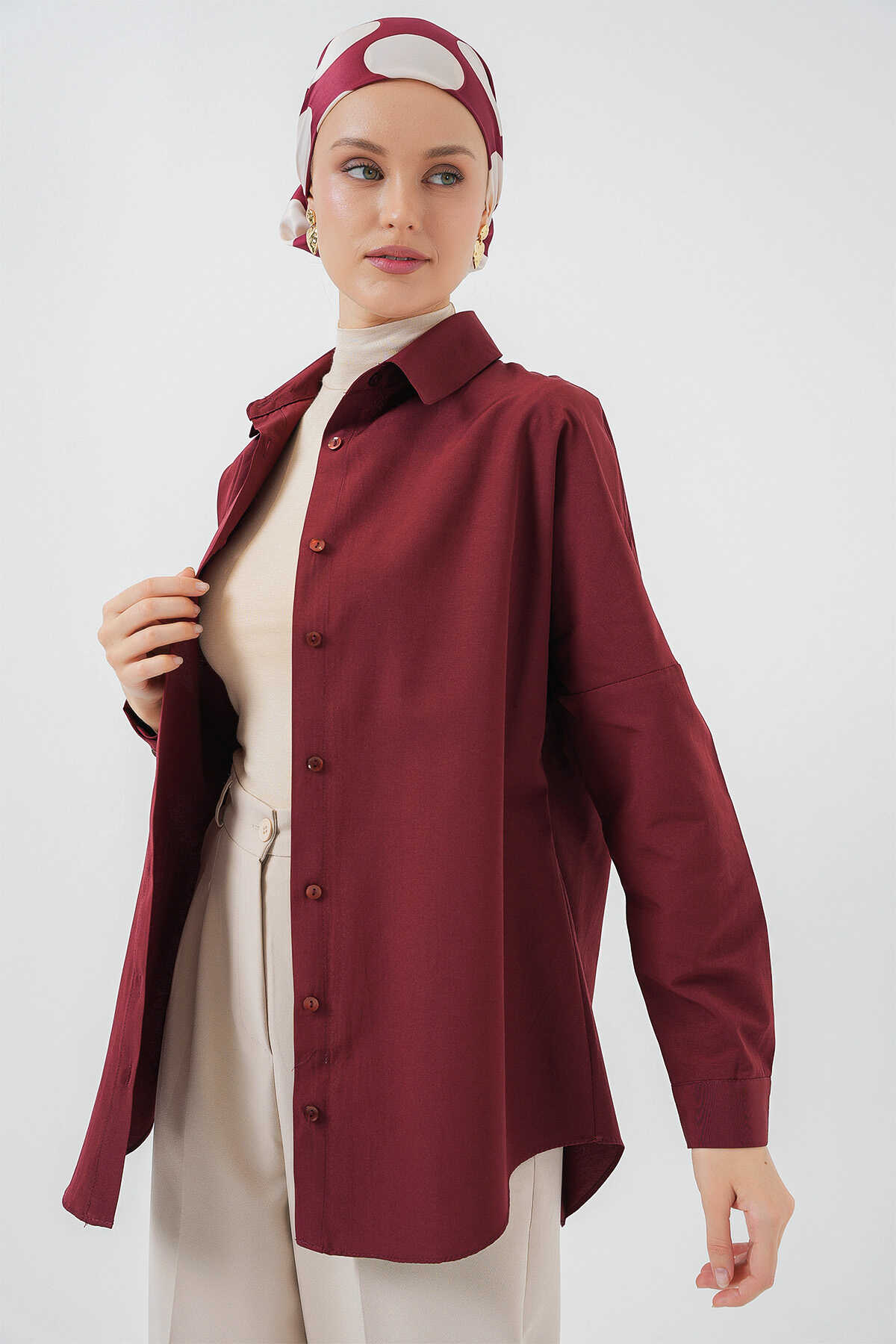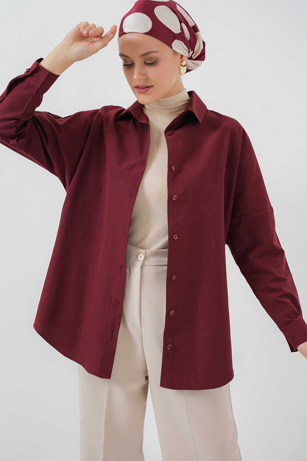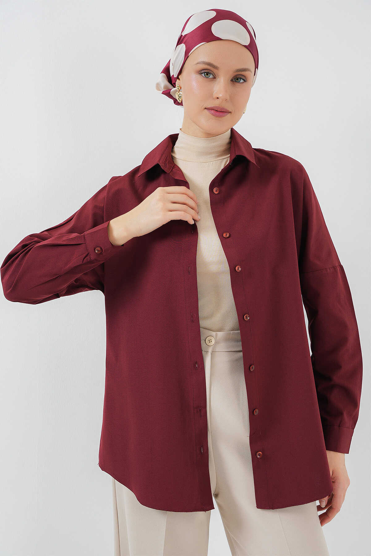 103901 Oversize Basic Tesettür Gömlek - Mürdüm - Kombin