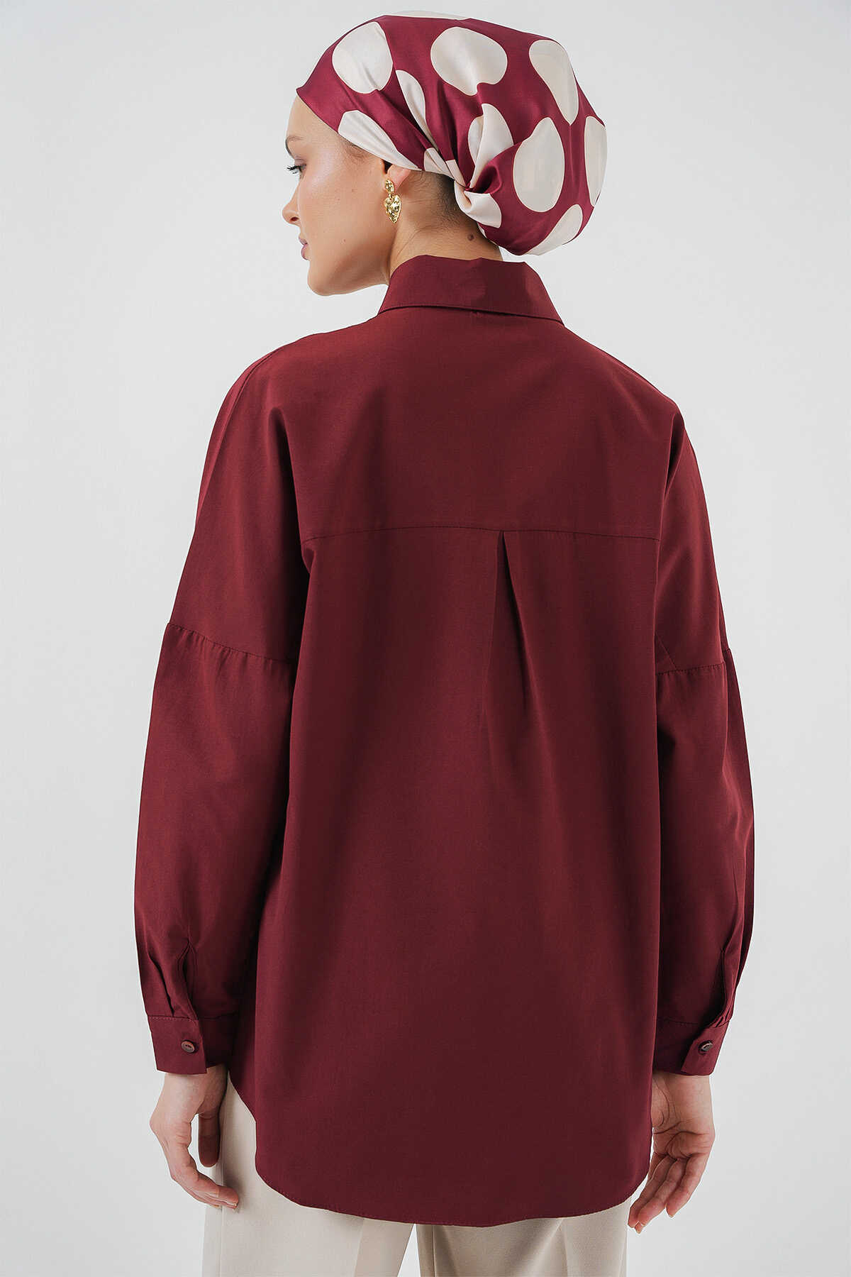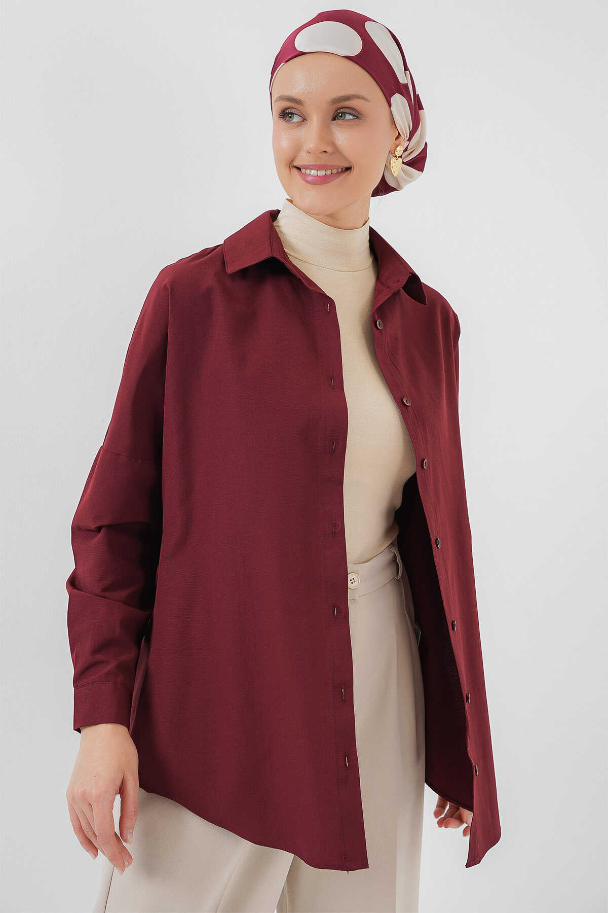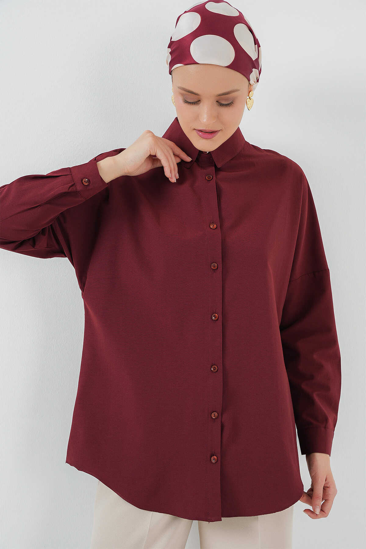 103901 Oversize Basic Tesettür Gömlek - Mürdüm