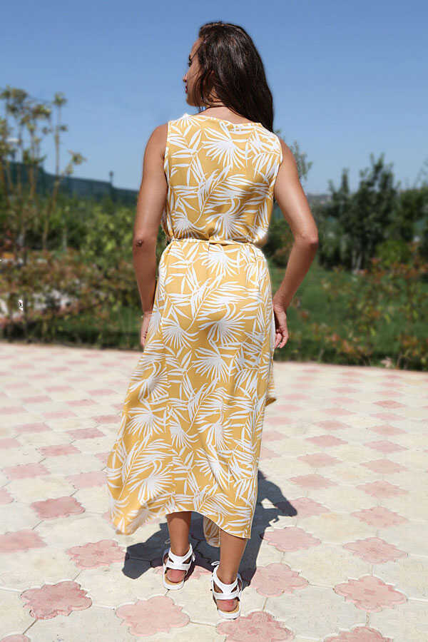 1512 Önü Nakışlı Elbise - Sarı - Kombin