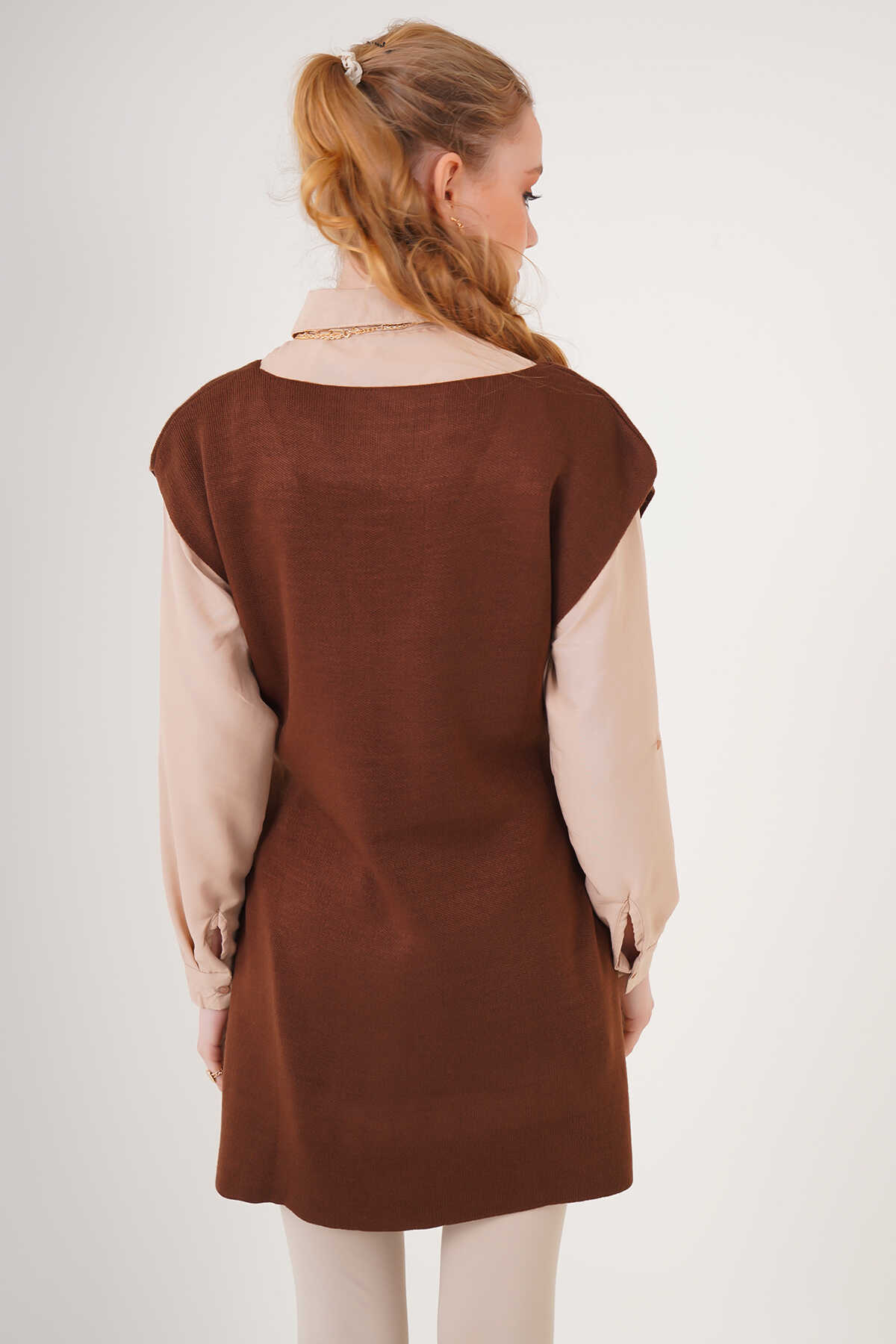 15760 Kuşaklı Triko Süveter - Kahverengi - Kombin