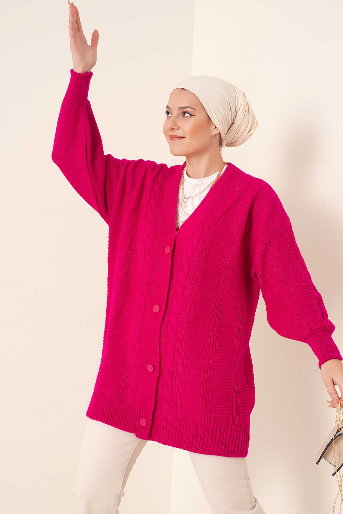 15768 Tesettür Triko Hırka - Koyu Pembe