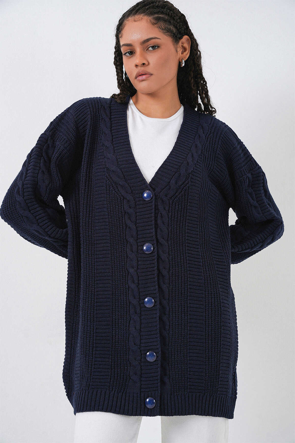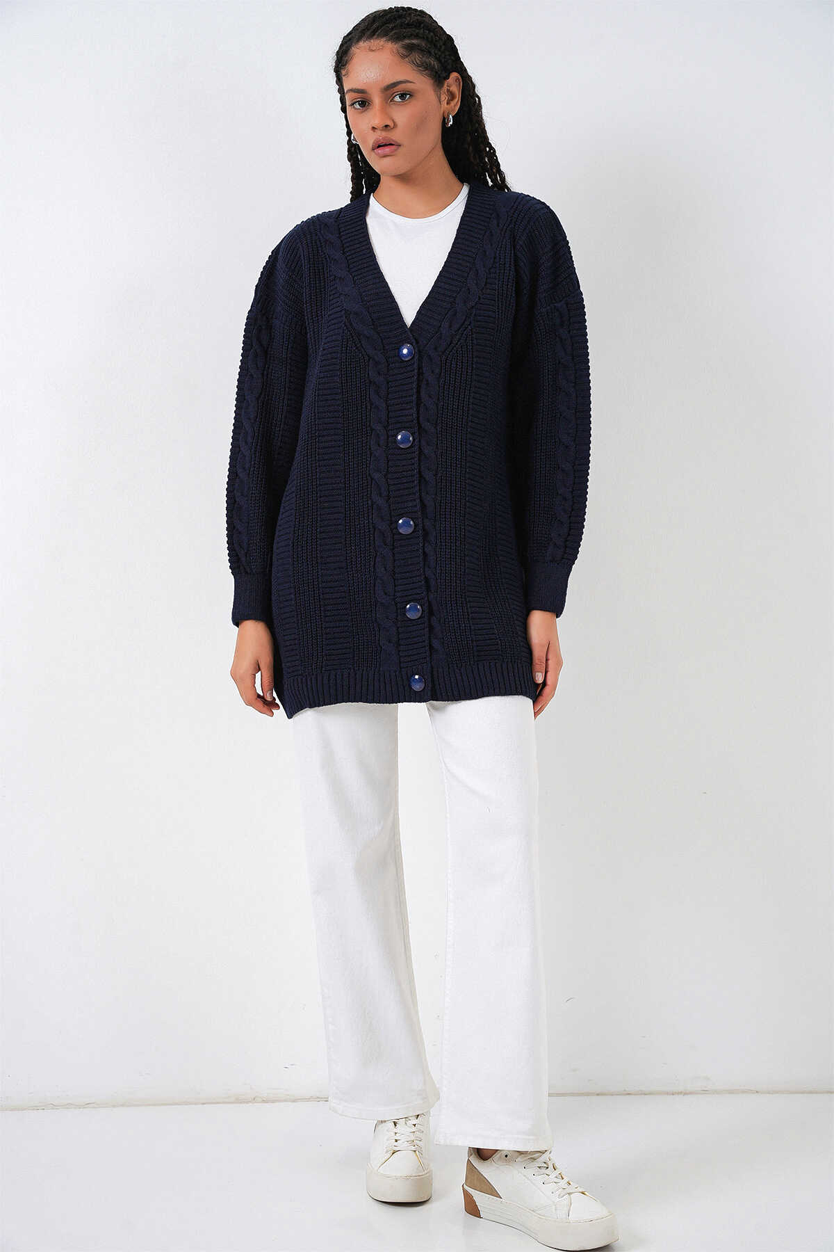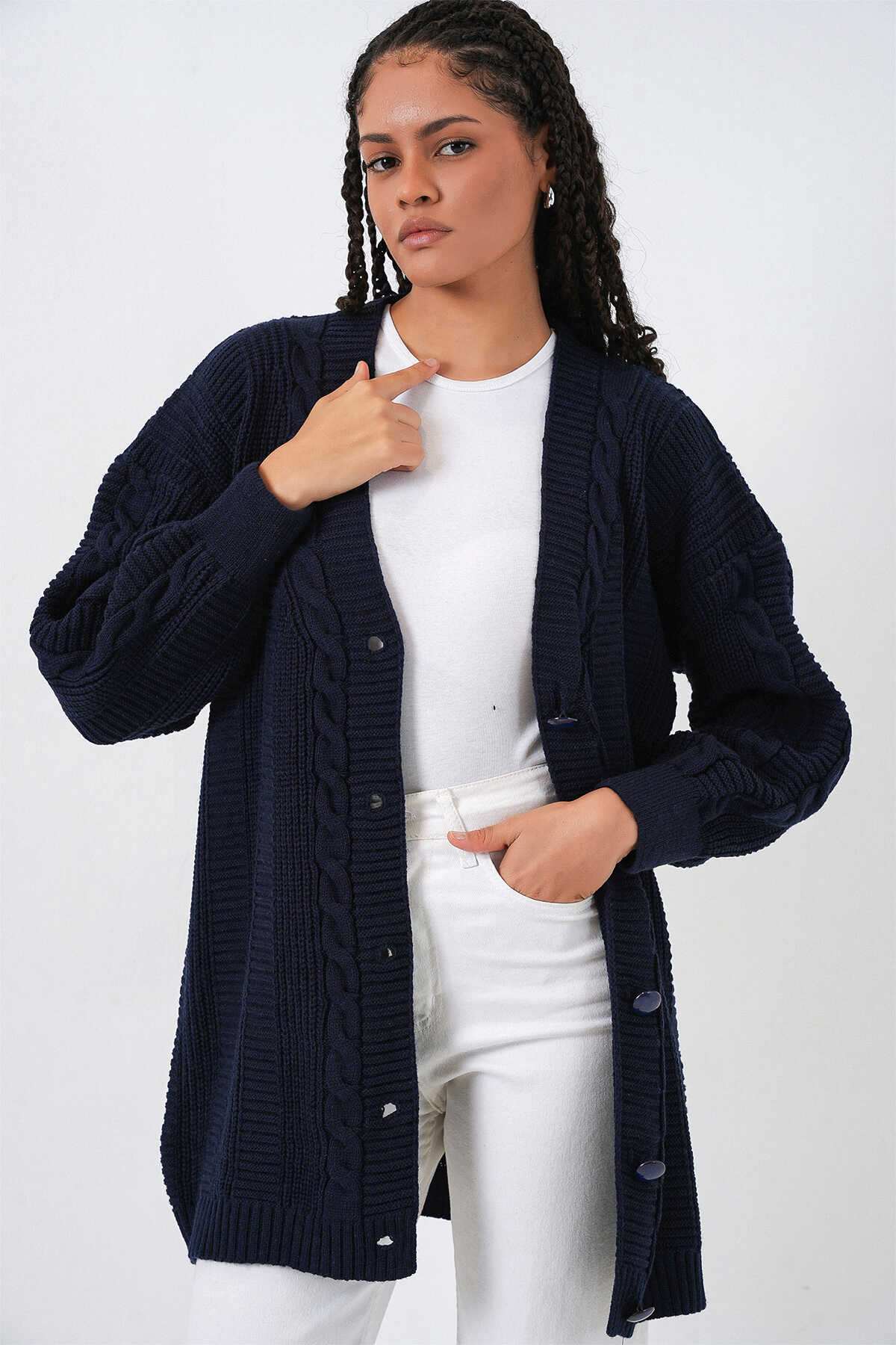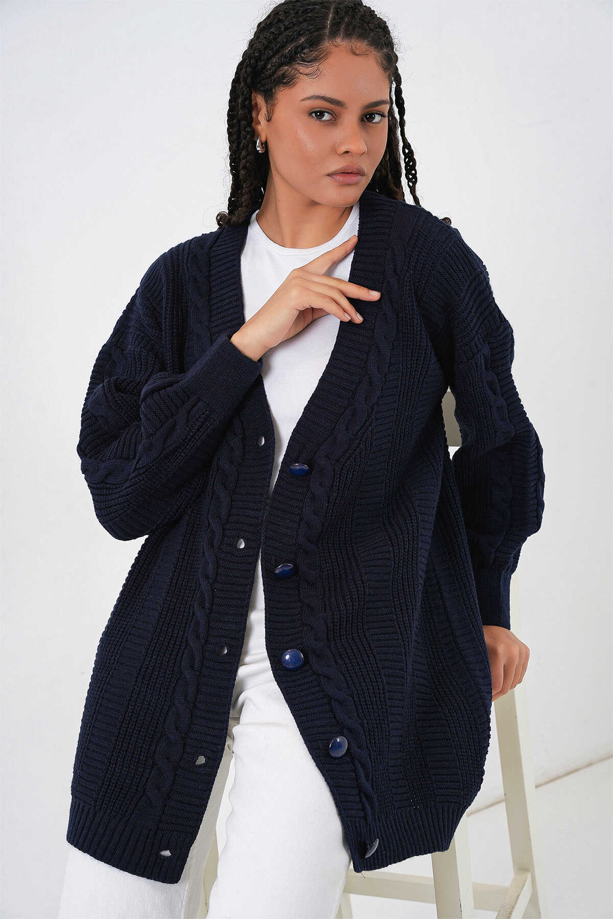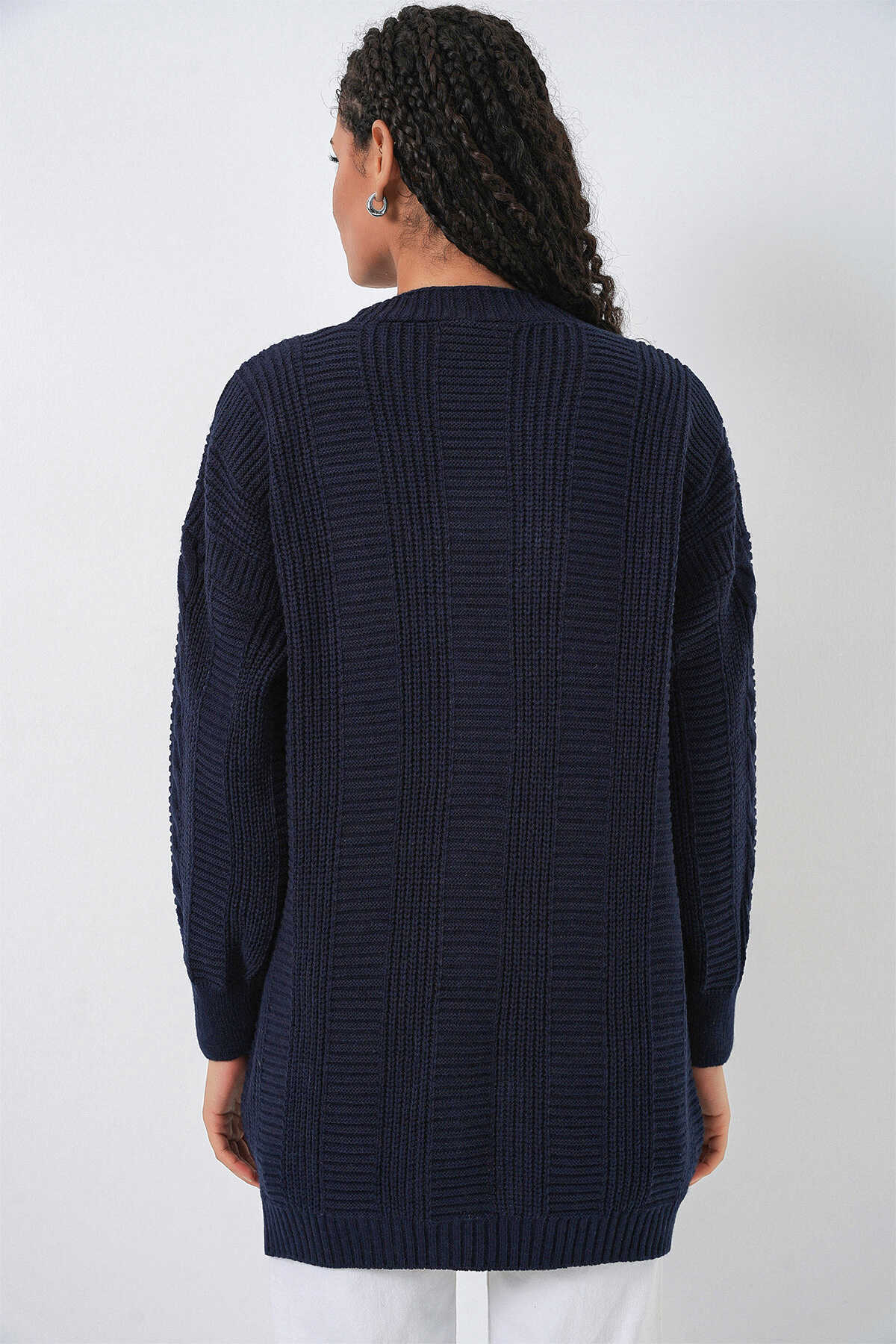 15768 Tesettür Triko Hırka - Lacivert - Kombin