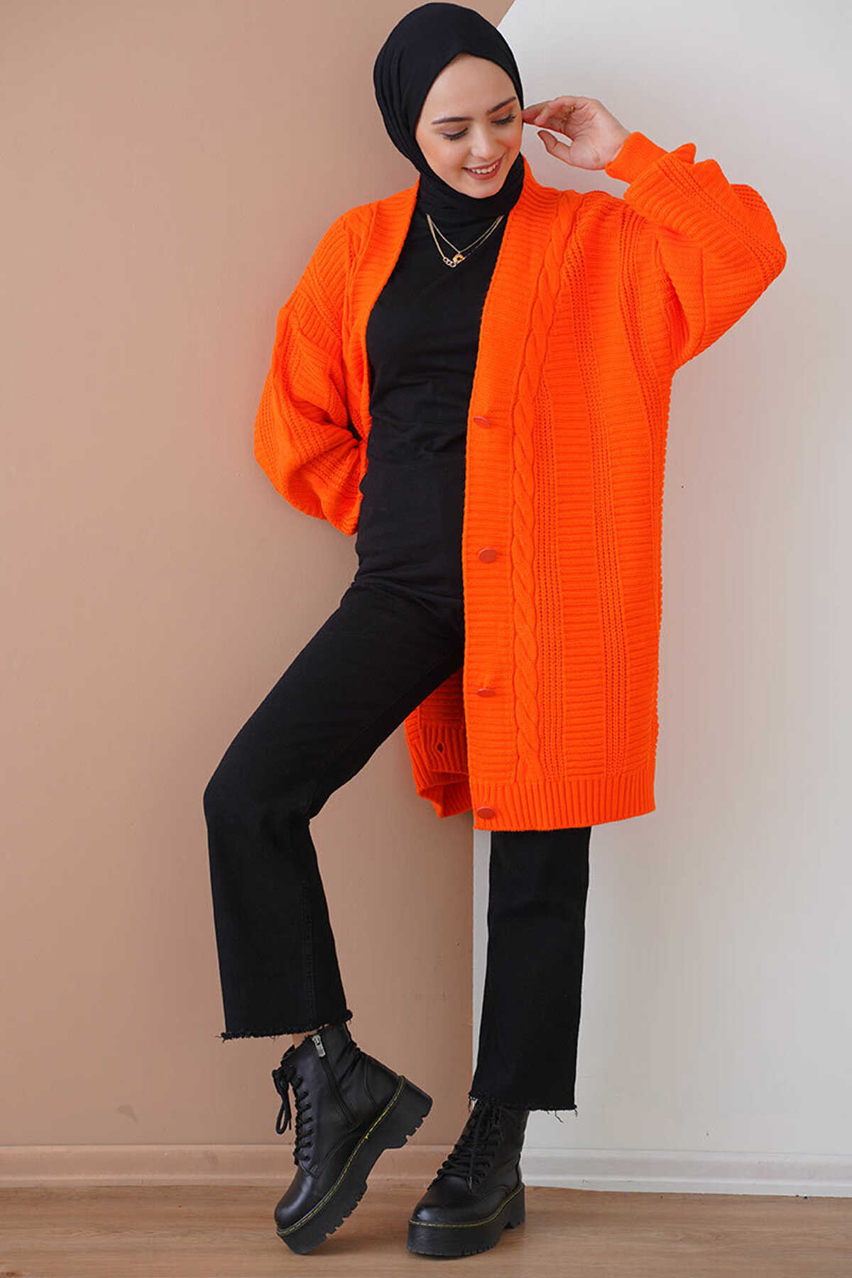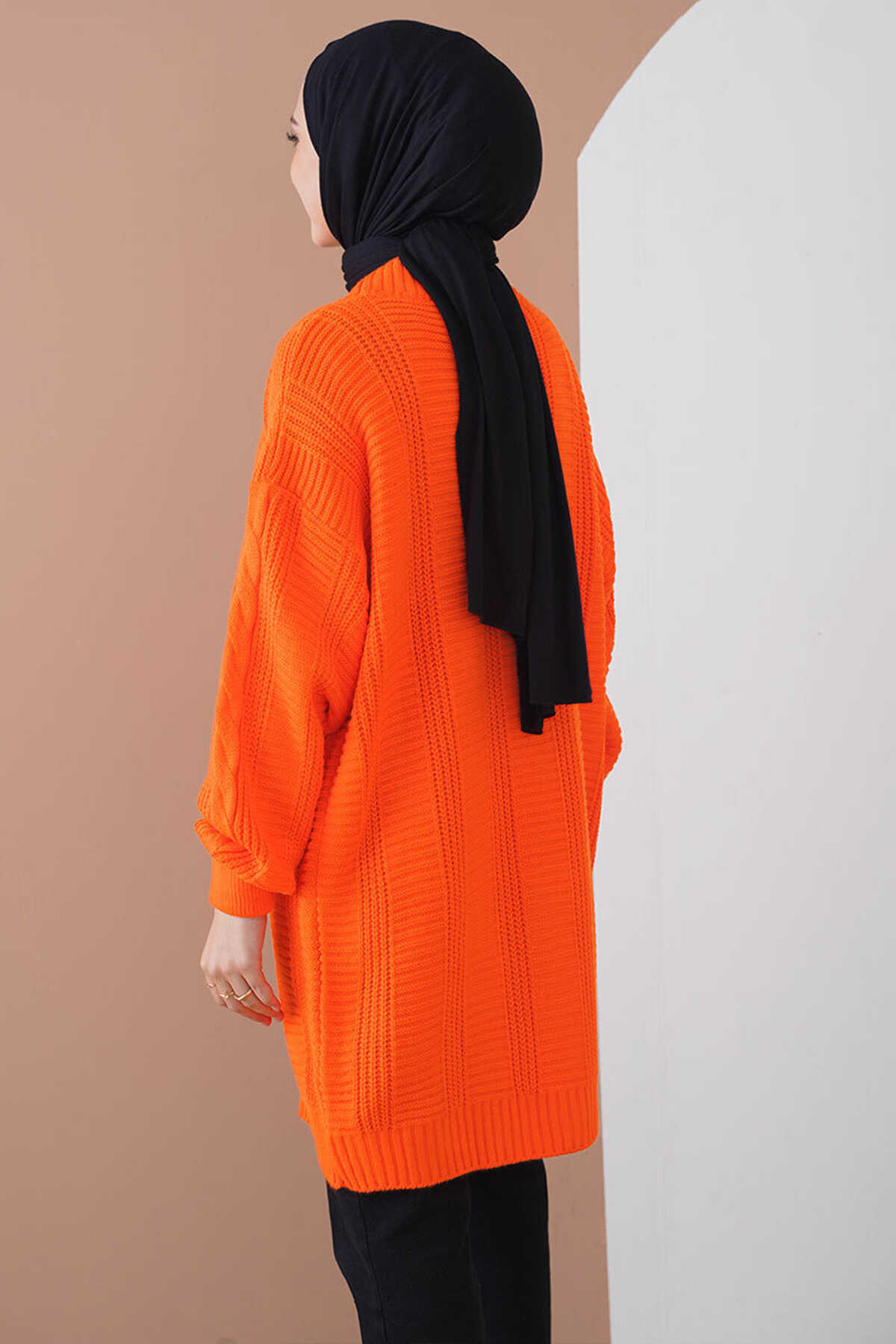 15768 Tesettür Triko Hırka - Turuncu - Kombin