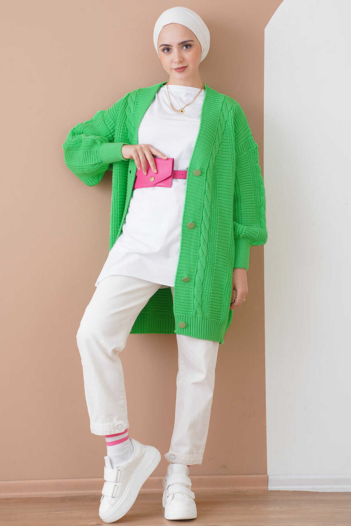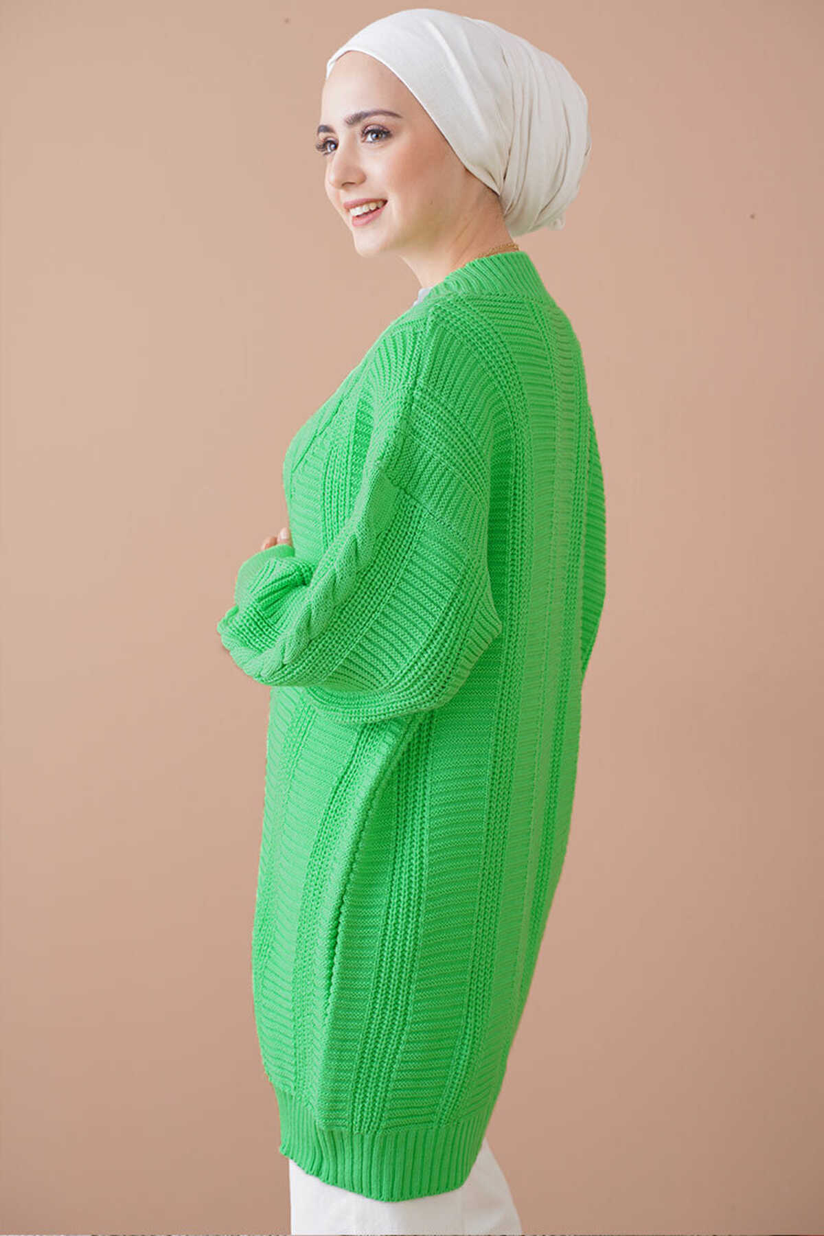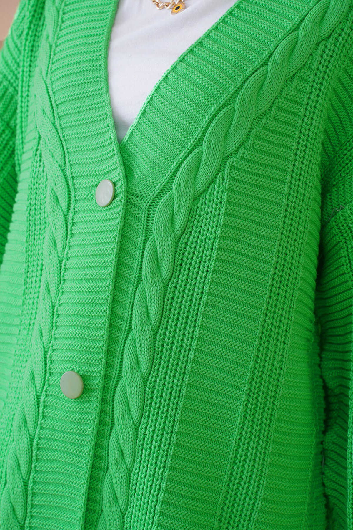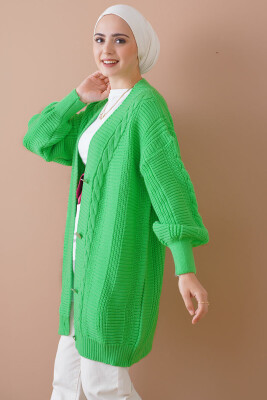 Saç Örgü Desen Dügmeli Triko Hirka