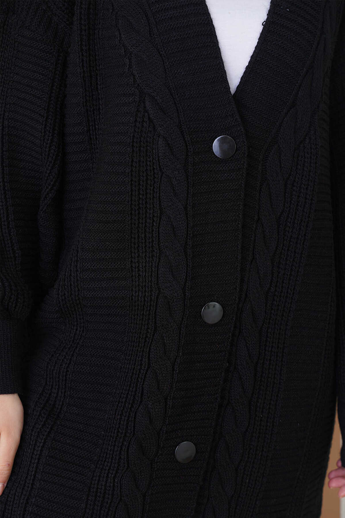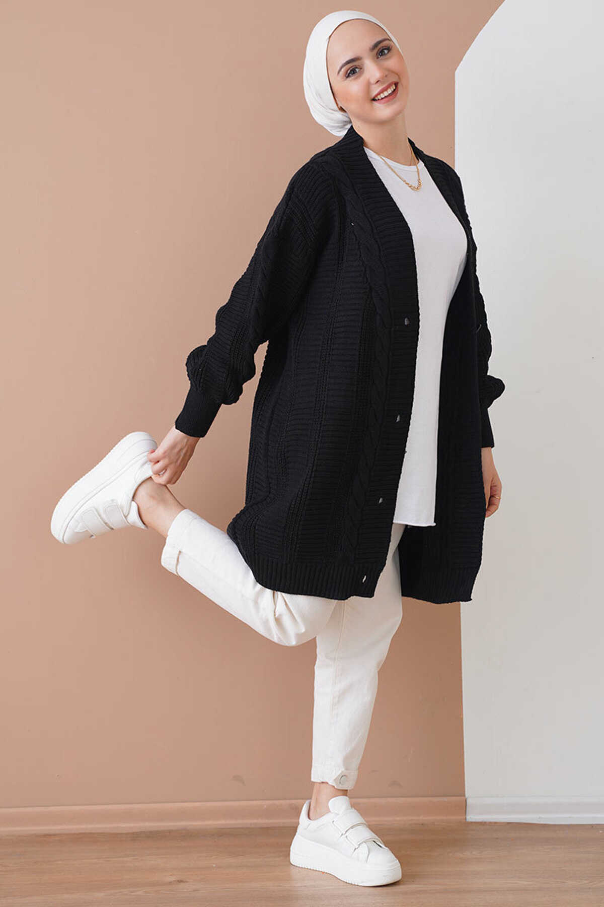 15768 Tesettür Triko Hırka - Siyah - Kombin