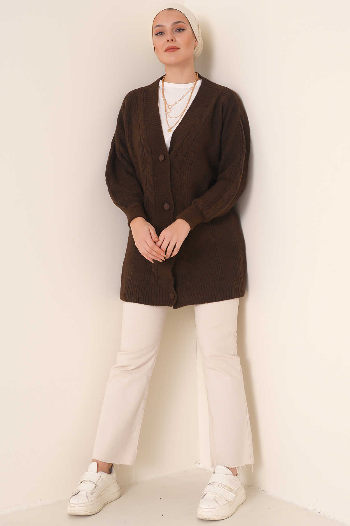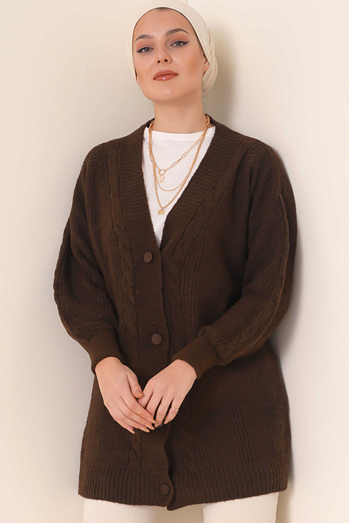 Saç Örgü Desen Dügmeli Triko Hirka