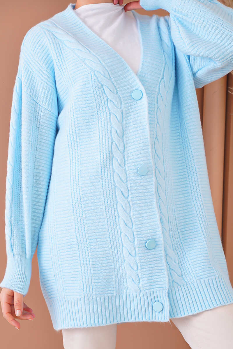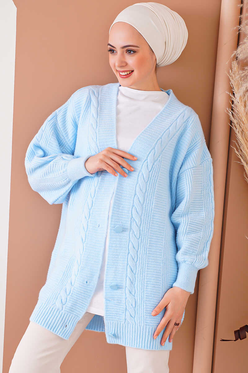 15768 Tesettür Triko Hırka - Mavi