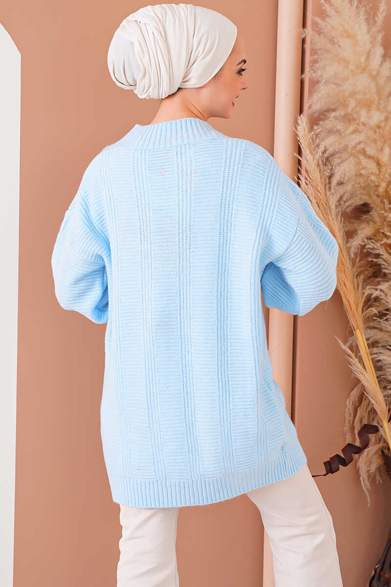 15768 Tesettür Triko Hırka - Mavi - Kombin
