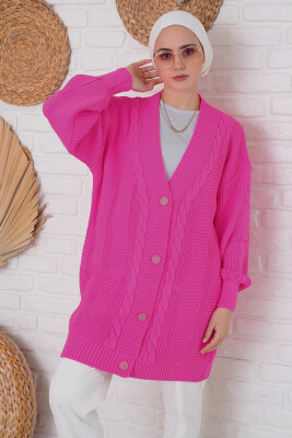 15768 Tesettür Triko Hırka - A.Fuşya - Kombin