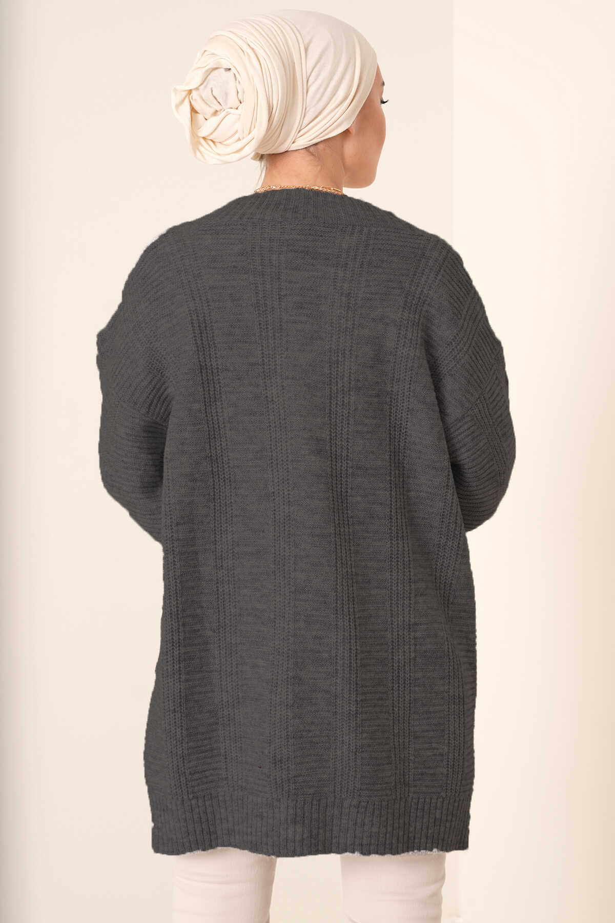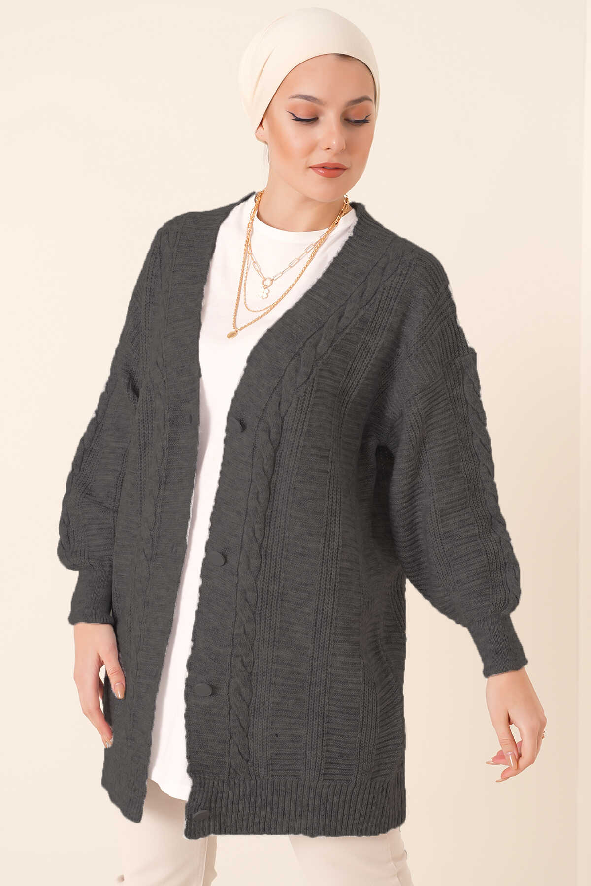 Saç Örgü Desen Dügmeli Triko Hirka