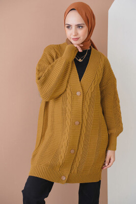 15768 Tesettür Triko Hırka - Hardal