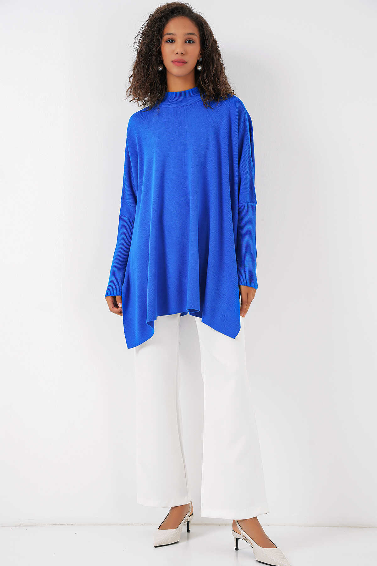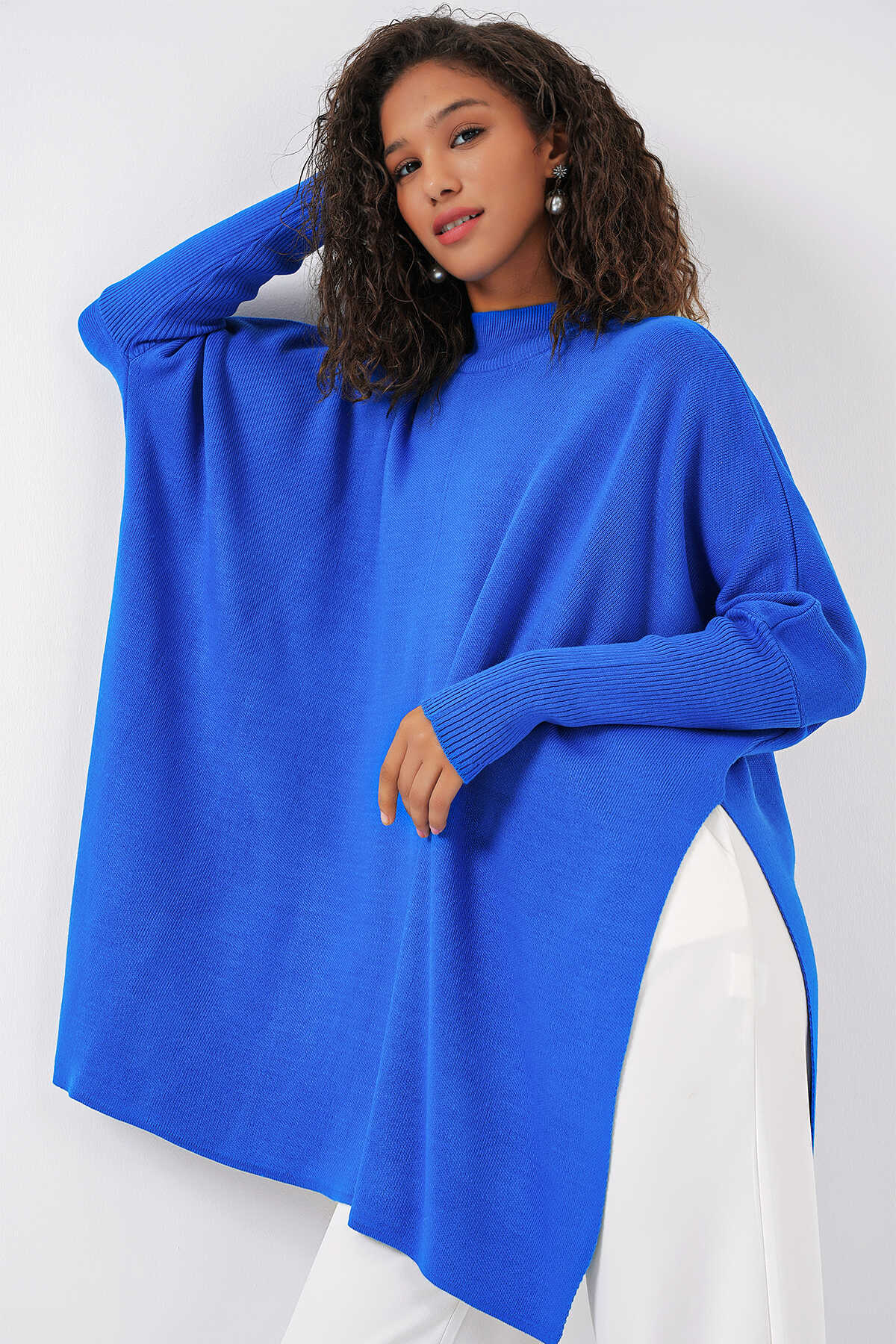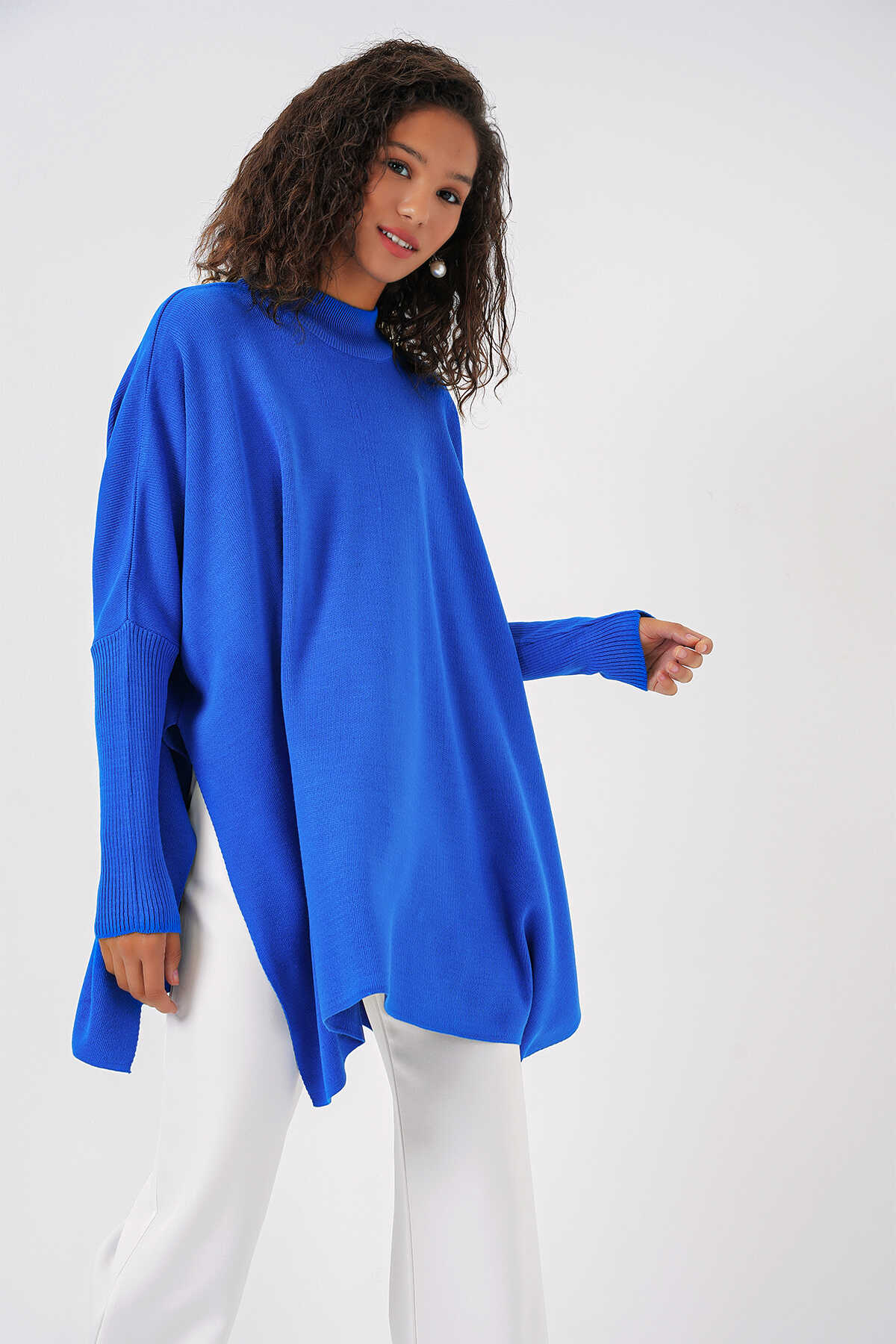 Yandan Yirtmaçli Oversize Panço Triko Kazak