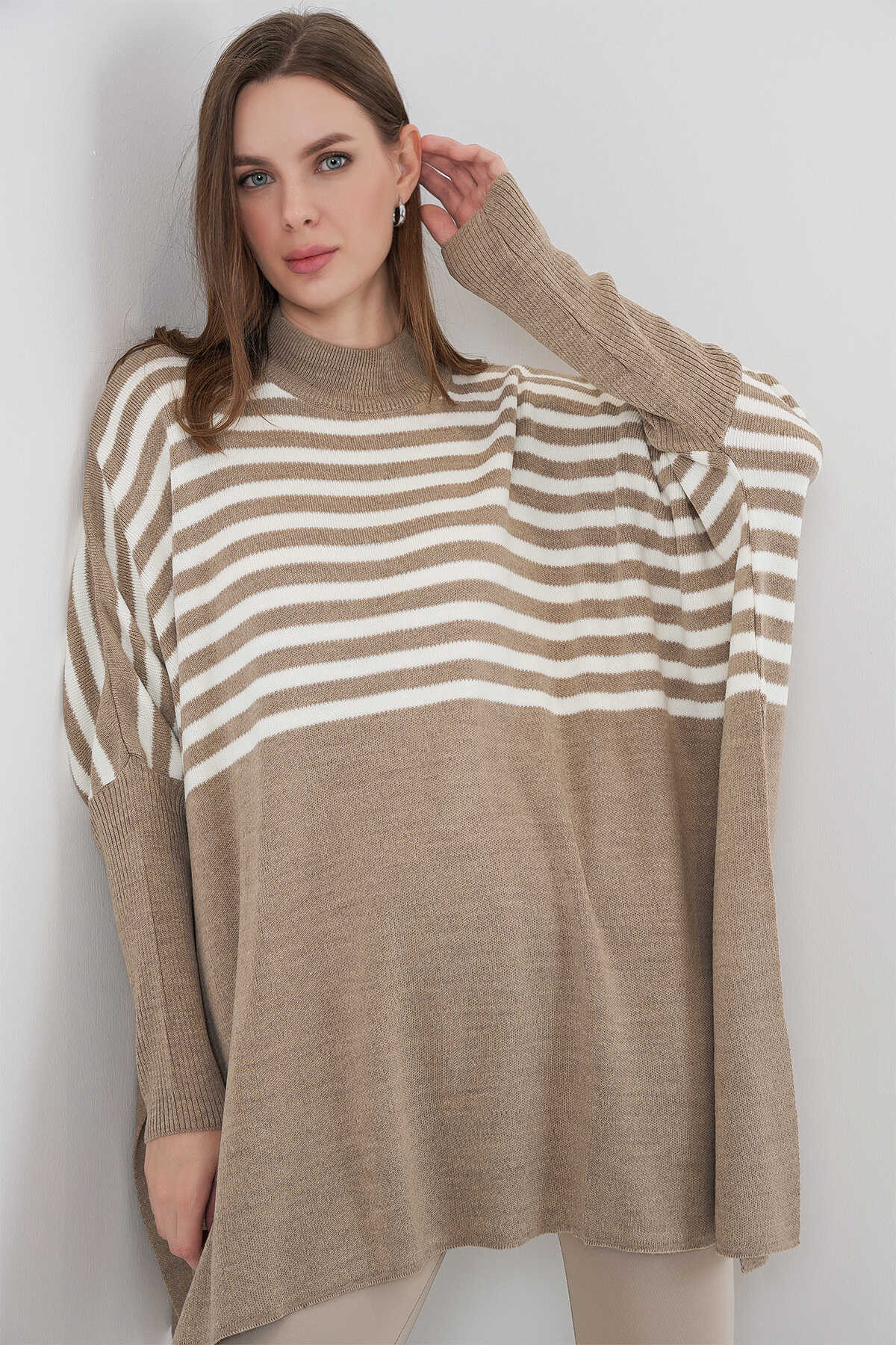 Yandan Yirtmaçli Oversize Panço Triko Kazak