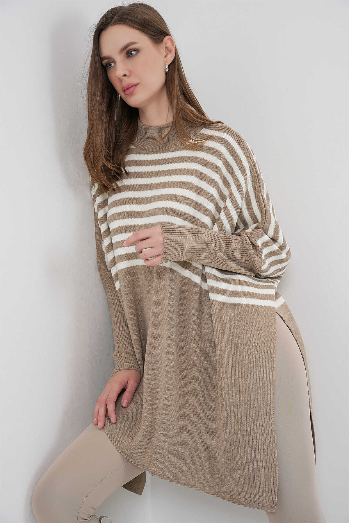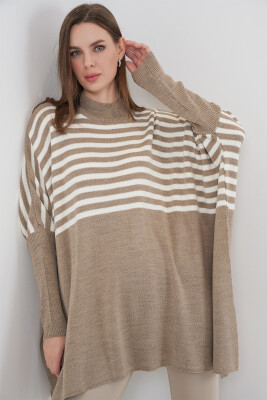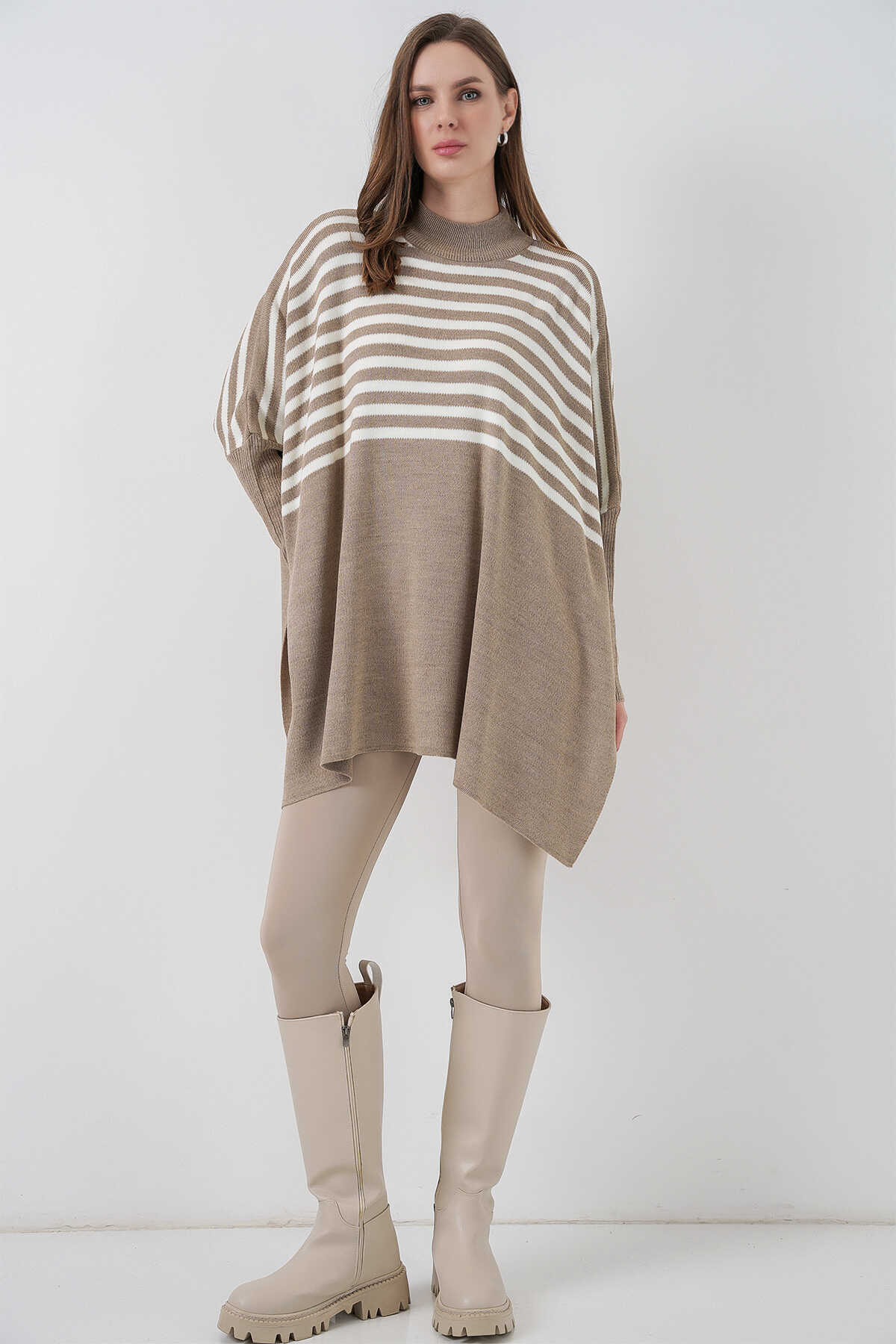 15783 Yırtmaçlı Panço Kazak - A. Vizon - Kombin