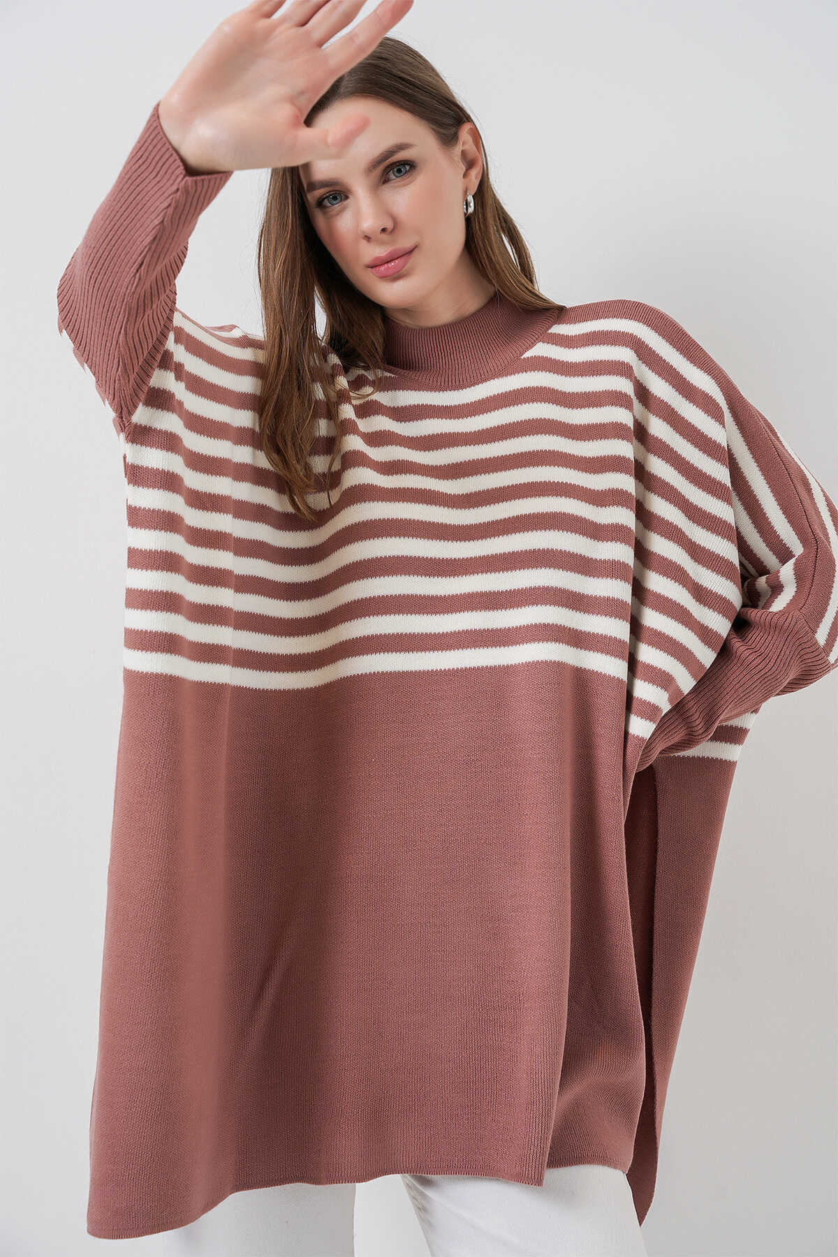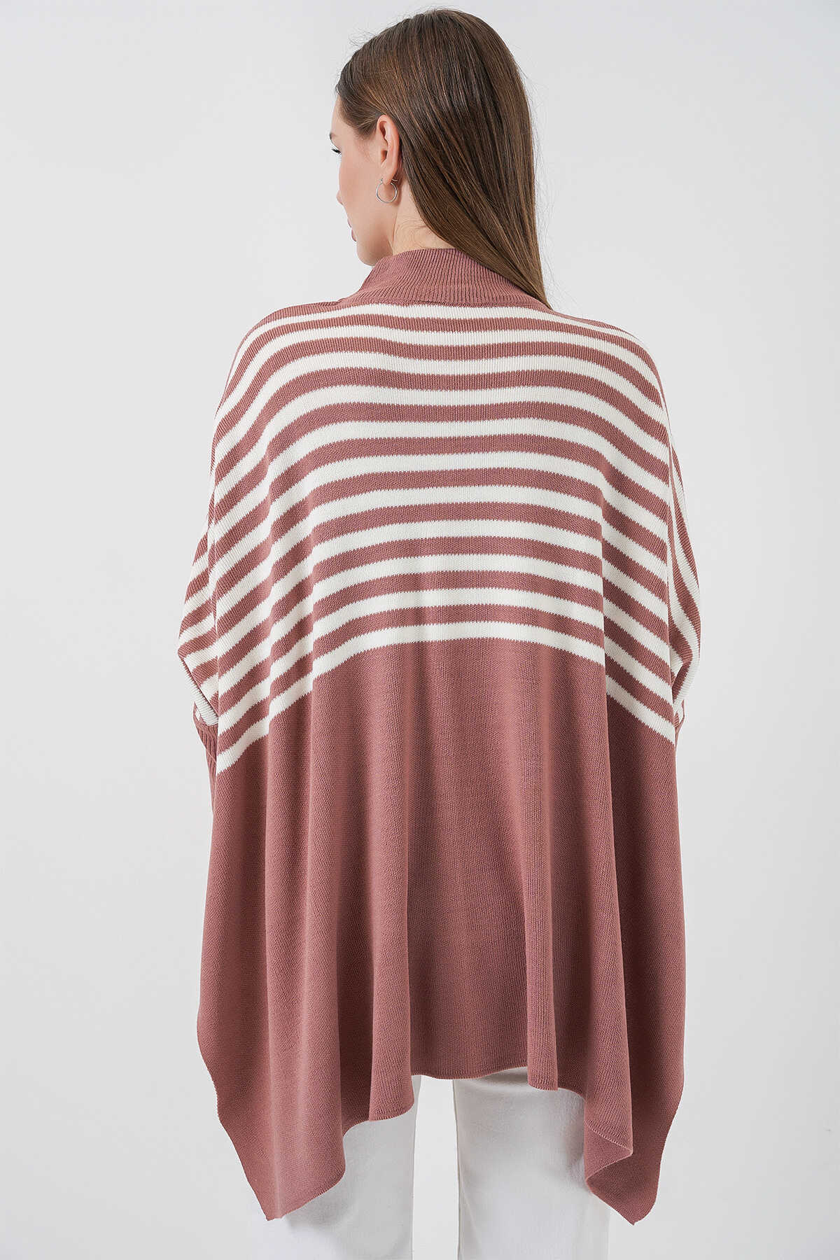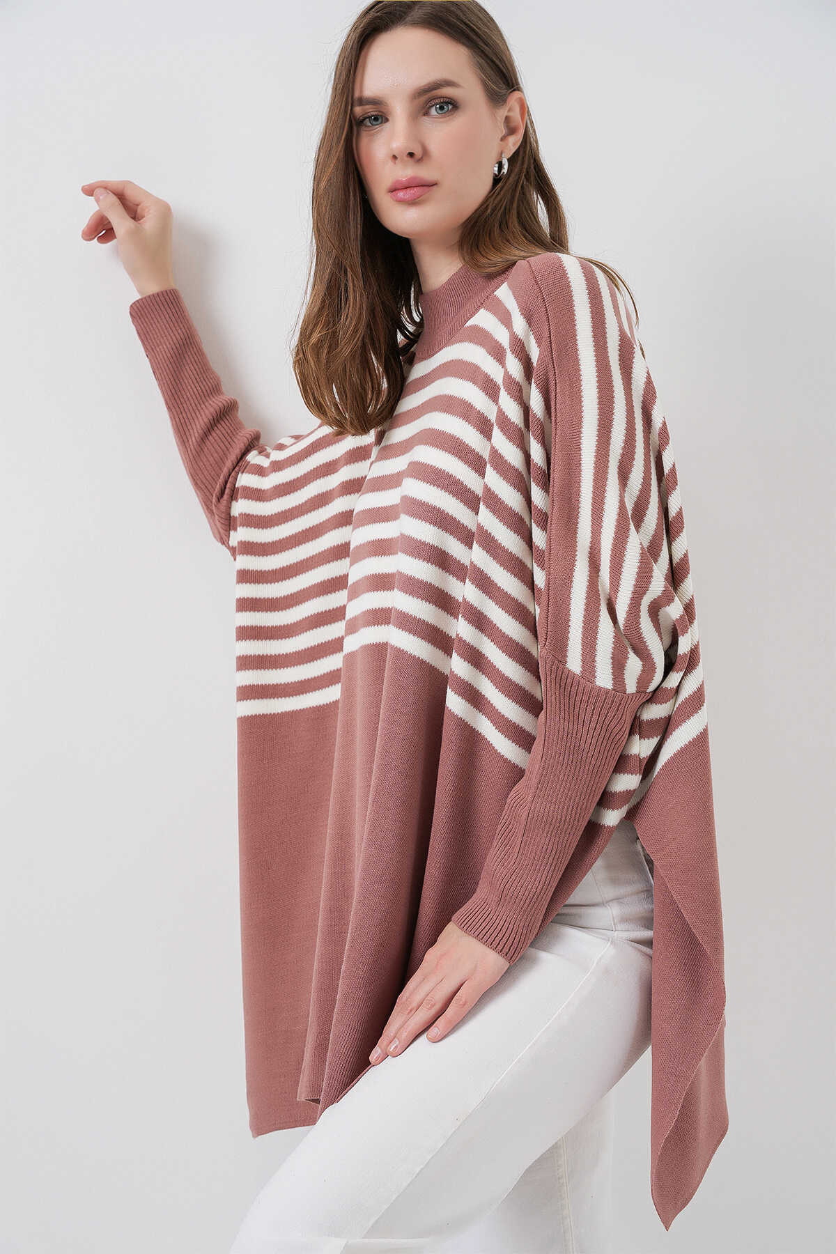 15783 Yırtmaçlı Panço Kazak - D.Gül Kurusu - Kombin