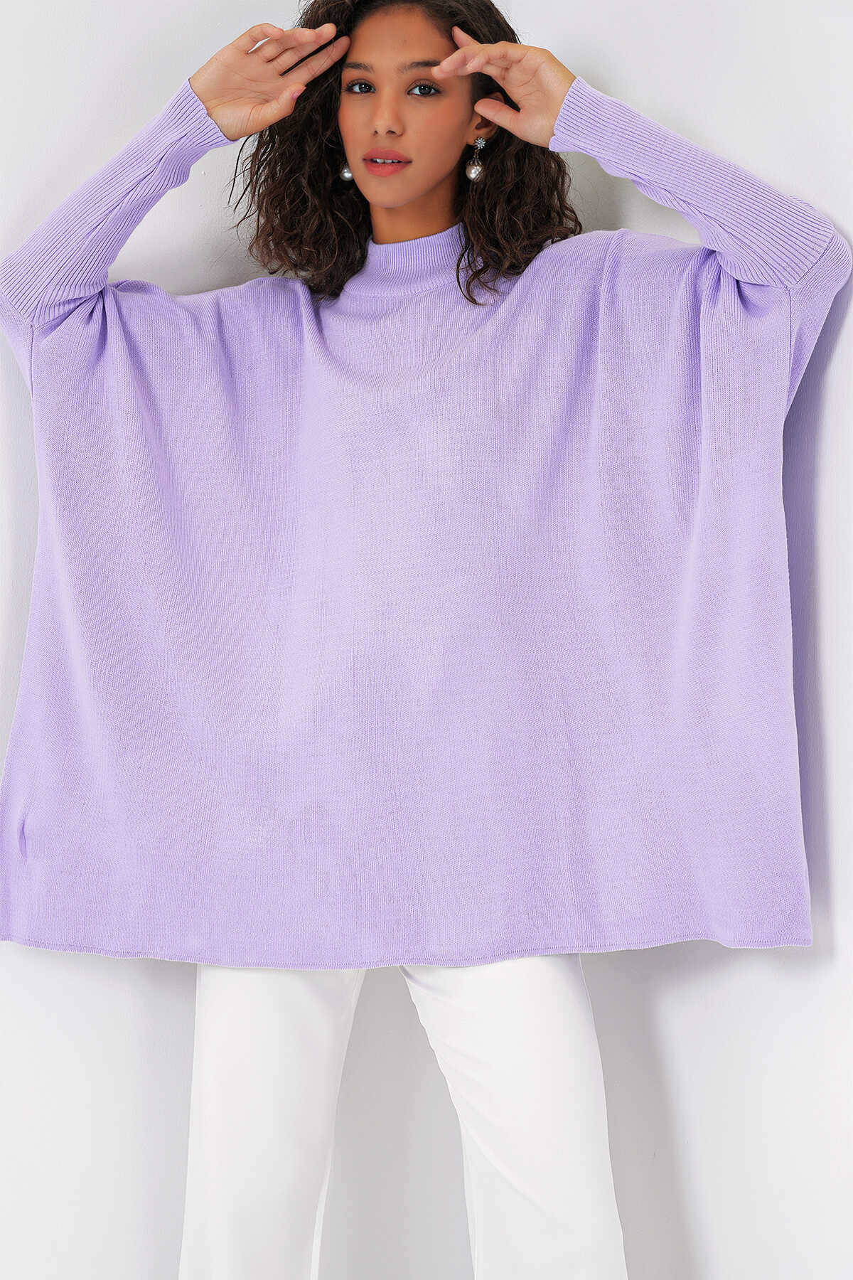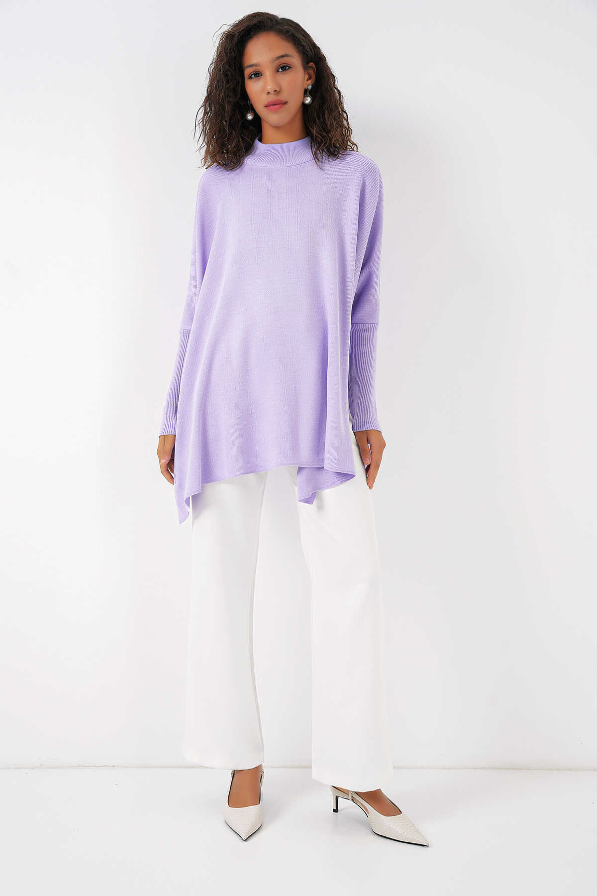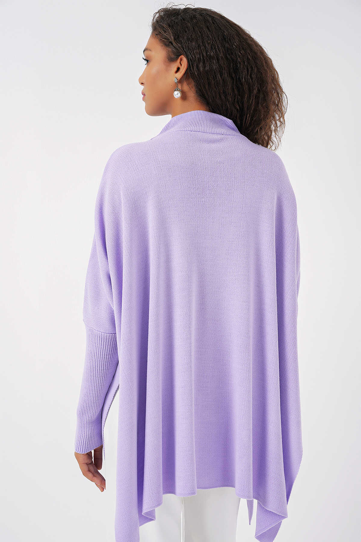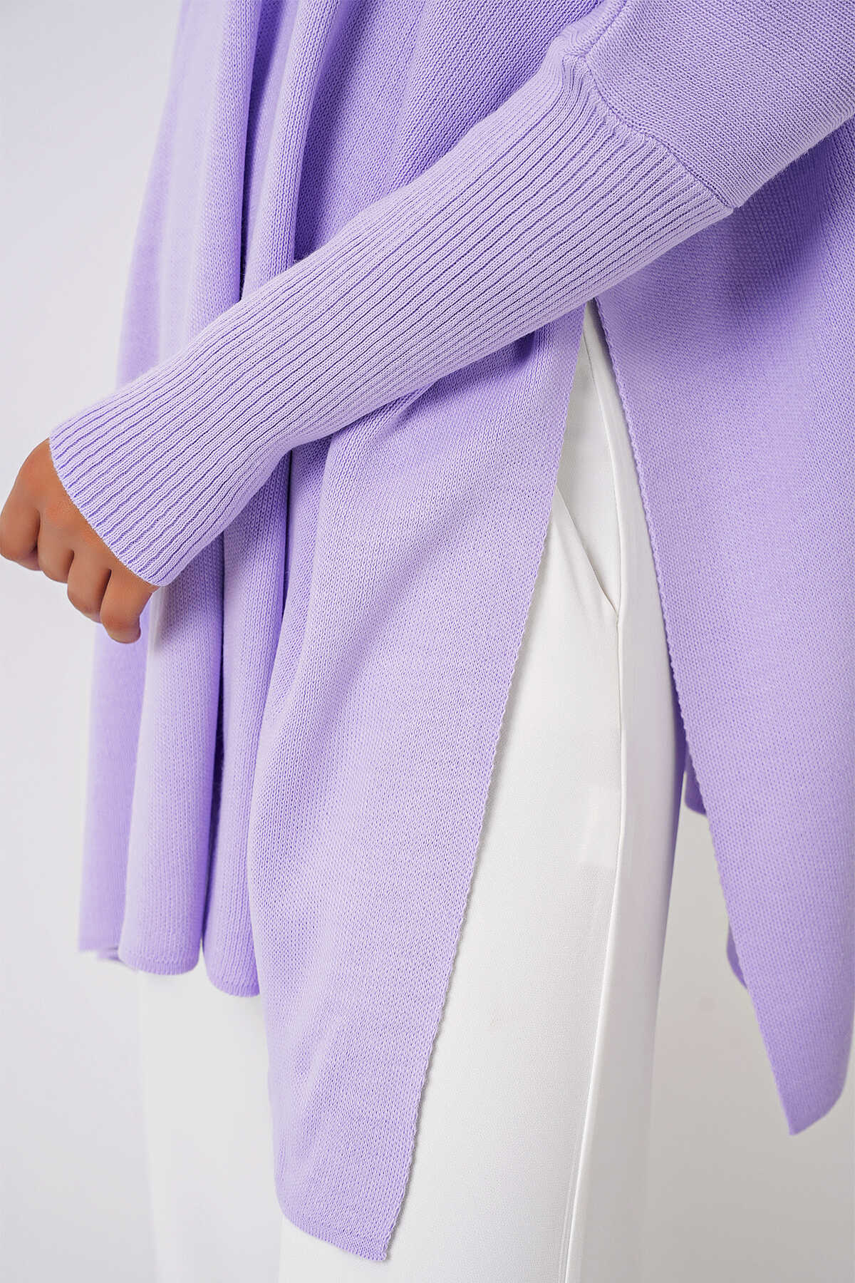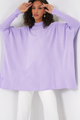 15783 Yırtmaçlı Panço Kazak - Lila - Kombin
