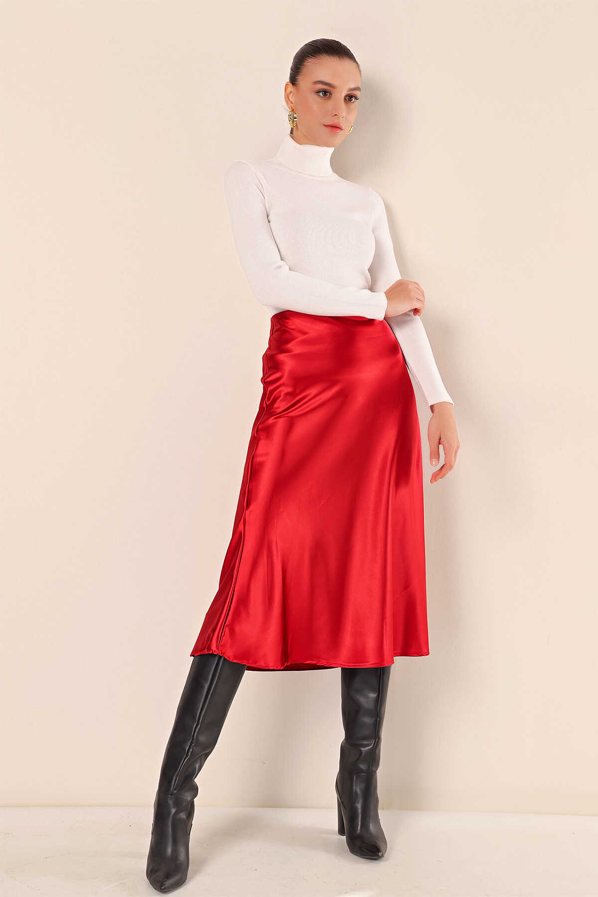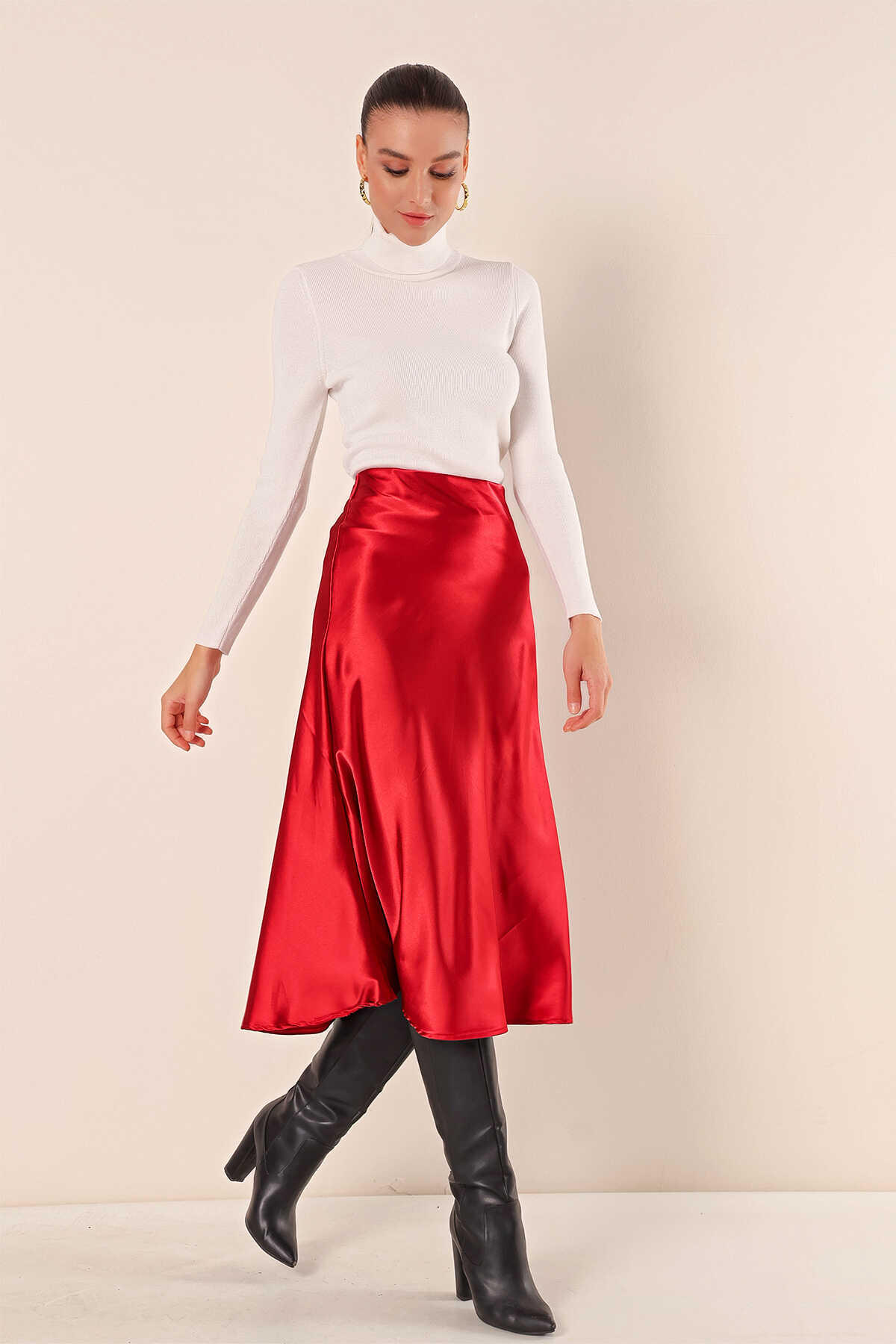 15806 Saten Etek - Bordo - Kombin