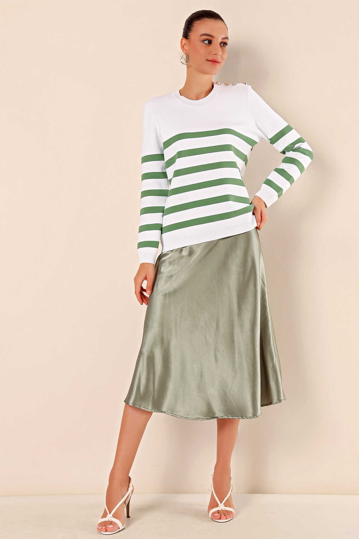 15820 Düğme Detay Çizgili Kazak - C. Çağla - Kombin