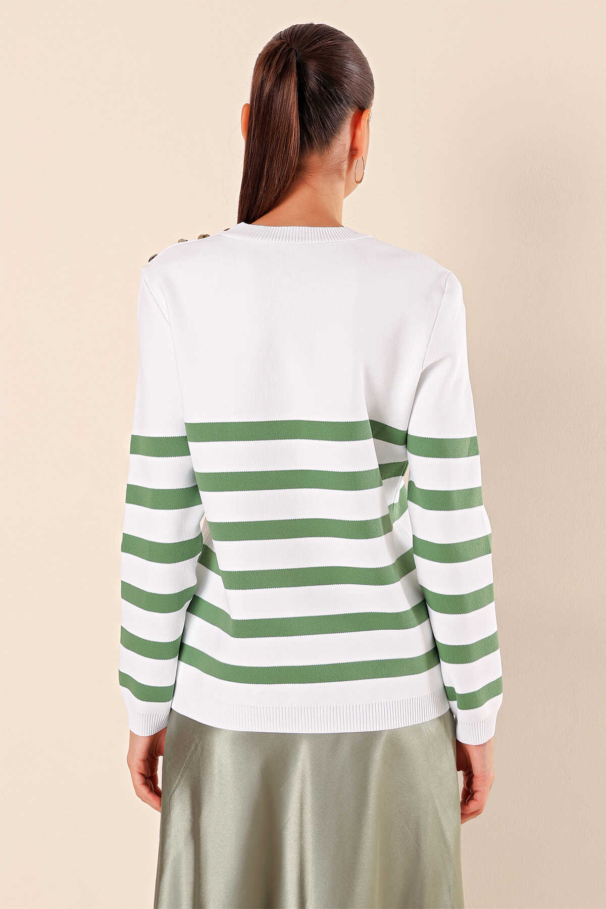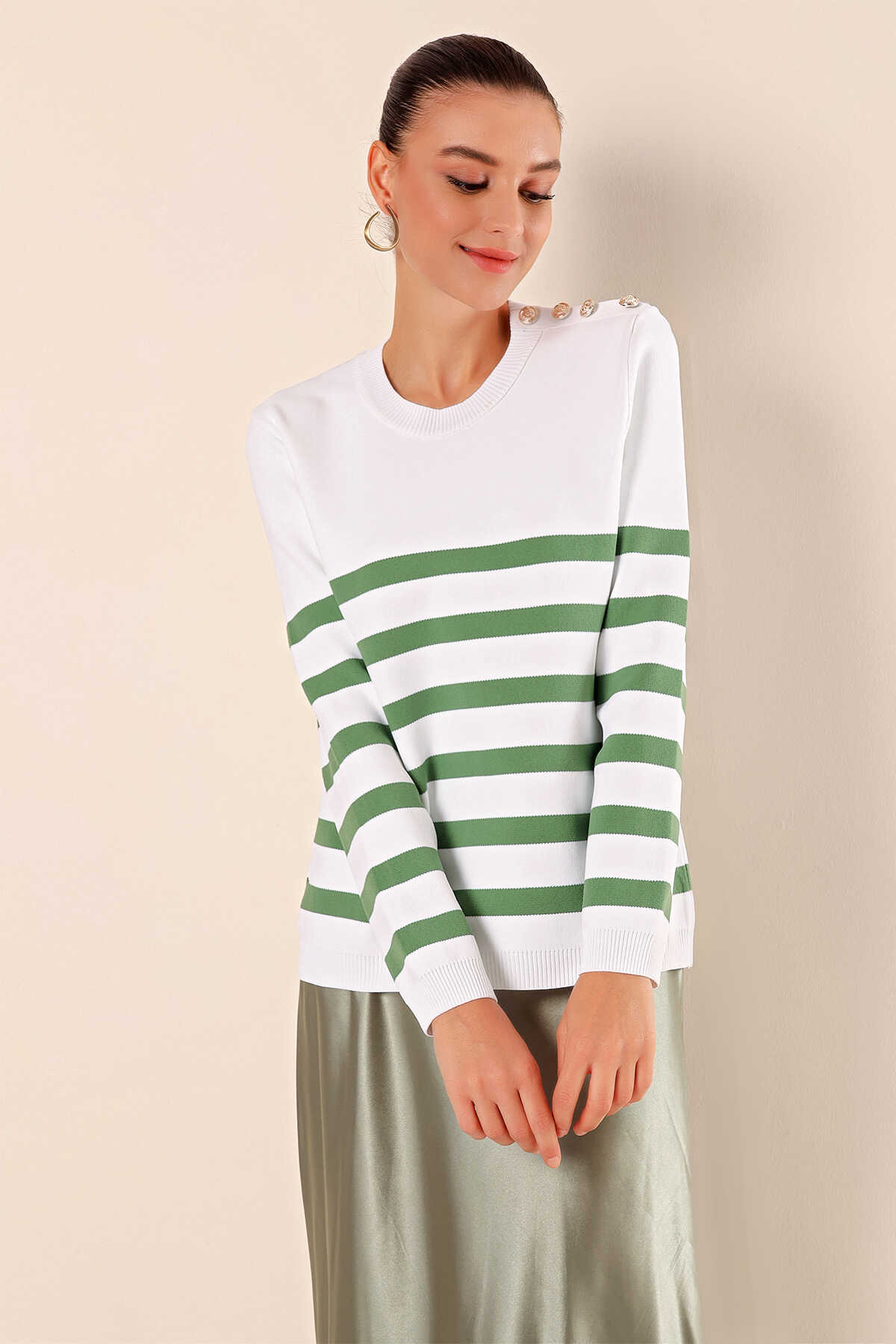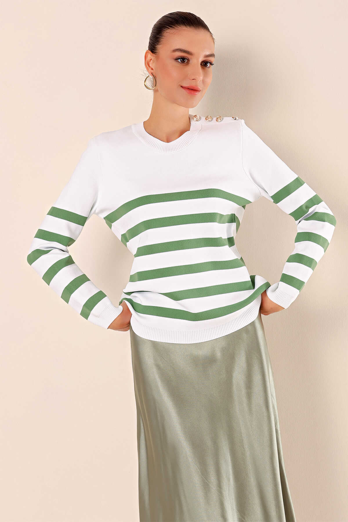 15820 Düğme Detay Çizgili Kazak - C. Çağla