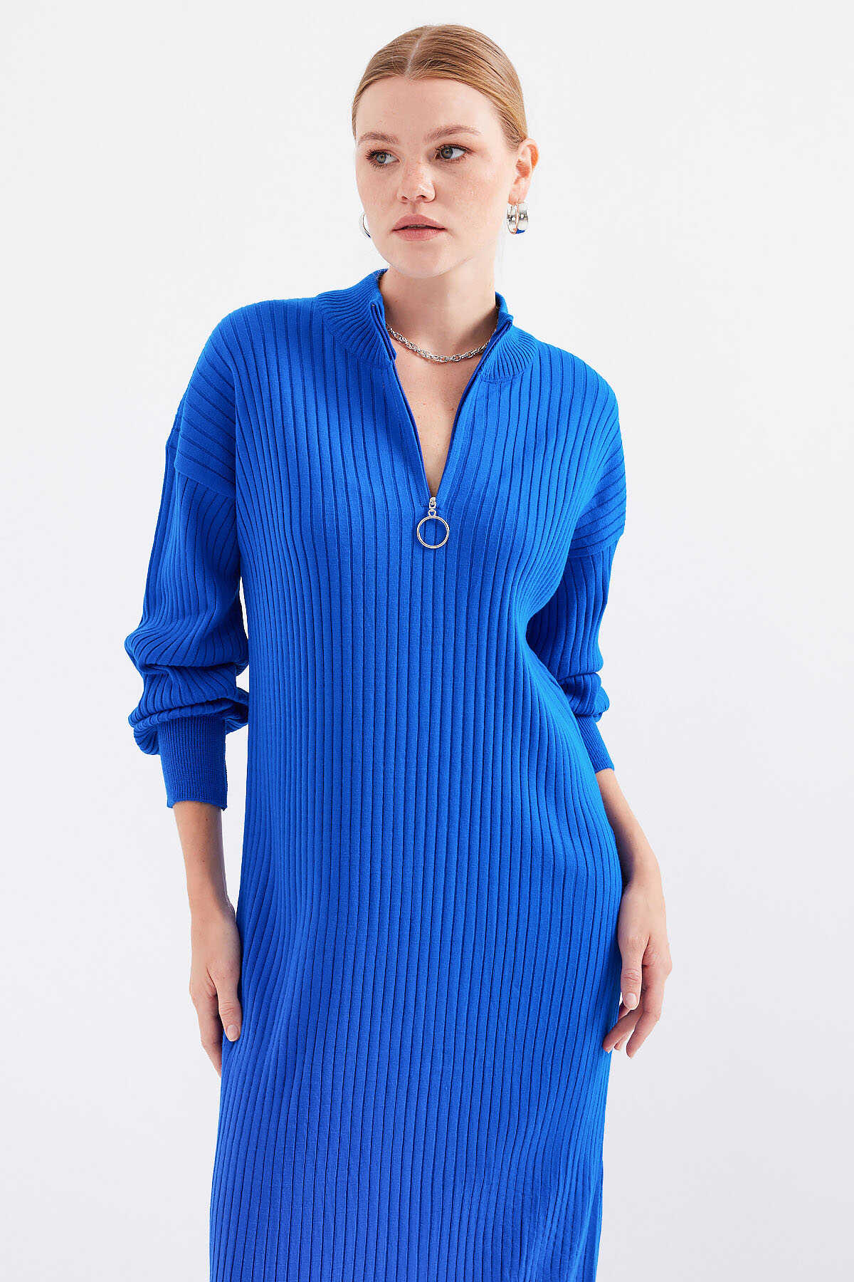 15839 Boydan Triko Elbise - Saks - Kombin