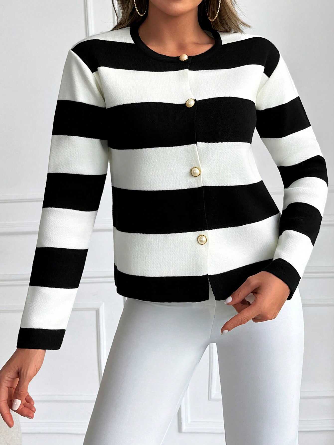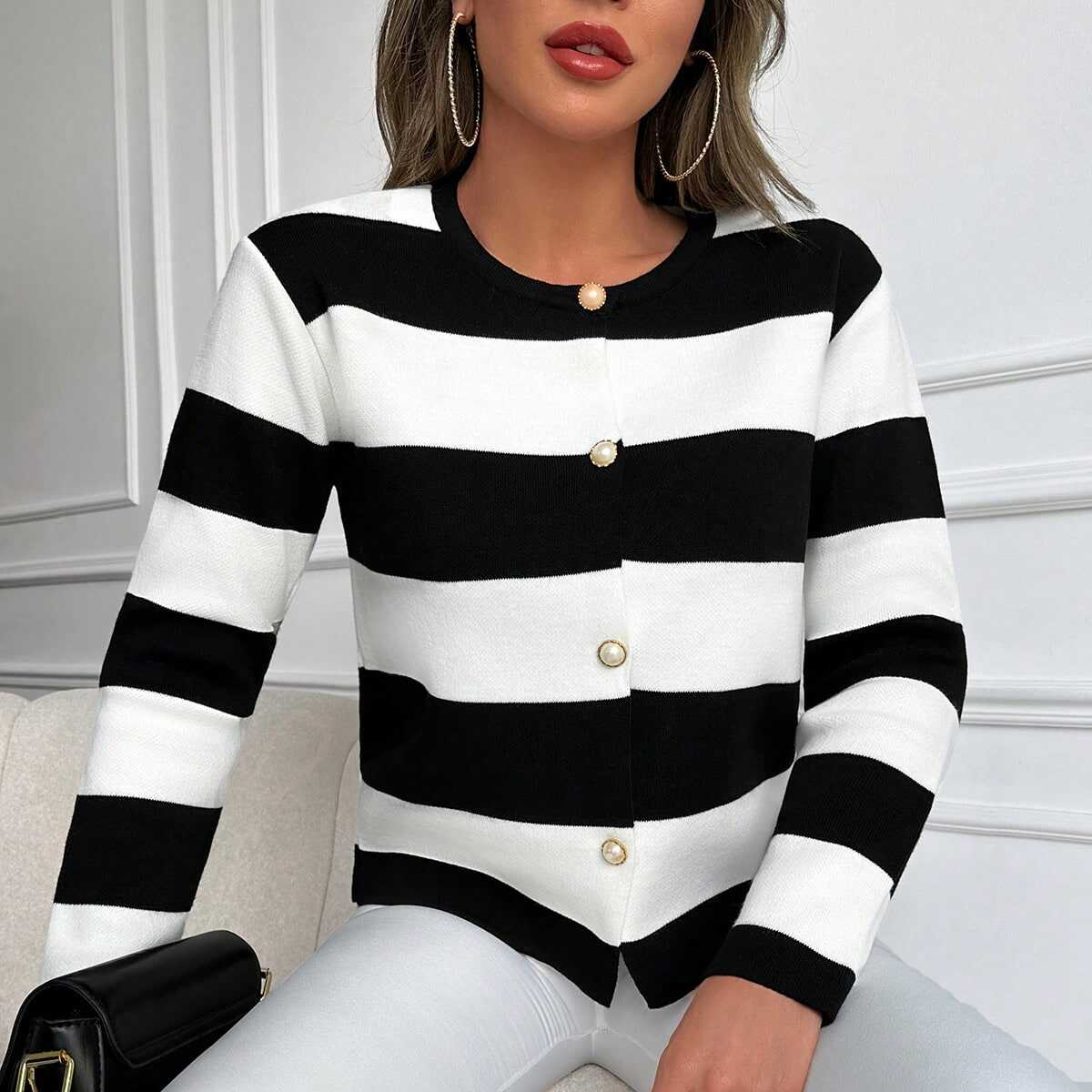 15843 Şeritli Kısa Hırka - Siyah - Kombin