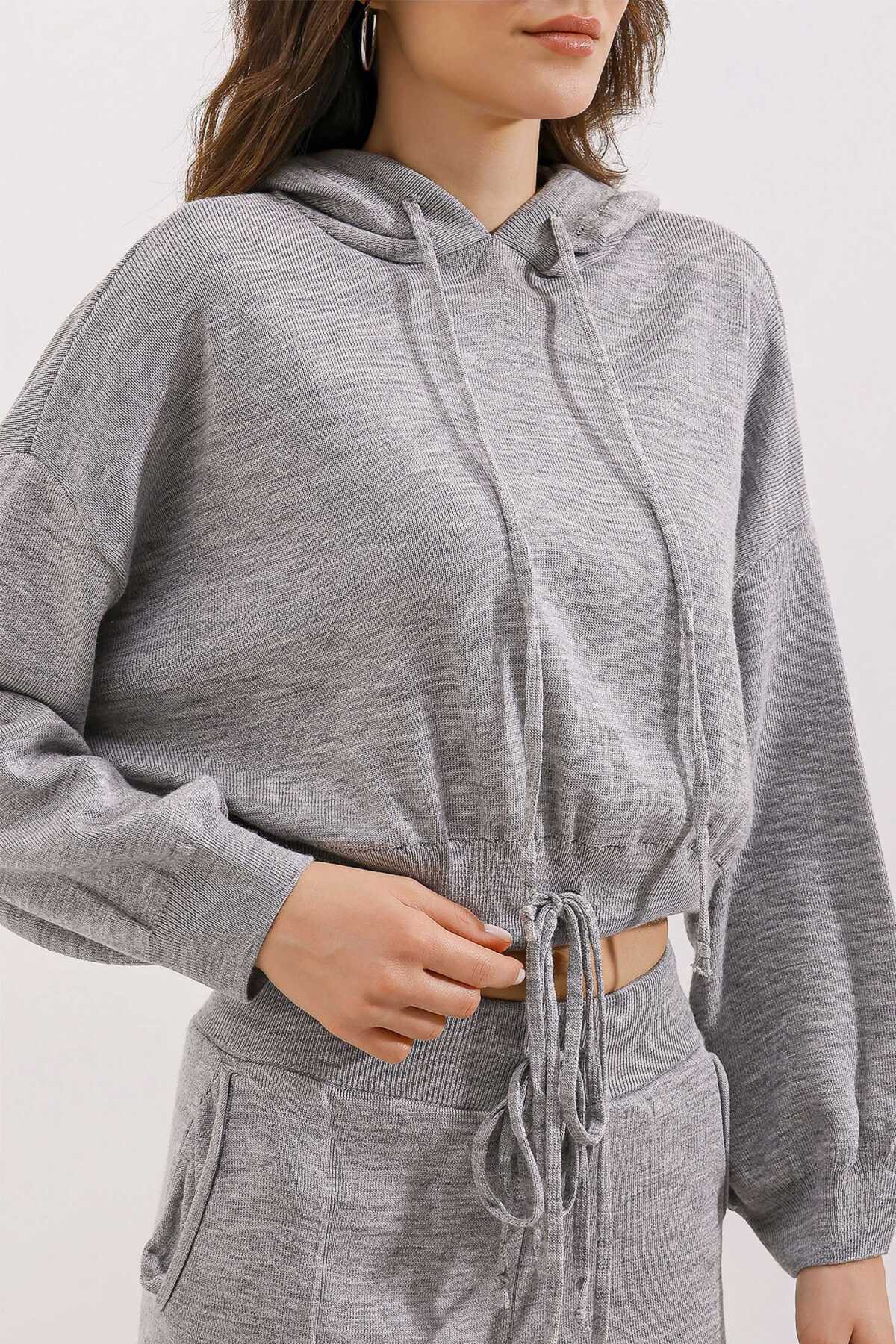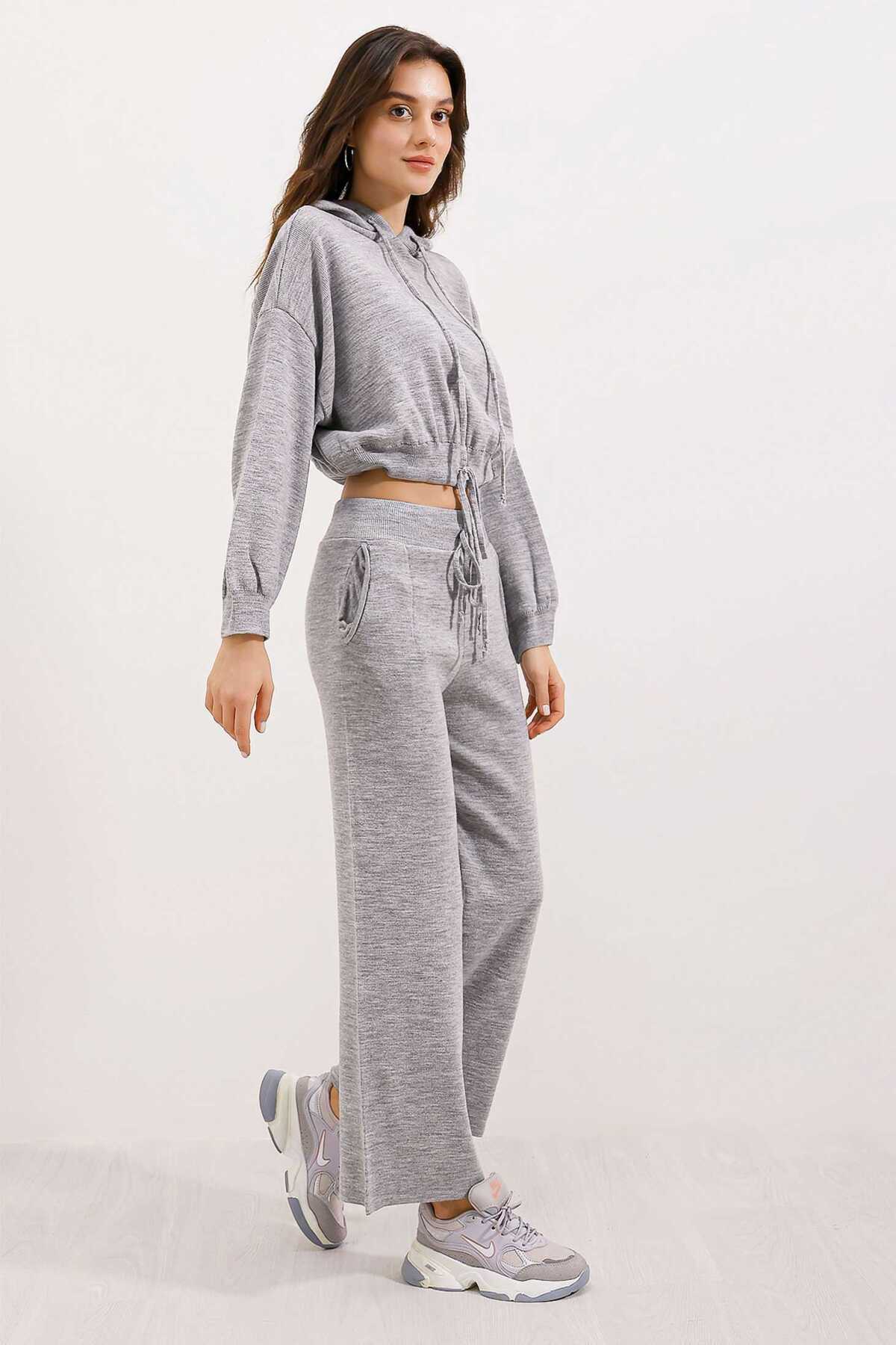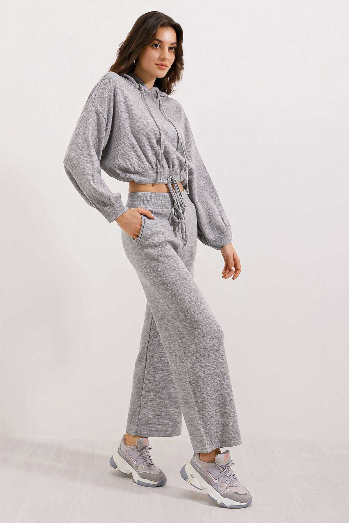 Kapüsonlu Oversize Genis Kesim Alt-Üst Triko Takim