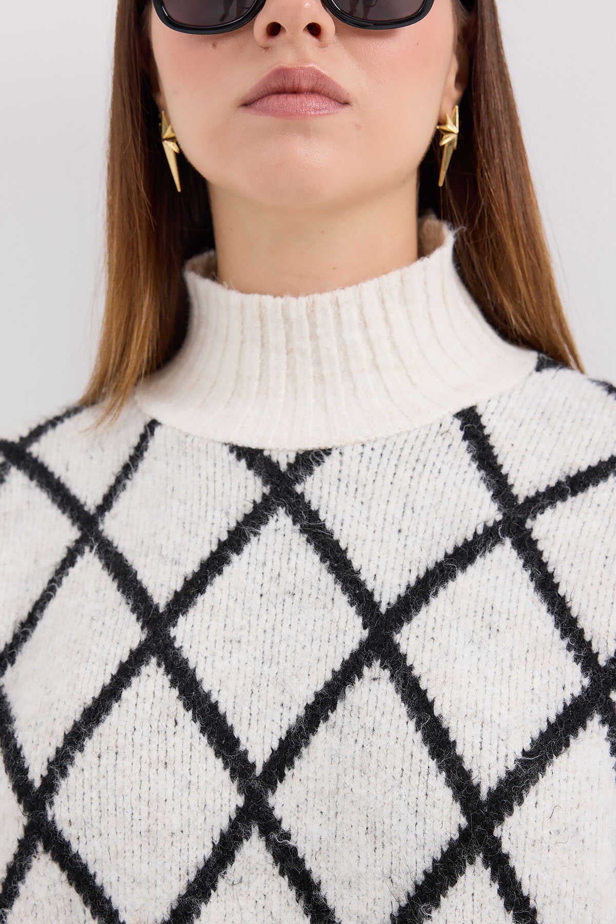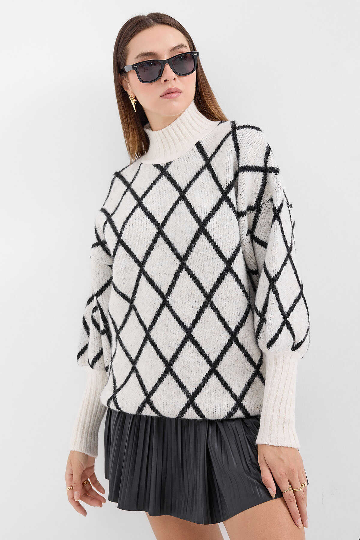 15889 Balıkçı Yaka Oversize Triko Kazak - Siyah - Kombin